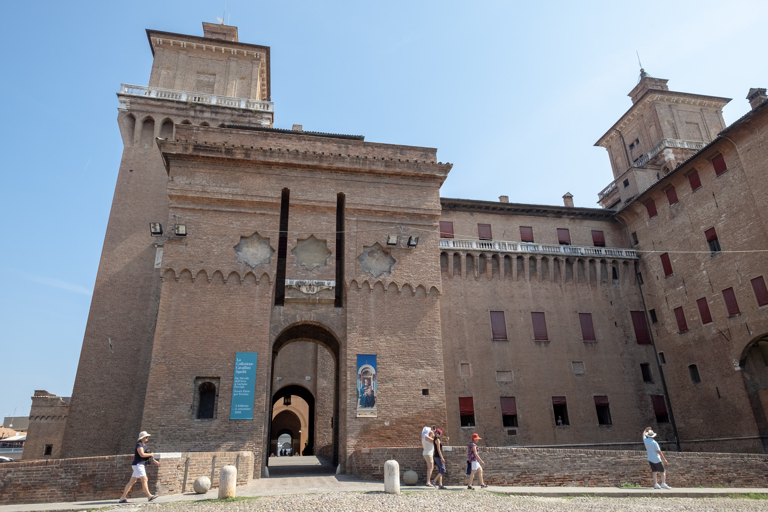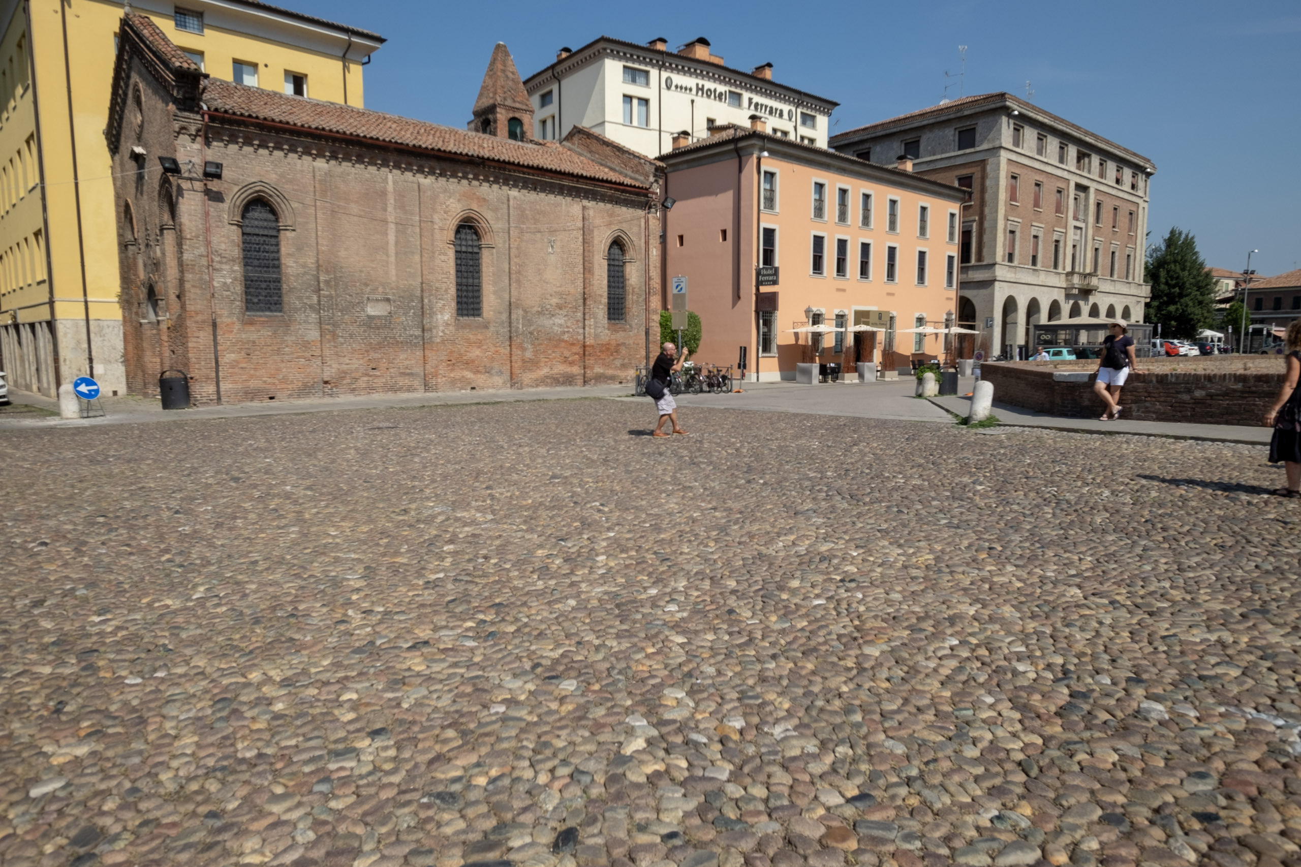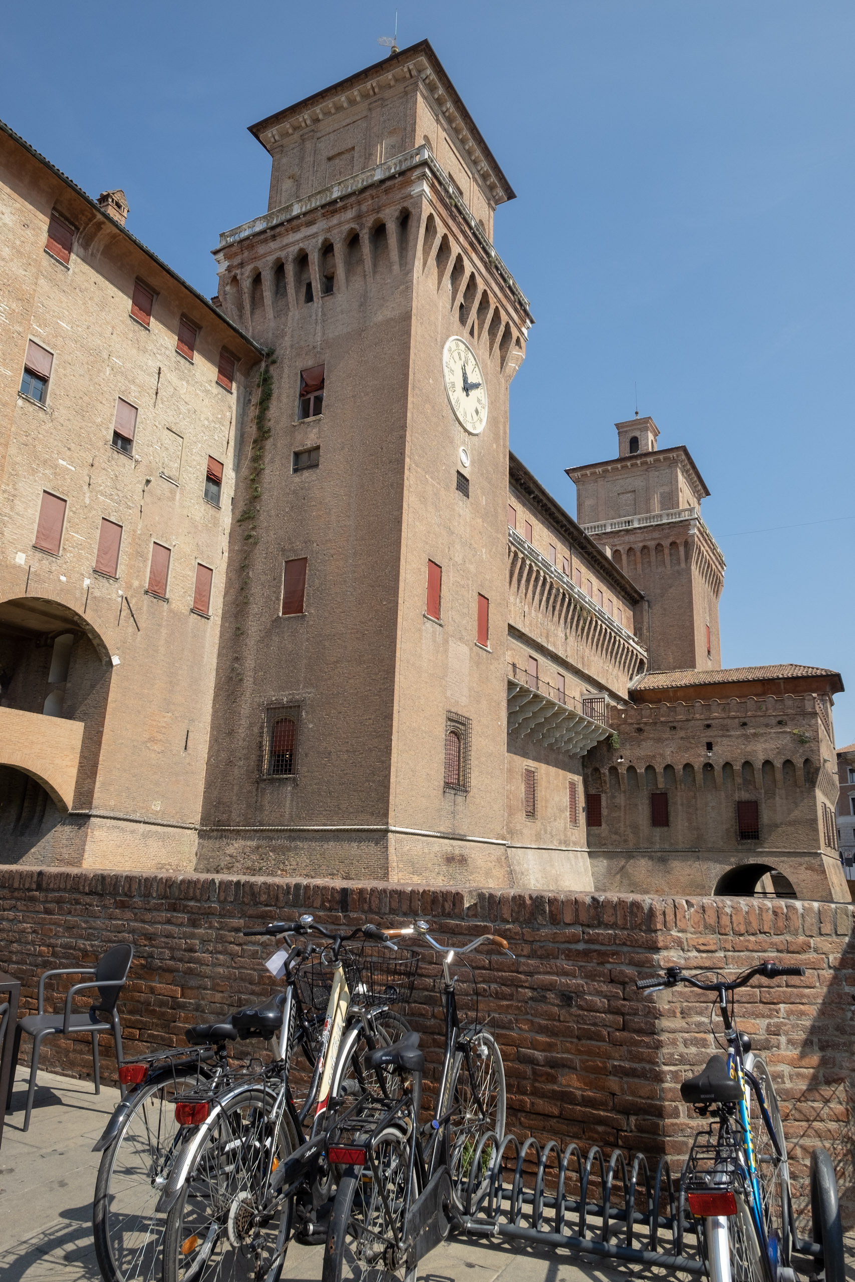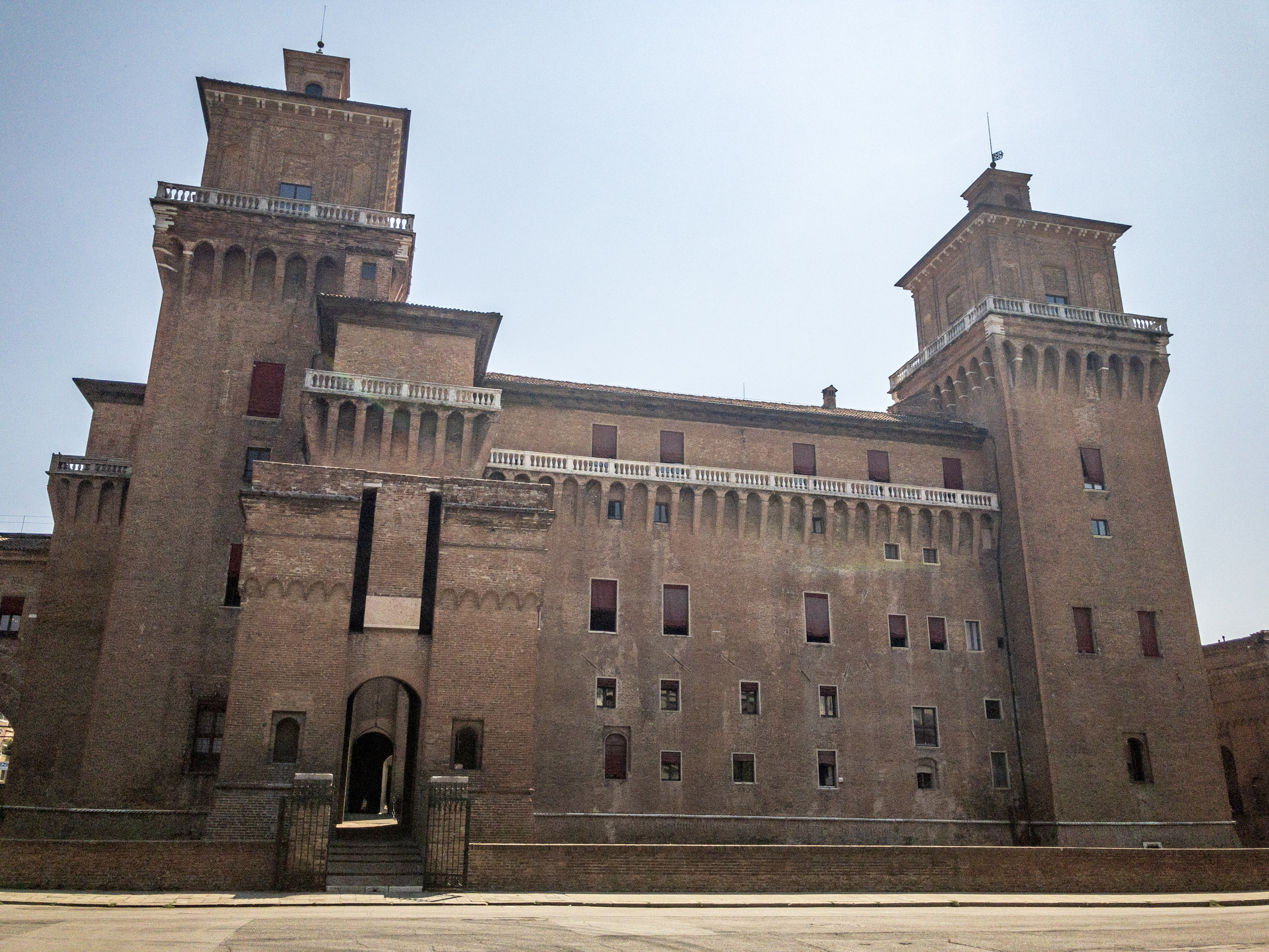 Before Venice, we stopped for lunch in Ferrara, a sleepier town than any other we had seen, and one which was quite dependent on bicycles for travel. To reach the main plazas, we passed by a castle once owned and occupied by the Borgias. This was our first castle with a still visible moat, serviced by genuine cobblestone roadways!