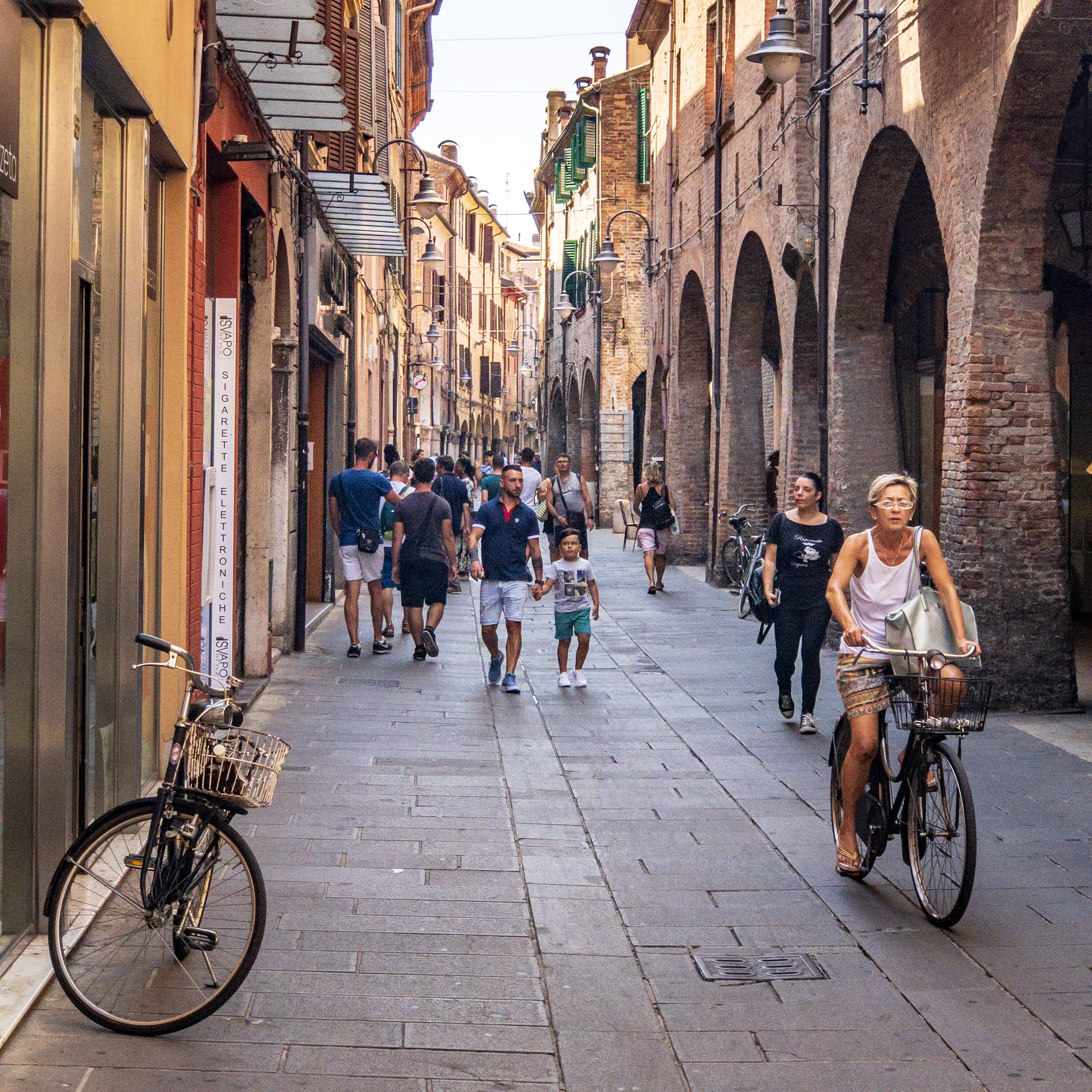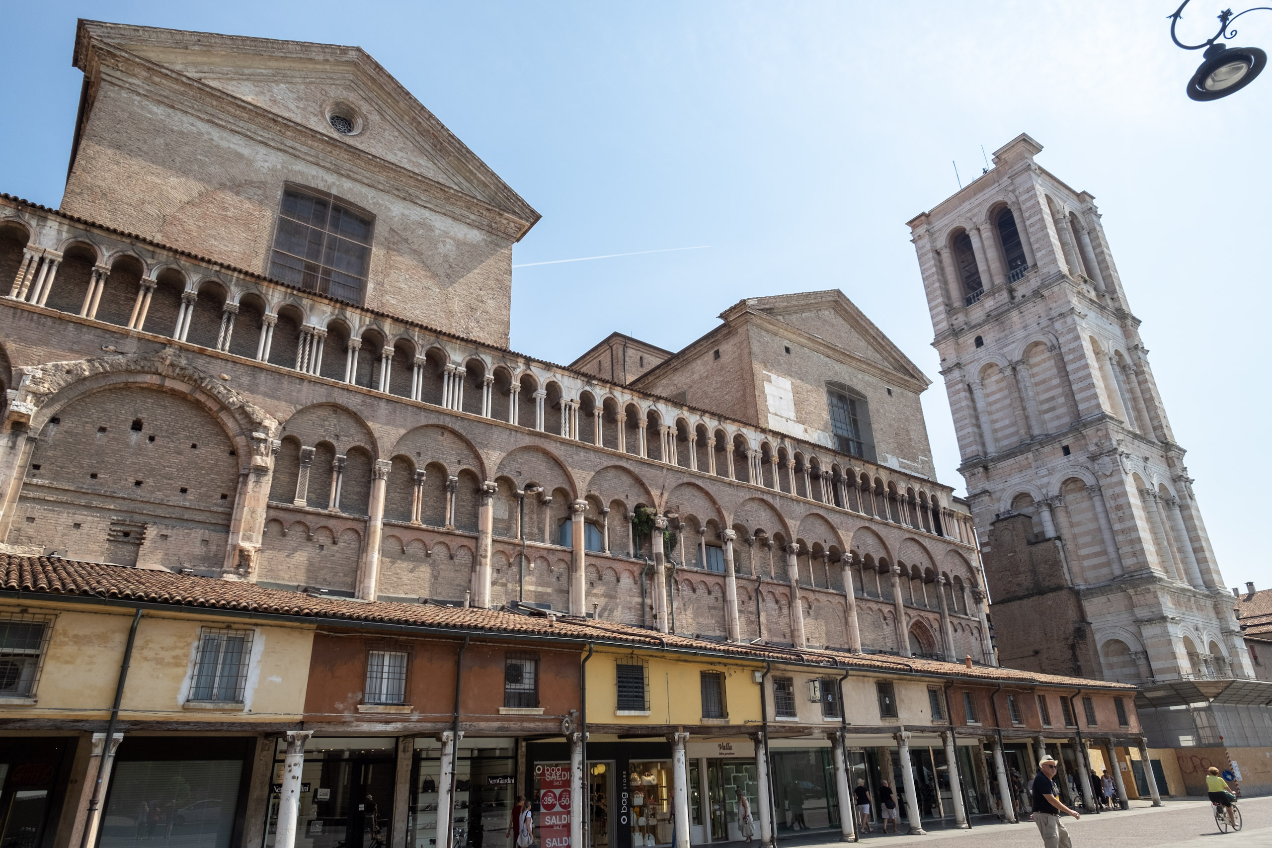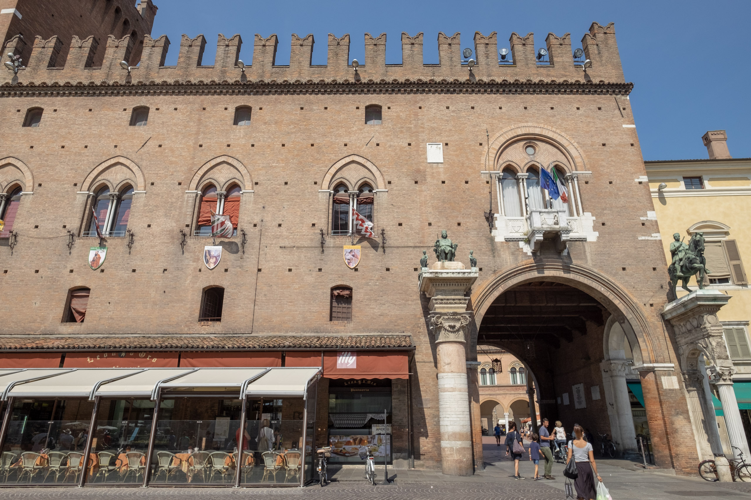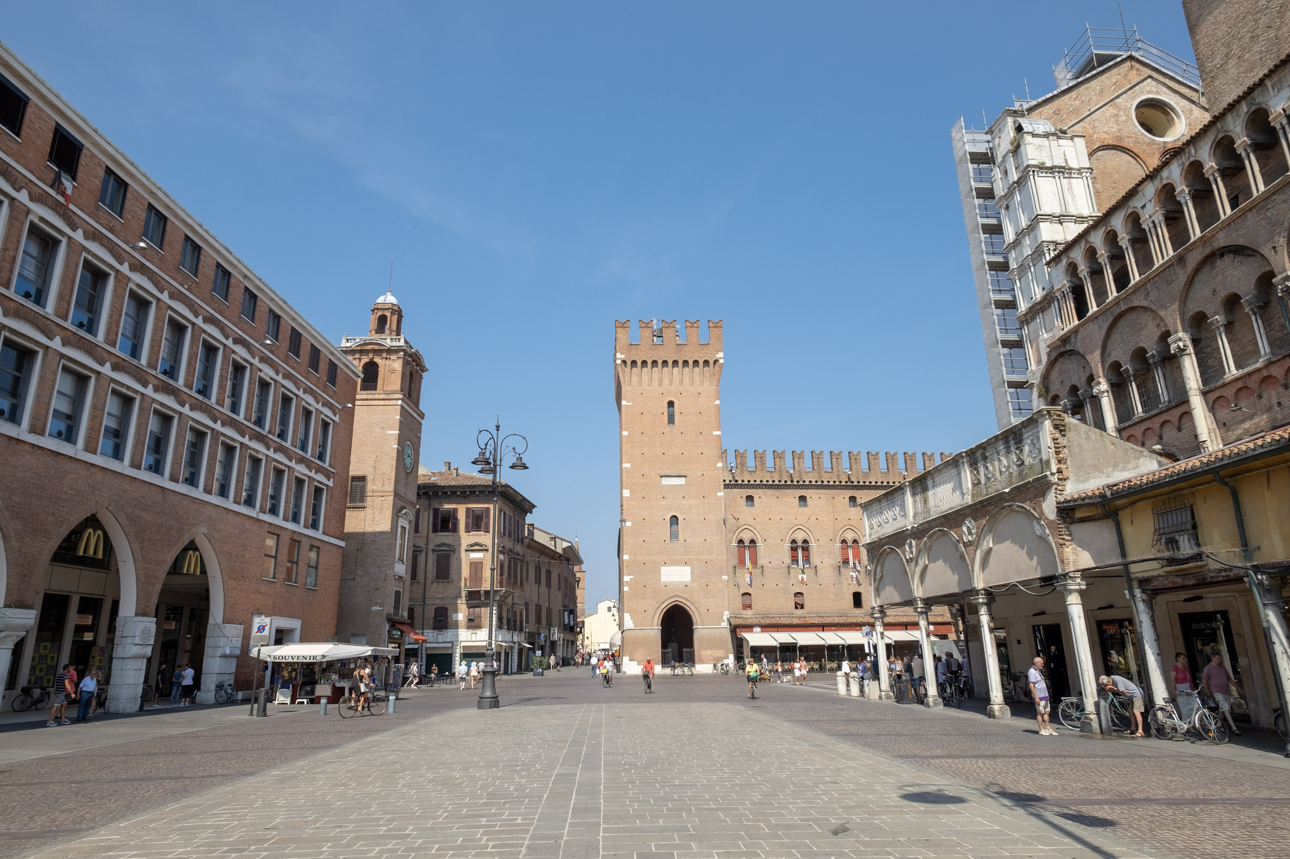 Before Venice, we stopped for lunch in Ferrara, a sleepier town than any other we had seen, and one which was quite dependent on bicycles for travel. To reach the main plazas, we passed by a castle once owned and occupied by the Borgias. This was our first castle with a still visible moat, serviced by genuine cobblestone roadways!