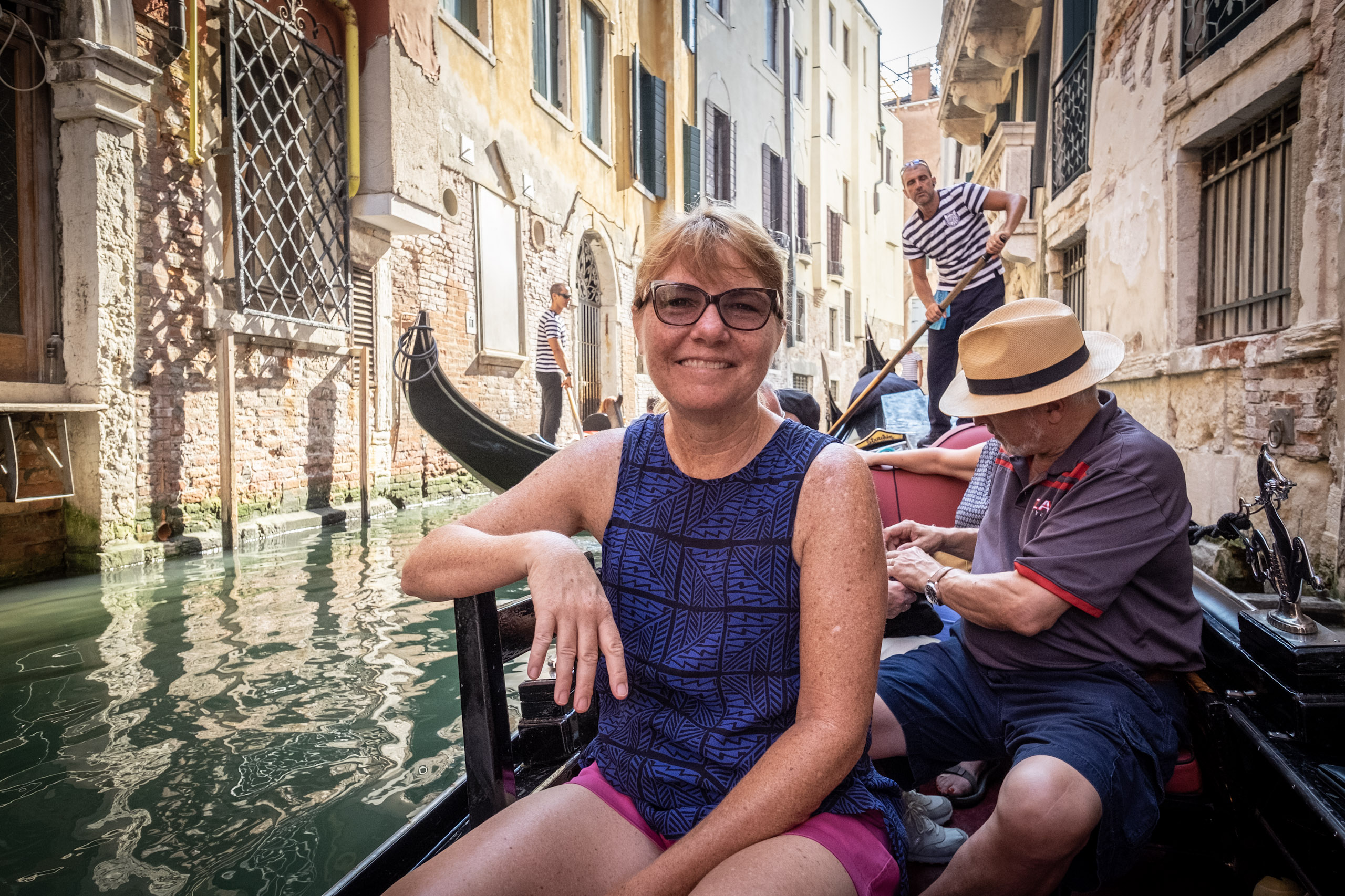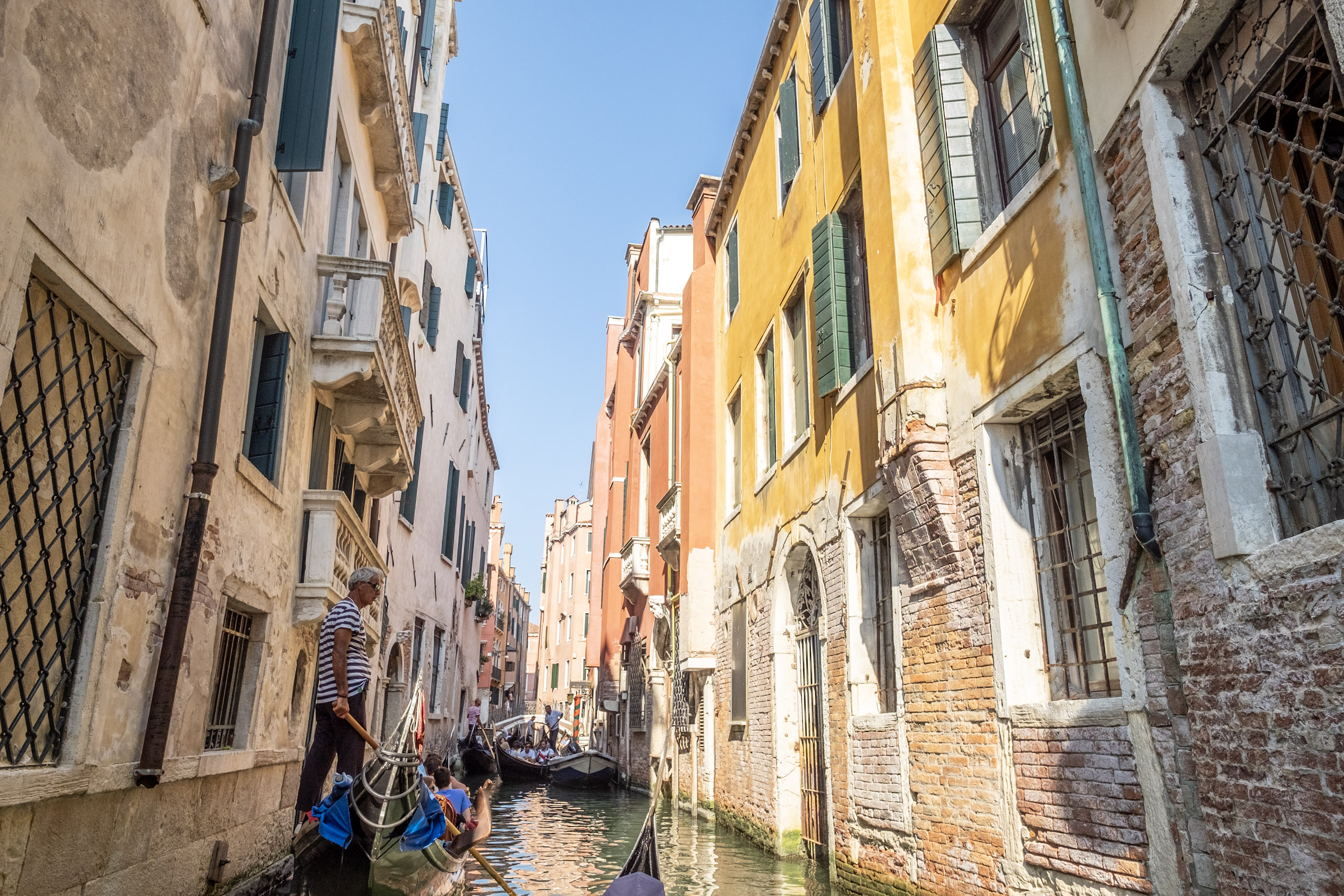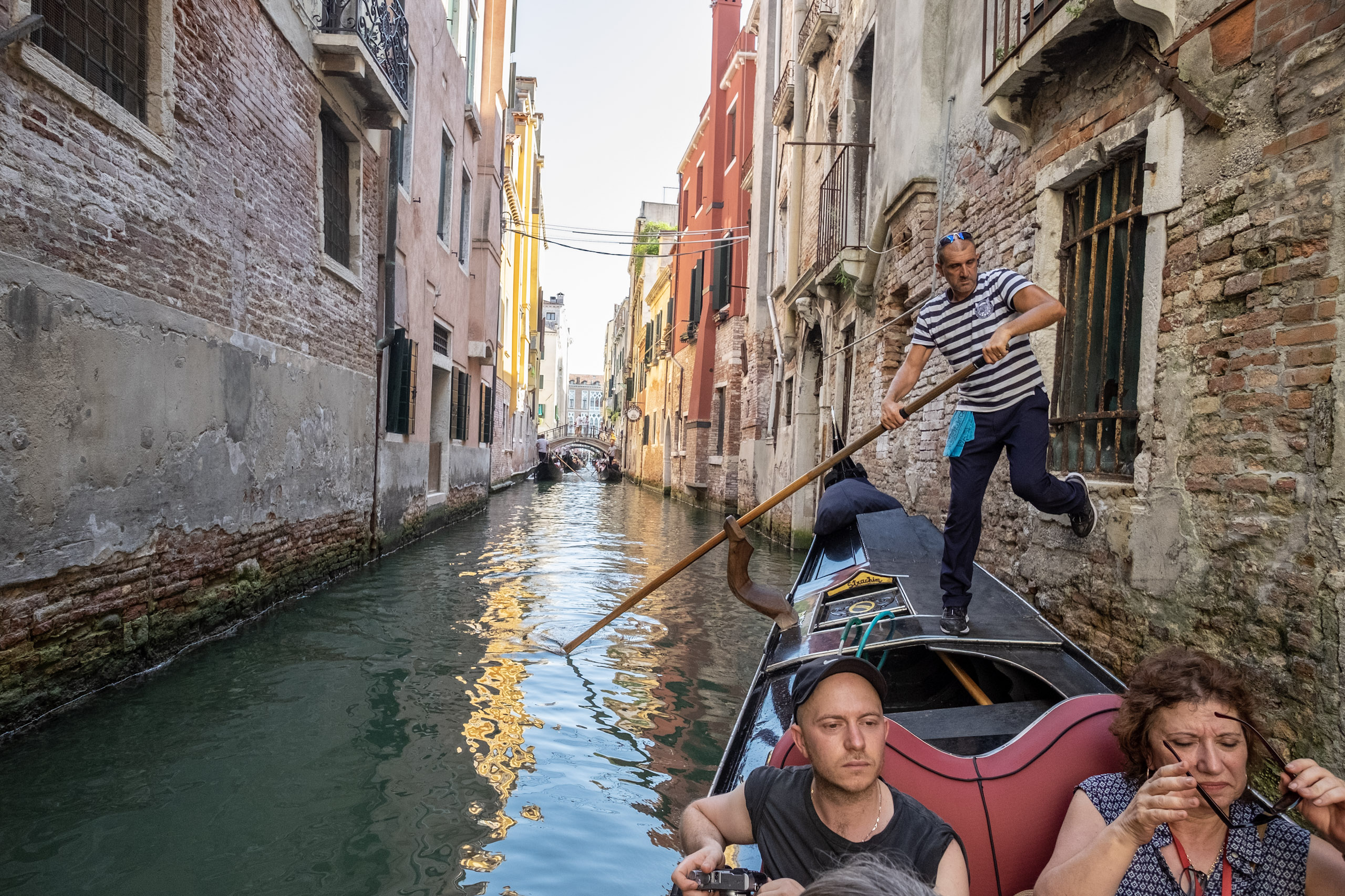 At the end of the taxi ride, our director ushered us toward Basilica de San Marco, for a quick glimpse of tomorrow’s destination. From there it was a short sweltering walk to our Gondola boat ride. May not have been romantic - the tour groups were broken up into gondola groups, but the initial exploration of the narrow watery inlets and bi-ways proved incredibly special and picturesque.