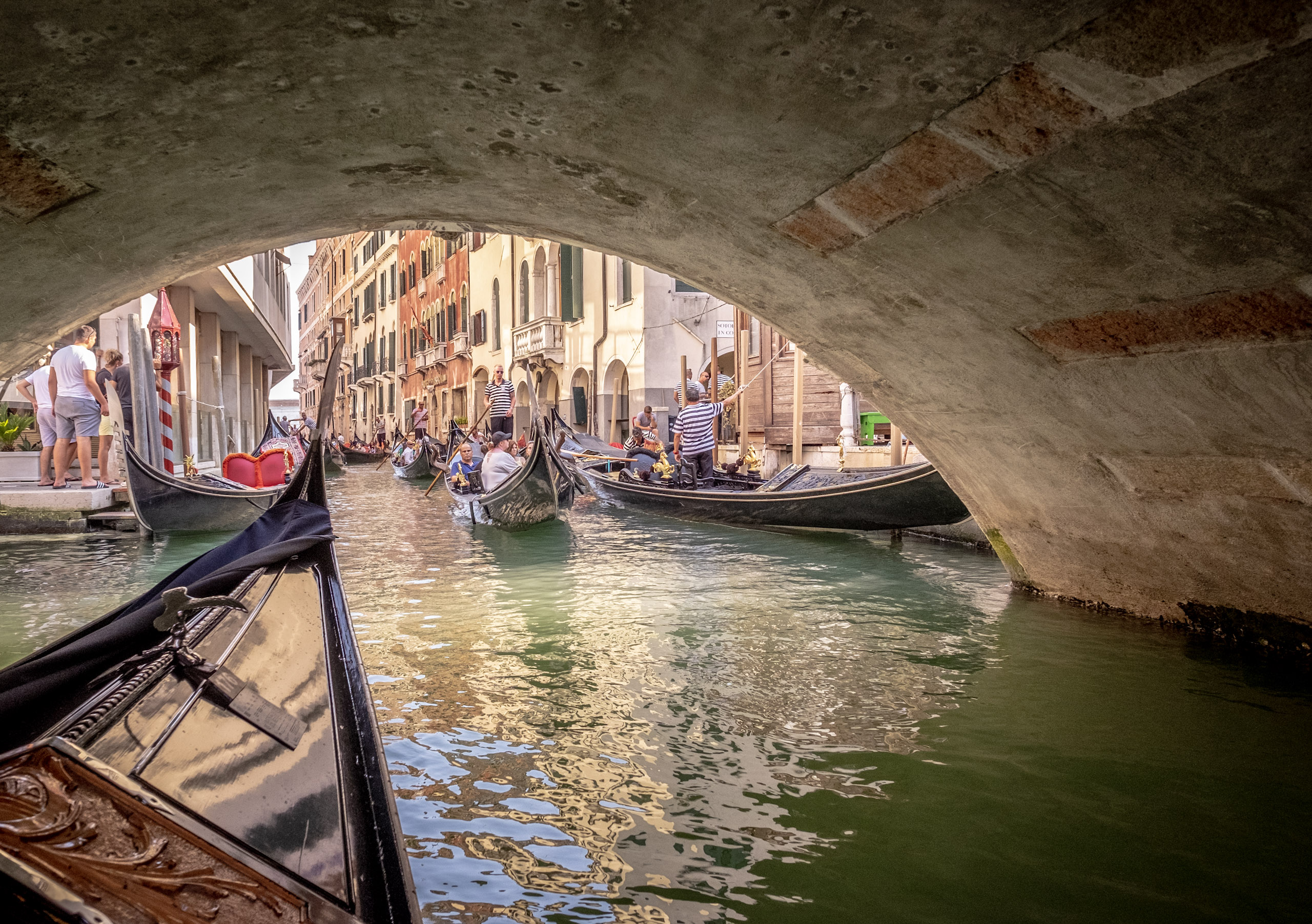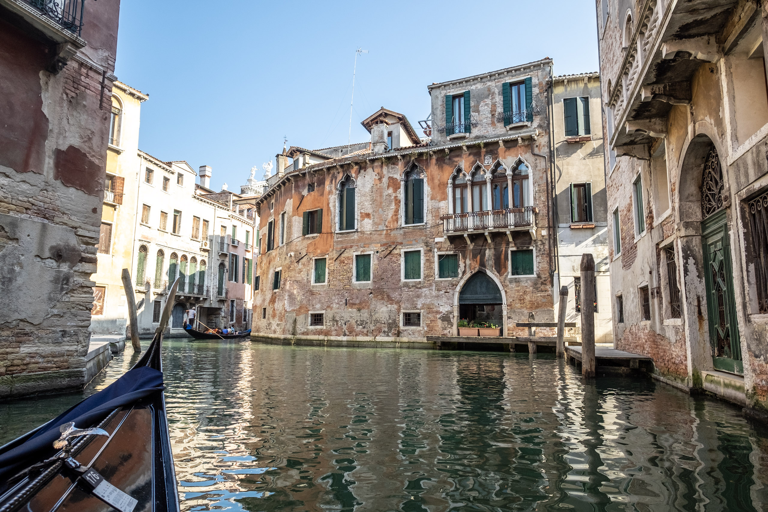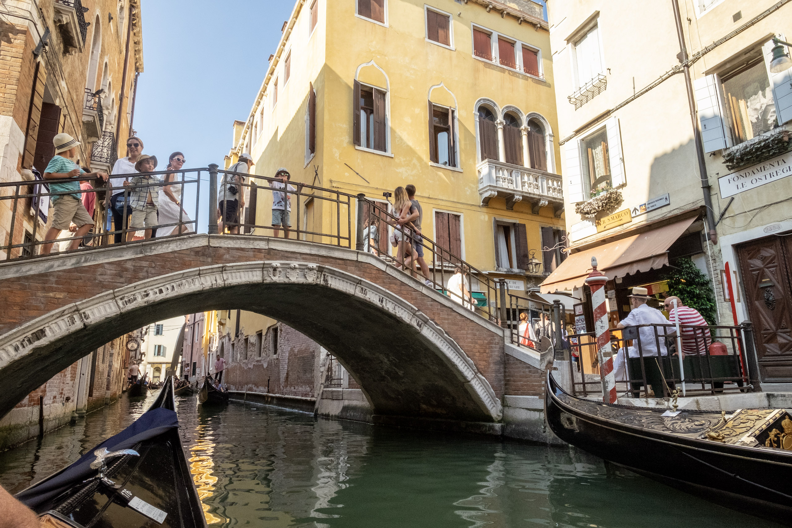 At the end of the taxi ride, our director ushered us toward Basilica de San Marco, for a quick glimpse of tomorrow’s destination. From there it was a short sweltering walk to our Gondola boat ride. May not have been romantic - the tour groups were broken up into gondola groups, but the initial exploration of the narrow watery inlets and bi-ways proved incredibly special and picturesque.