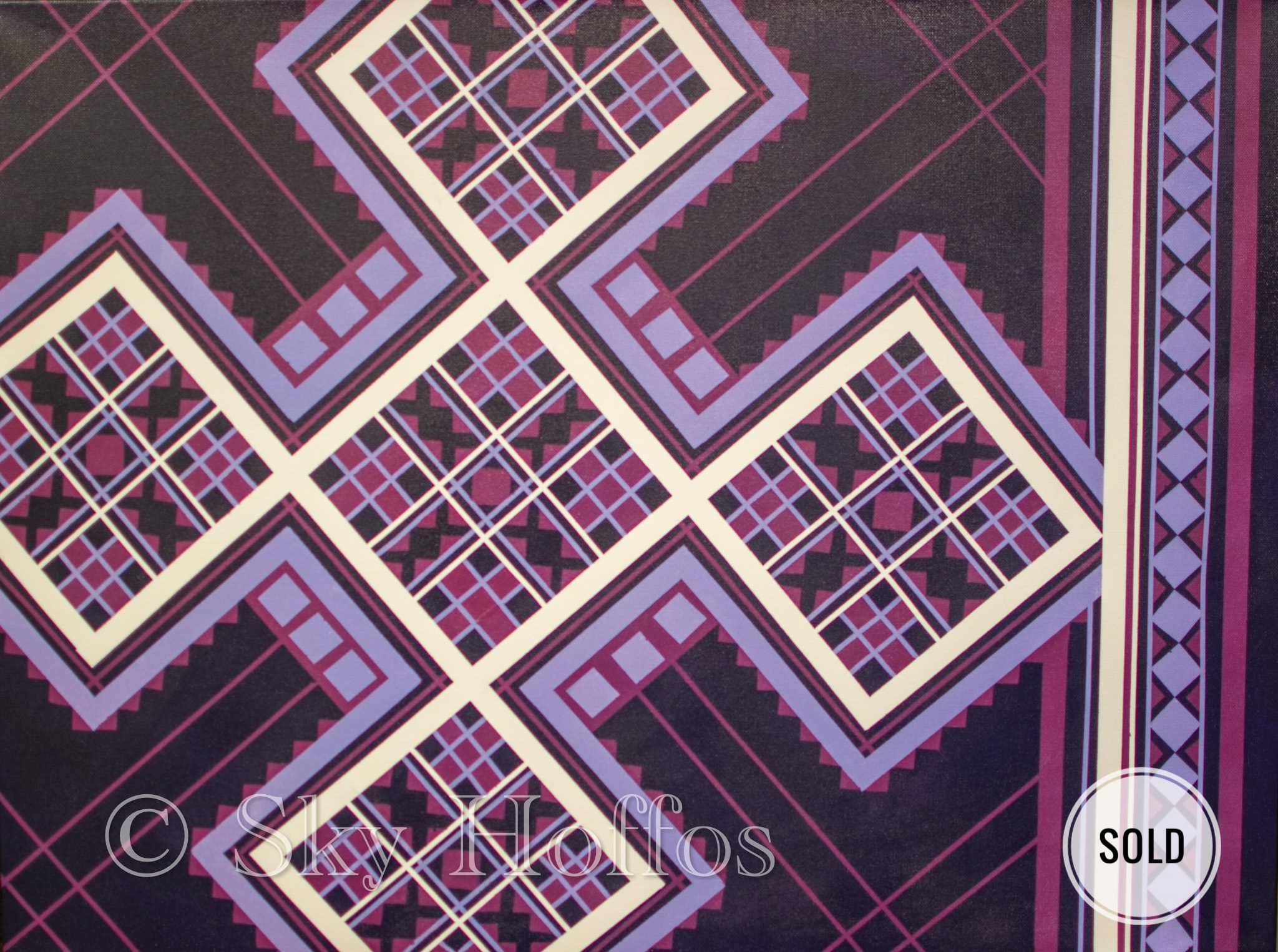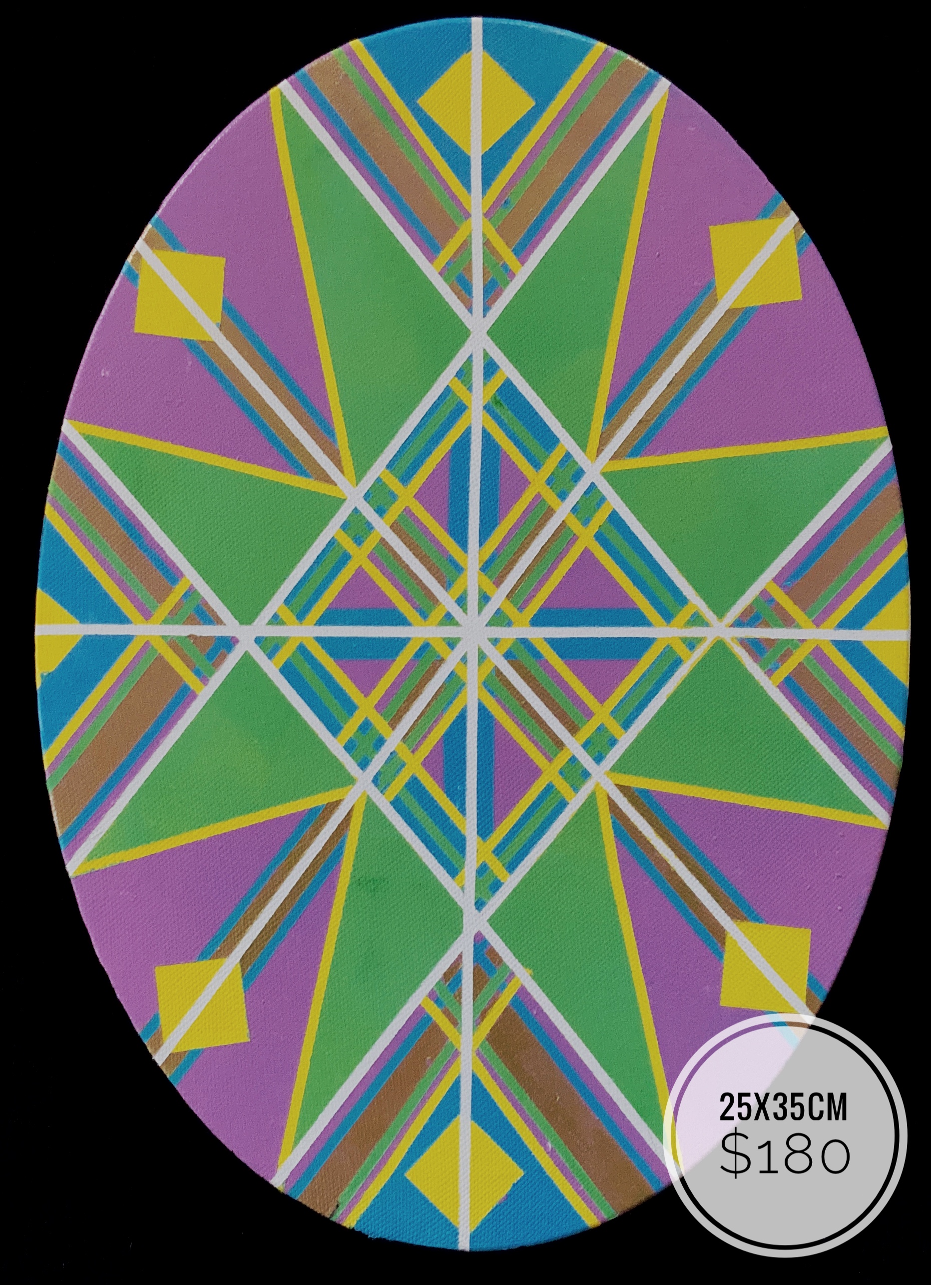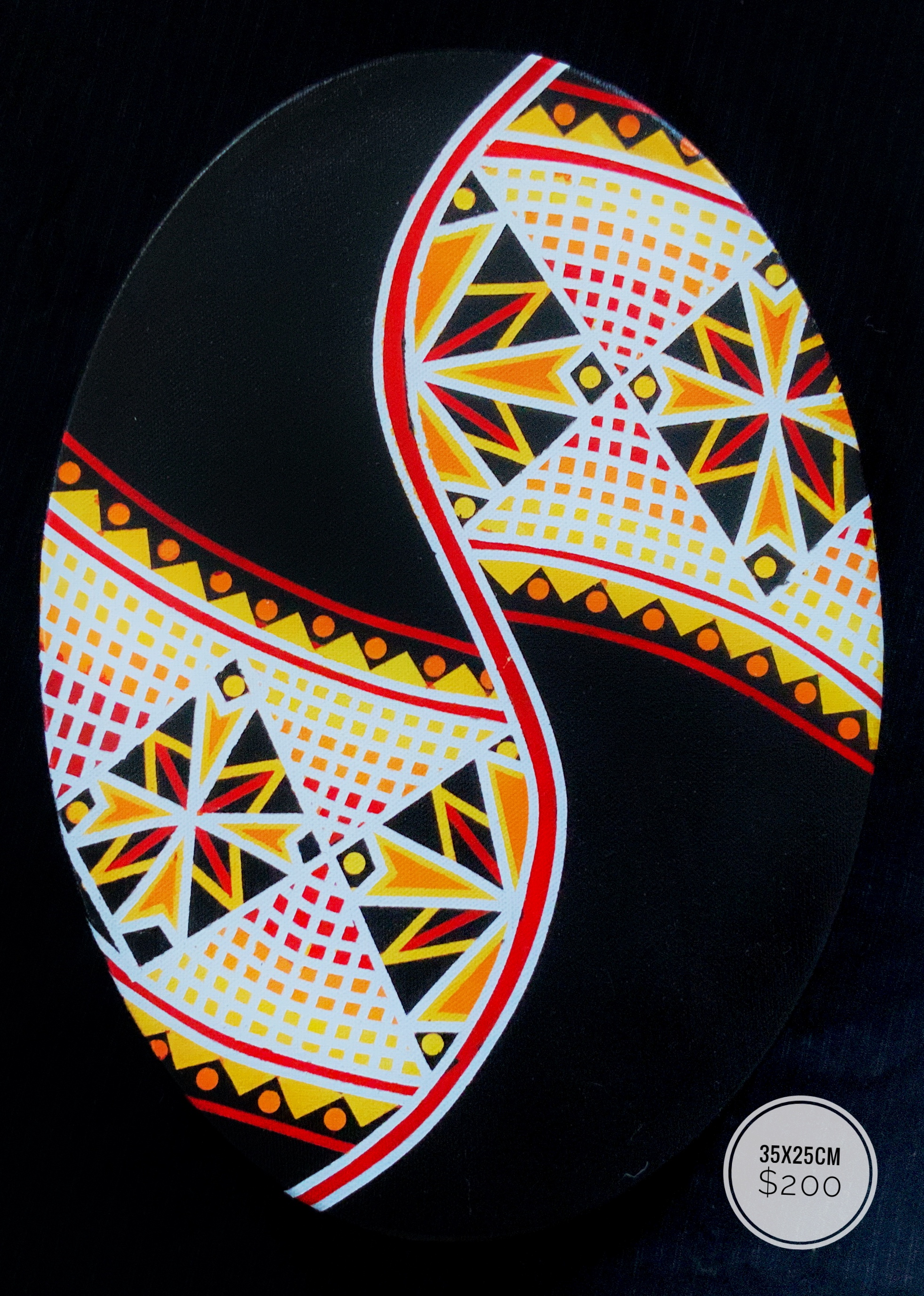 A large piece of my artwork is focused on Ukrainian Pysanka style acrylic painting. These pieces have been shown at the ACUA Art Gallery, and every piece is original, there are no prints created. I am constantly making new pieces, and I love this therapeutic geometric style. These paintings are each made in the same way as a waxed Pysanka egg, and once the painting is revealed, it is left as it is, beautiful natural blemishes and all, in the same way that you cannot change an egg once the wax is melted off. Imperfections make each piece unique.