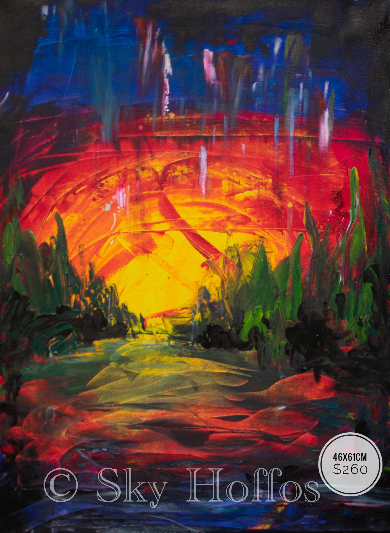 My name is Sky Hoffos, and I am an Alberta based artist of Ukrainian descent. My immediate family came to canada over a hundred years ago, but I am still in contact with relatives in Бовдури, and they are telling us stories now of explosions, bridges and railways blown out, and fear in the countryside.