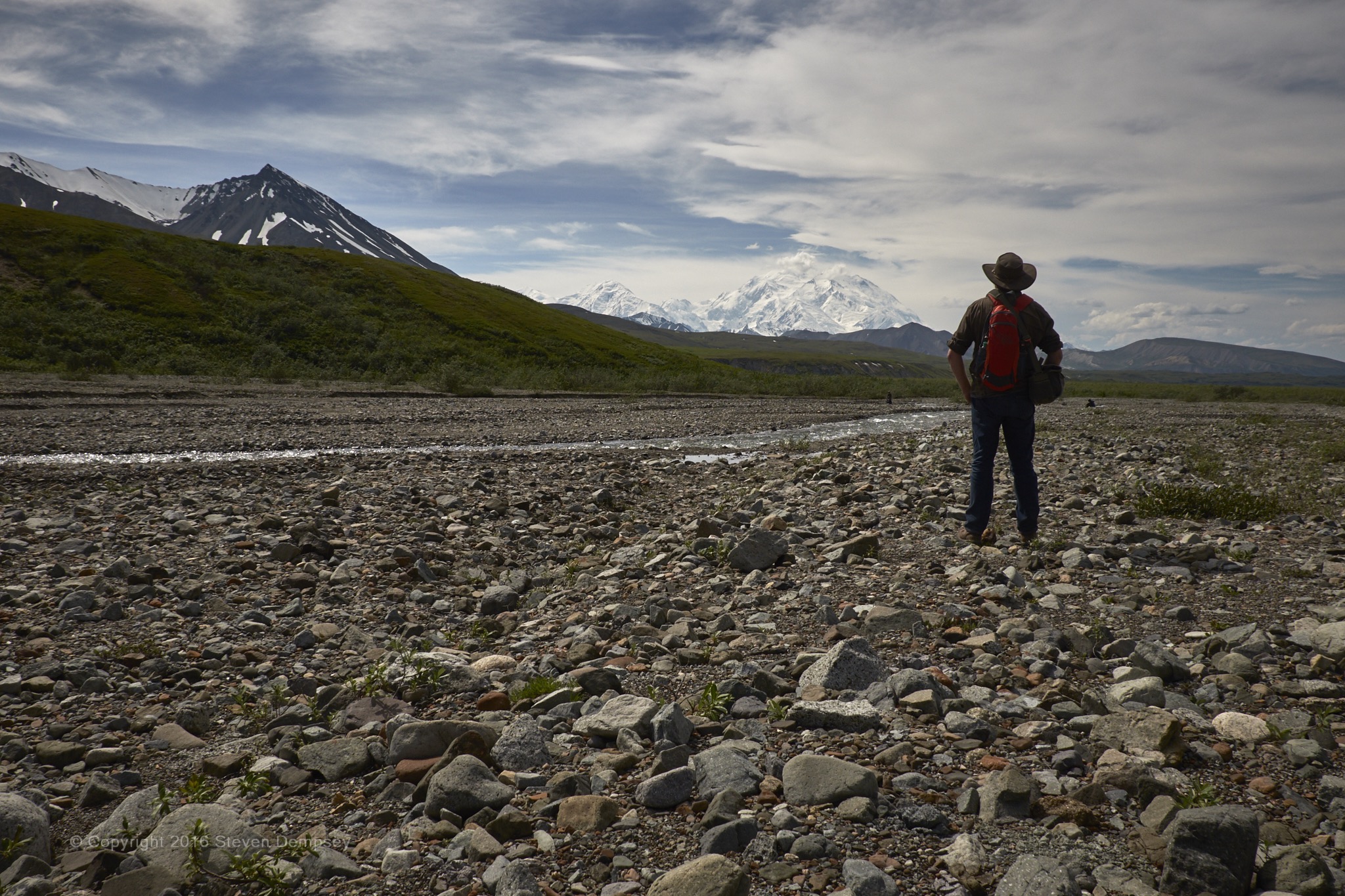 Because it generates its own weather system and the weather itself is so unpredictable in Alaska, it was a miracle we got to see Denali at all. Some friends of ours spent time in the park and saw nothing but clouds. Seeing it for the first time as the park bus wound its way through the Polychrome Pass was like seeing an IMAX screen times one hundred. It is massive!! For the three or four times I took the bus through the park, I had the same reaction each time.
