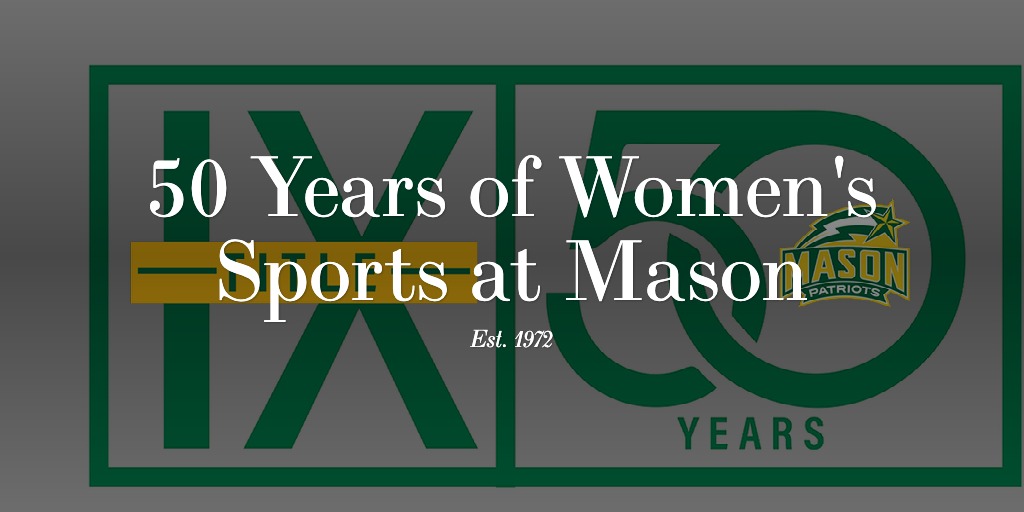 At George Mason, women’s tennis began in 1972 as the inaugural women’s sport. Ten years later the Patriots had seven women’s teams. By the turn of the century, Mason offered the 22 varsity sports for women available today. Men’s teams benefitted as well. Men’s sports at Mason increased from six in 1972 to 22 sports today.