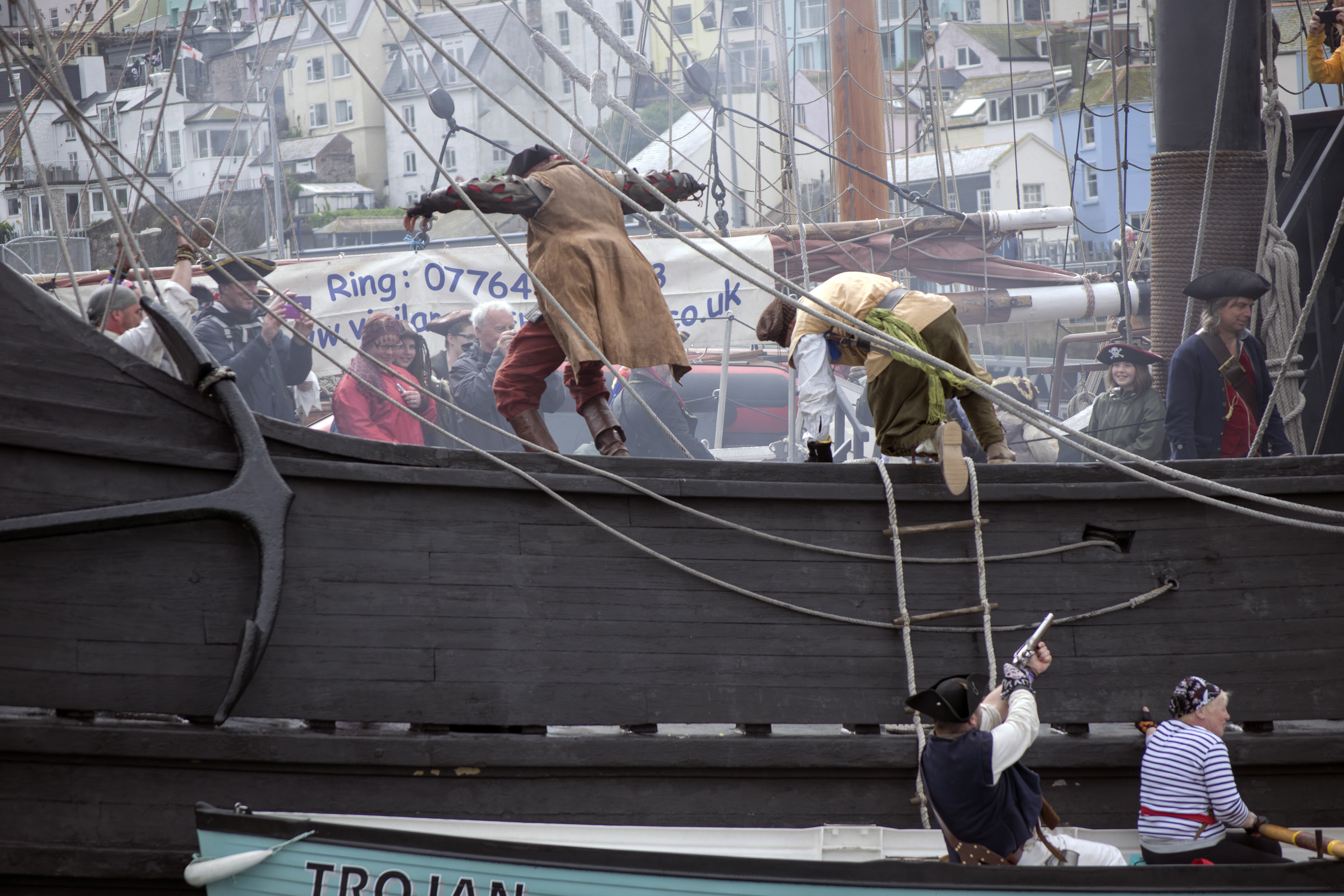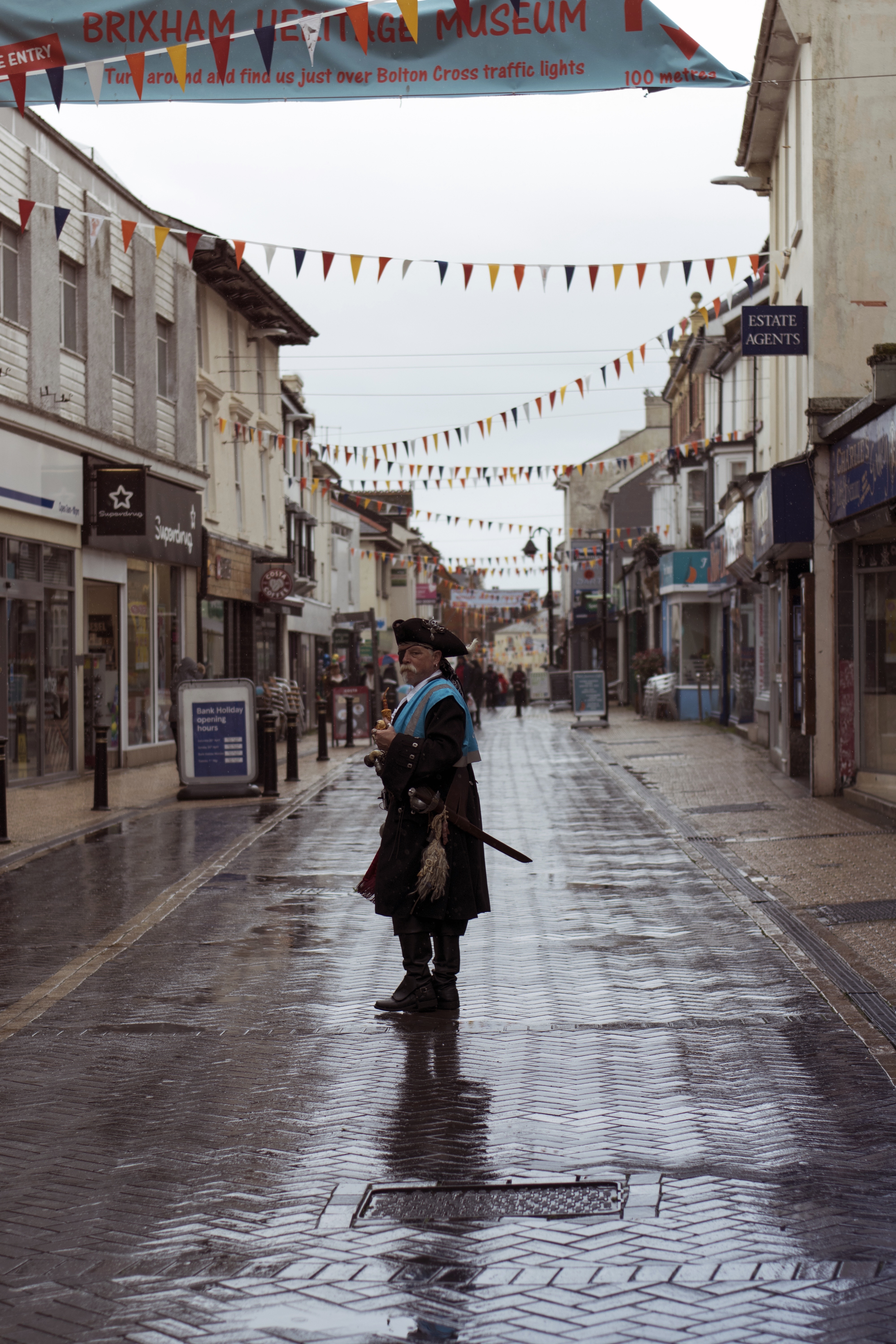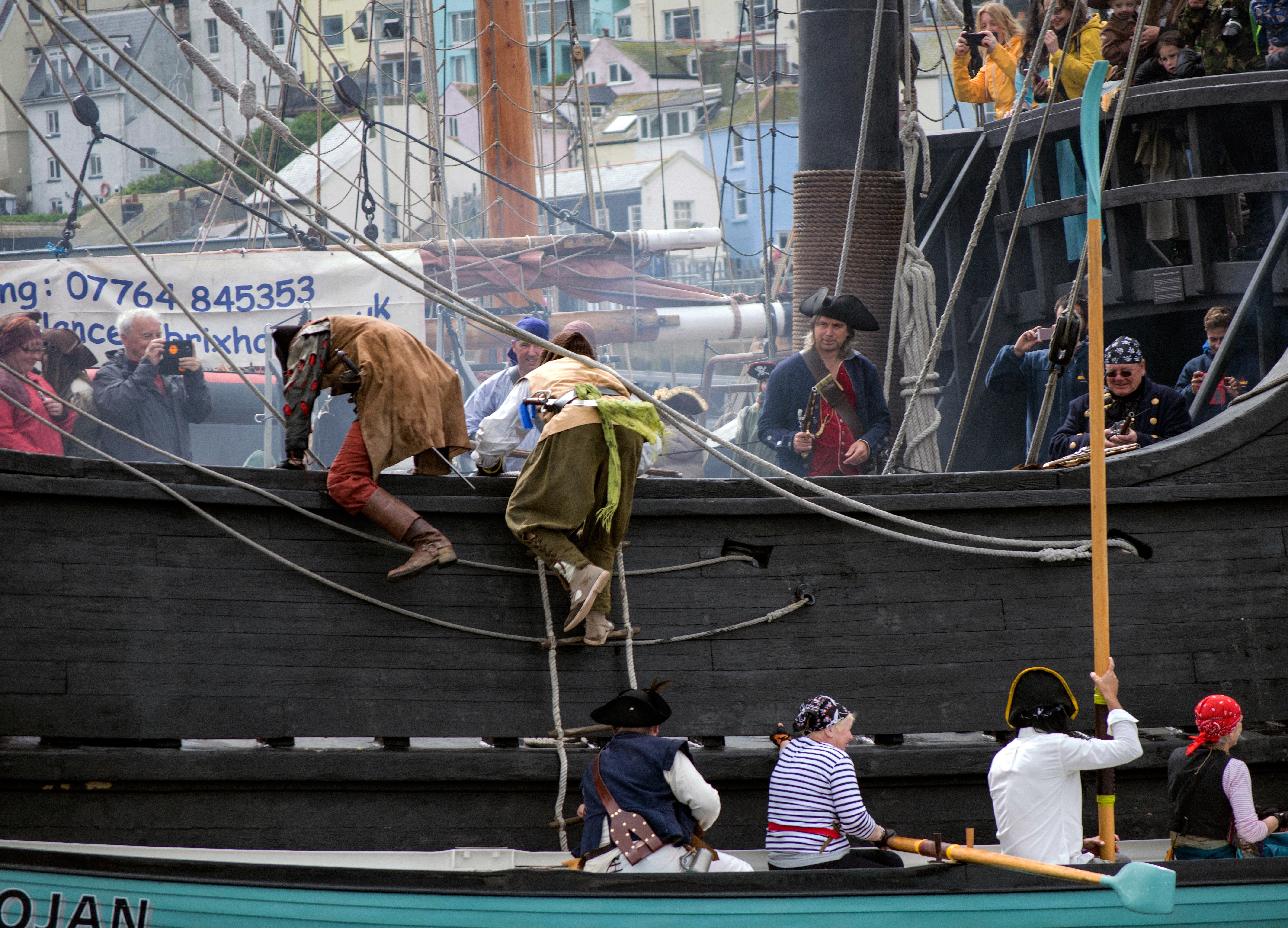 Down by the harbour the pirates begin to arrive in readiness for the first of the parades which normally starts at the top of Brixham's Fore Street each day around 10.30am.