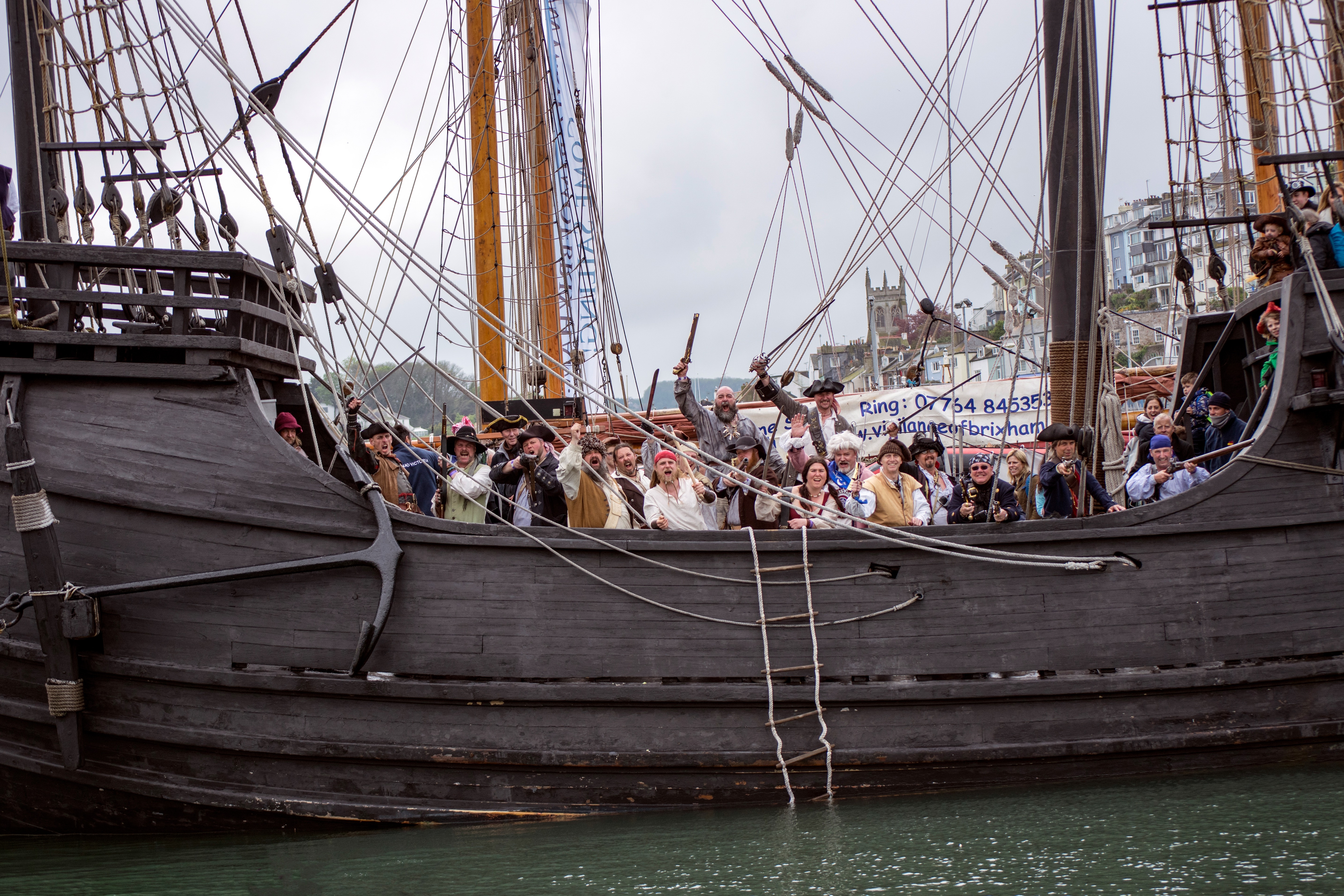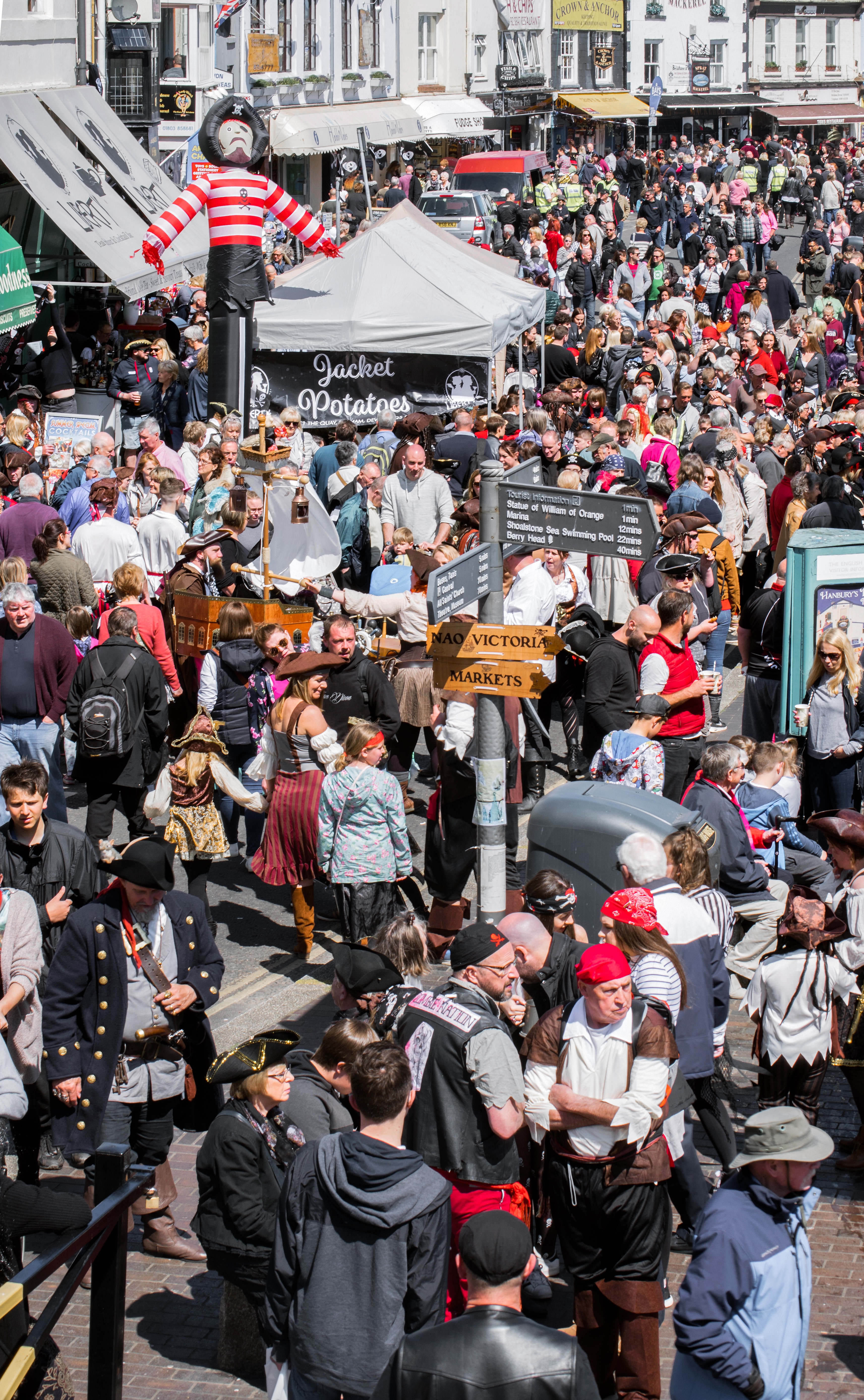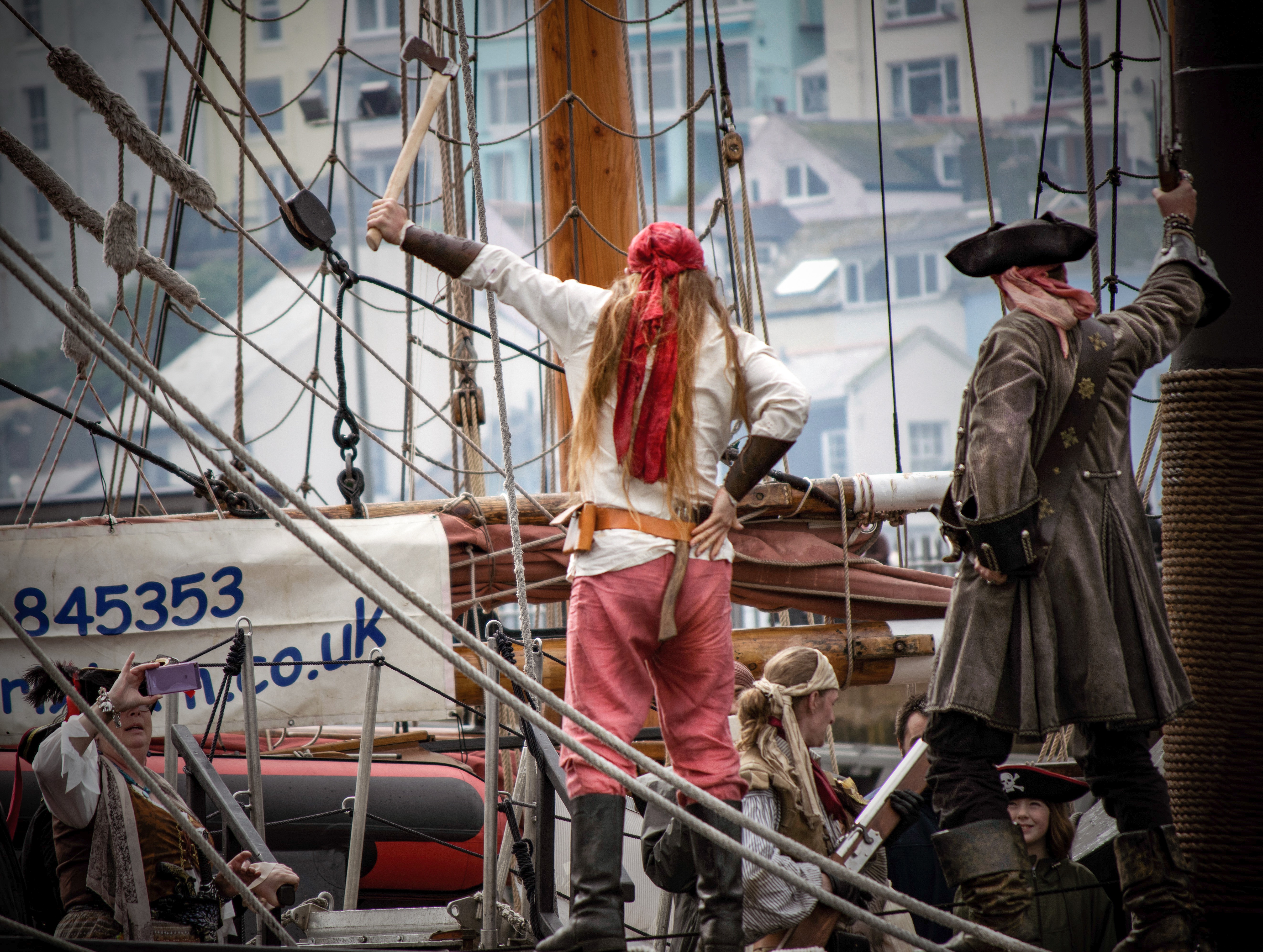 Down by the harbour the pirates begin to arrive in readiness for the first of the parades which normally starts at the top of Brixham's Fore Street each day around 10.30am.