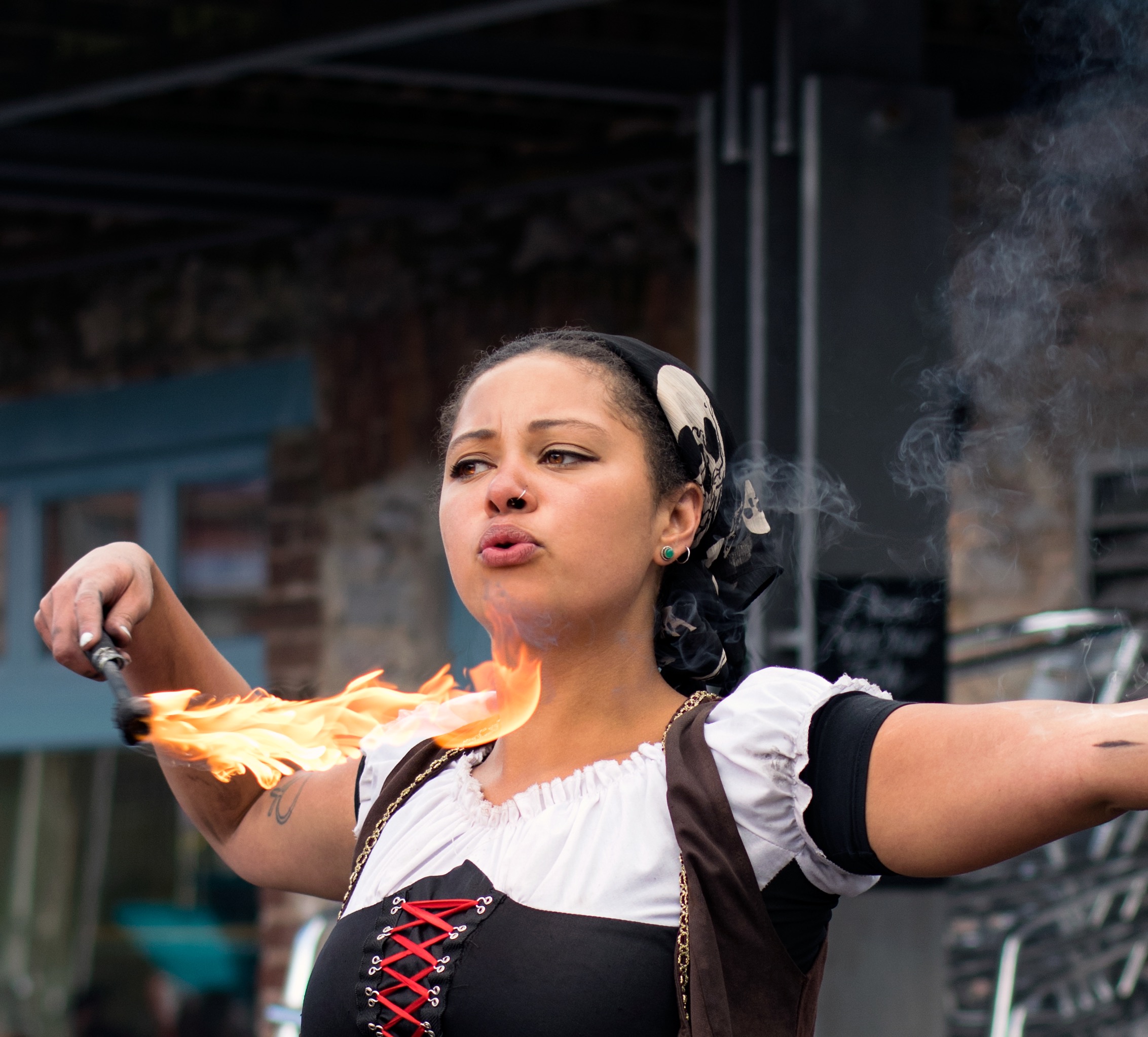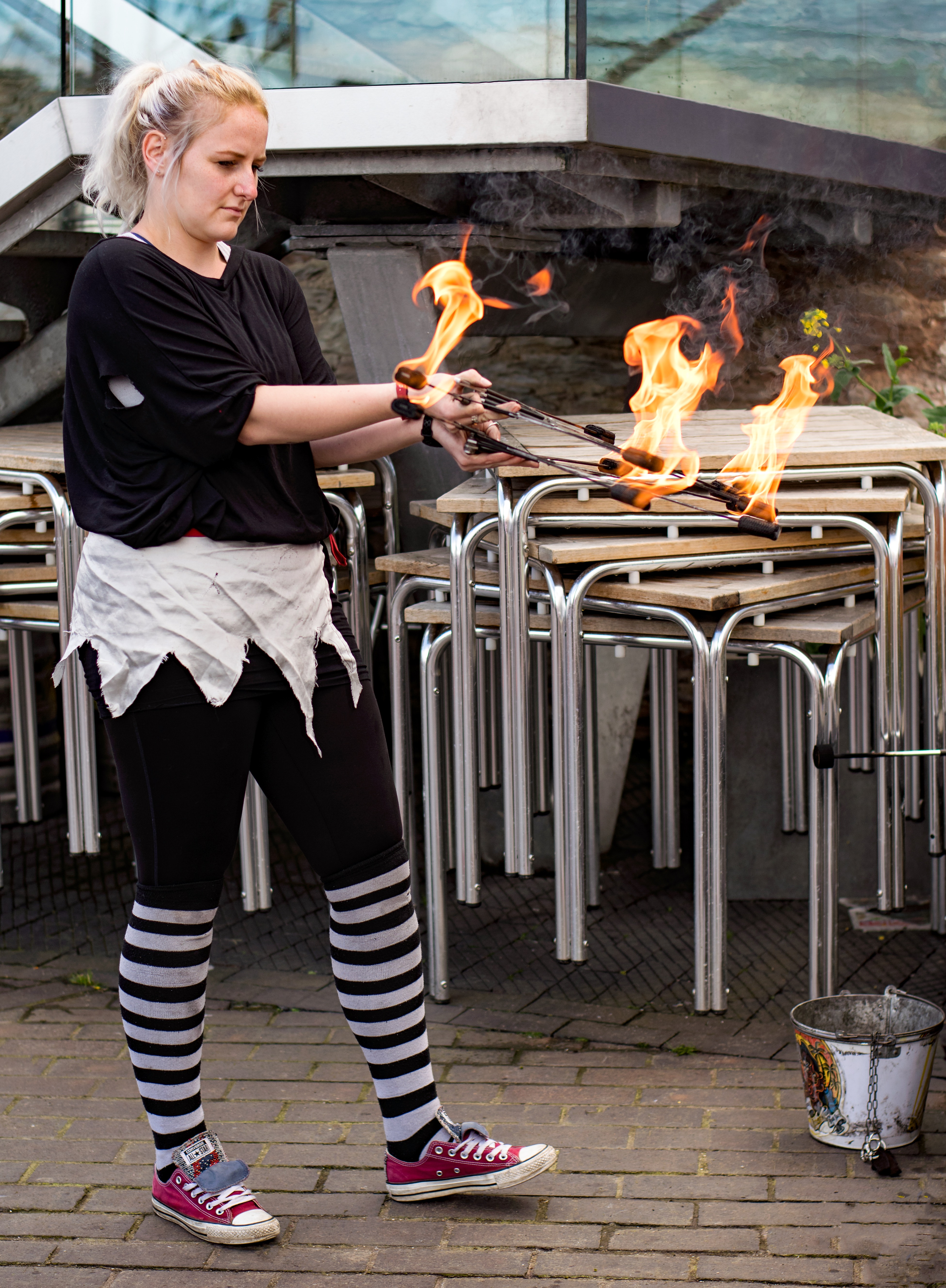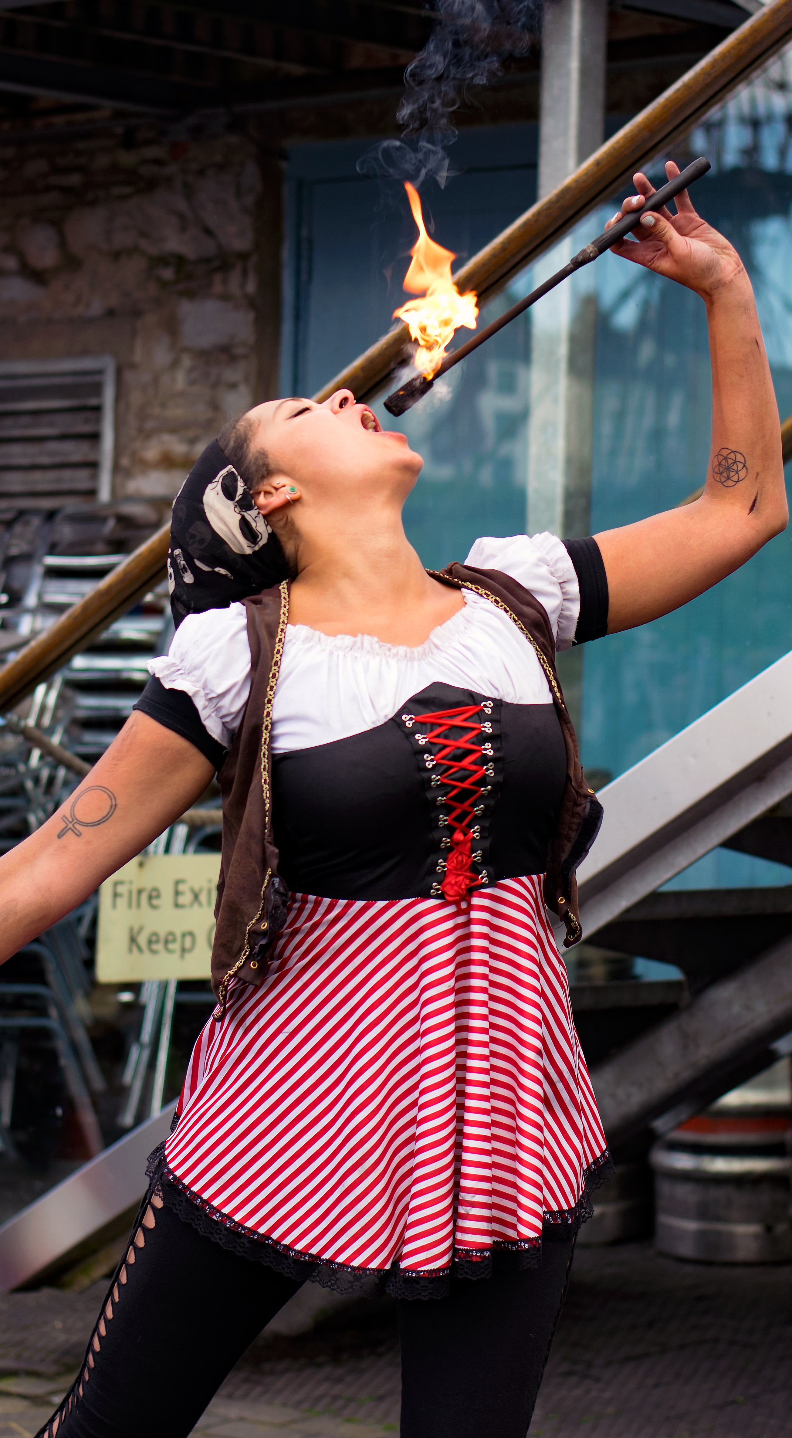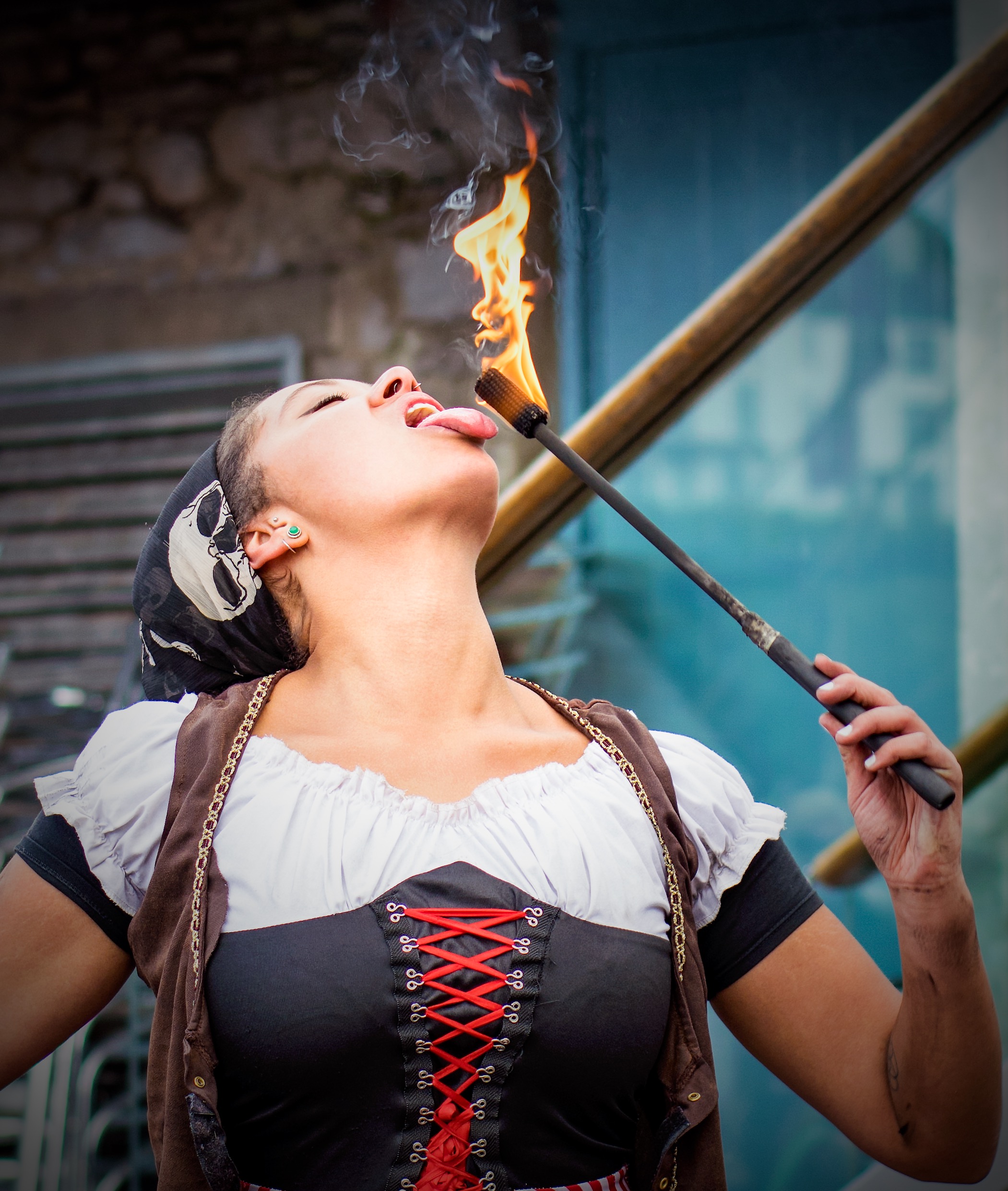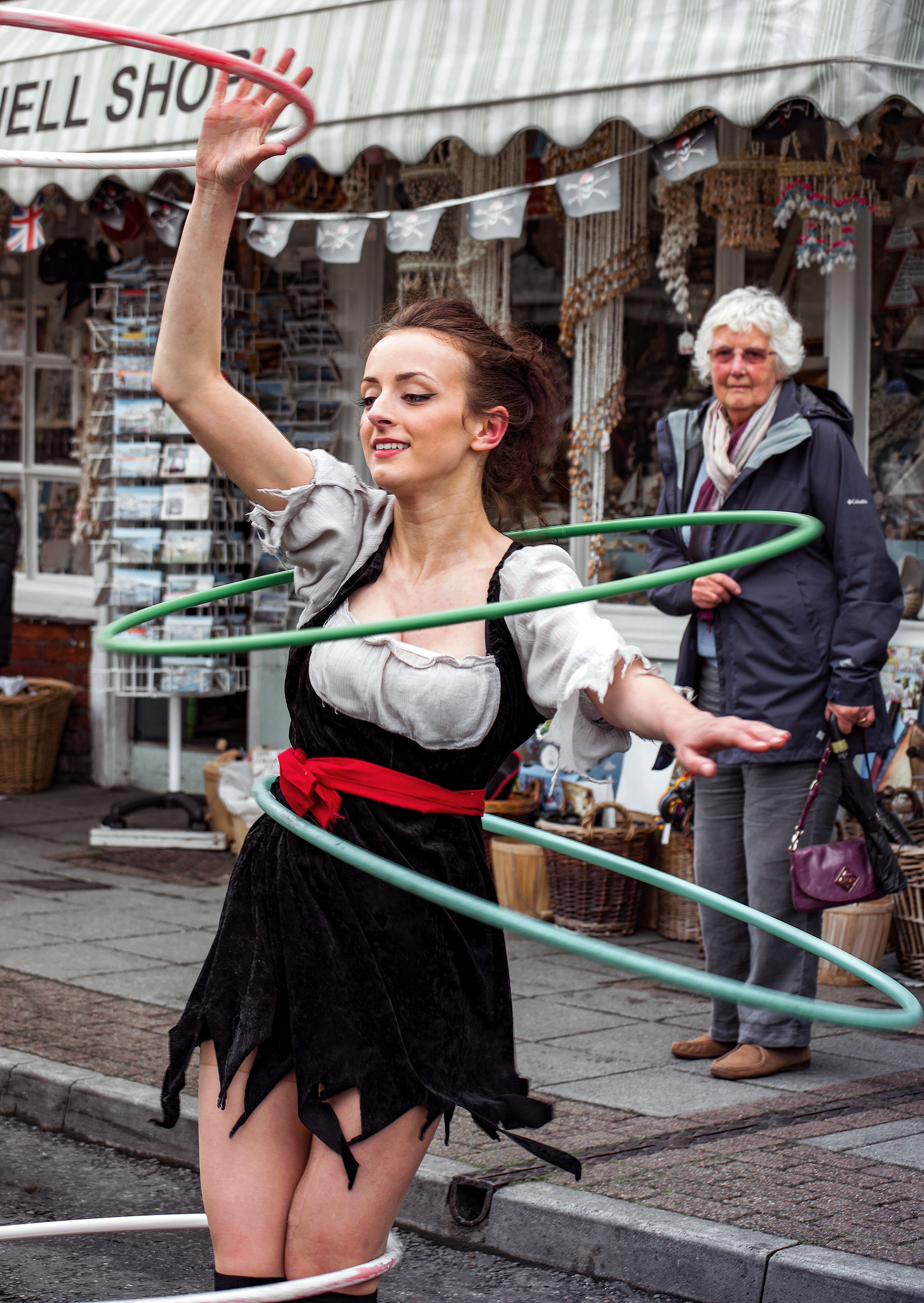 If pirates, skirmishes, music and stalls still aren't enough then there's always lots of really great street entertainment. The following three girls provided some great shows throughout the day including hoops, fire hoops, fire eating and more...