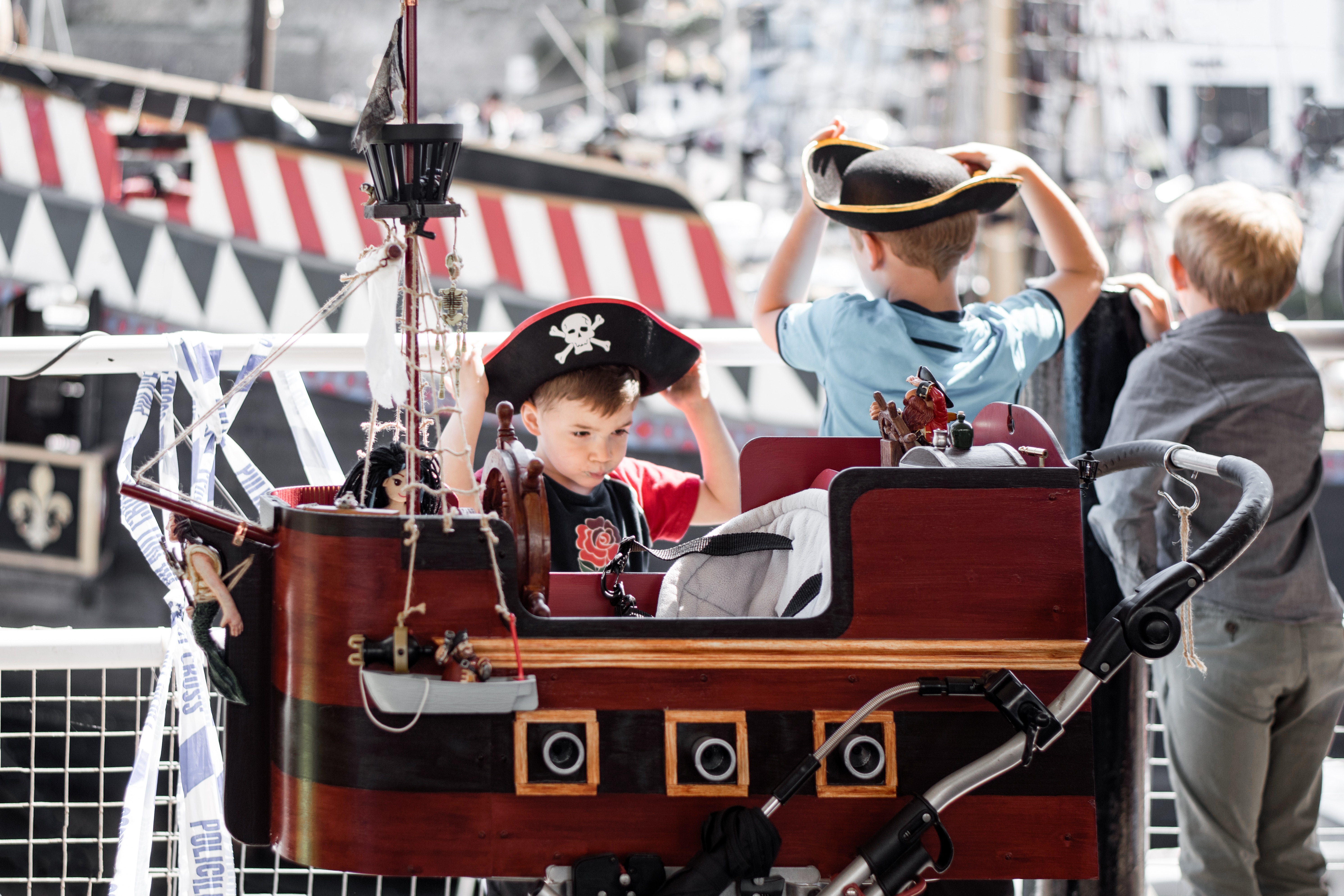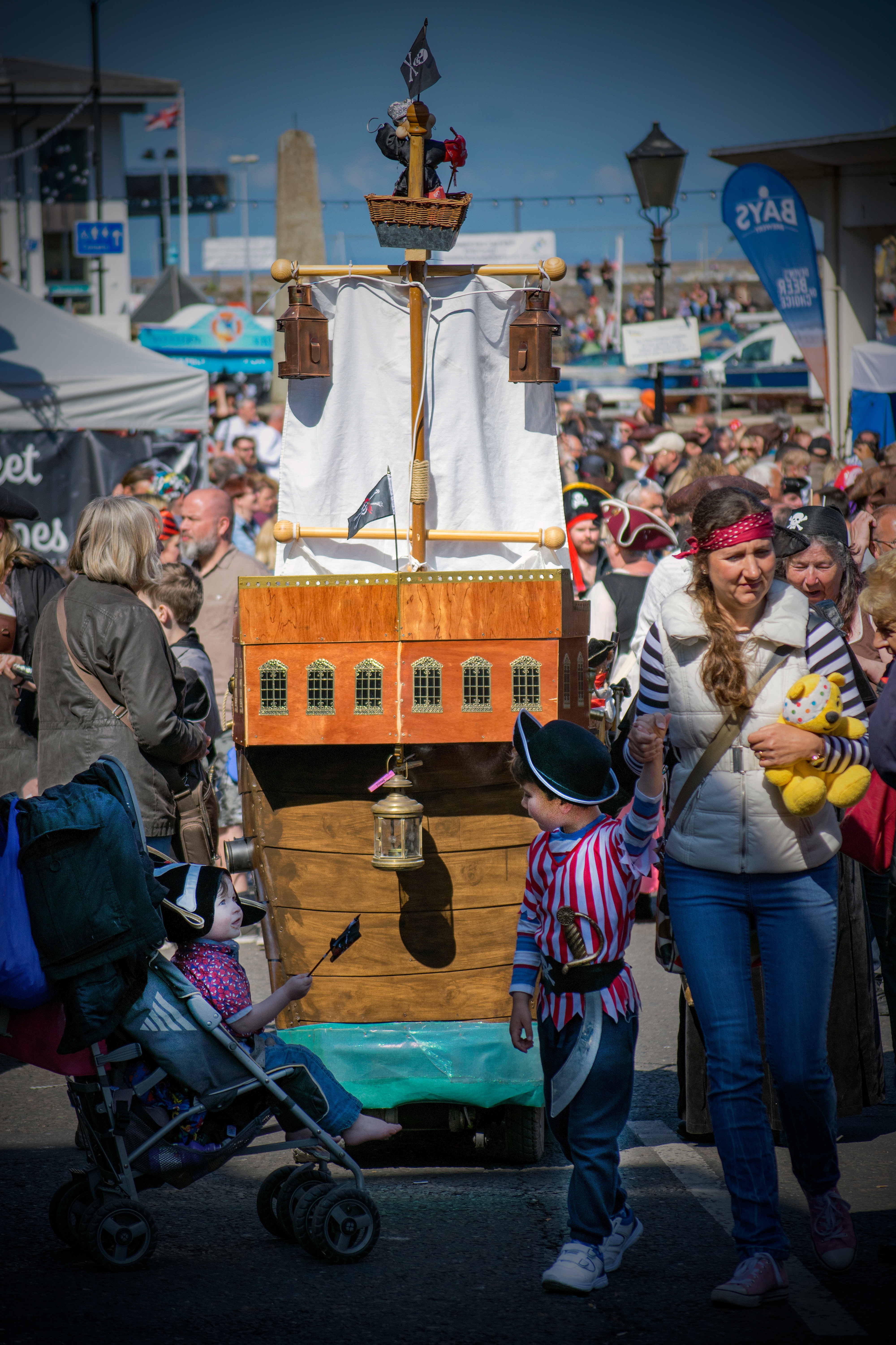 Young or old there's something for everyone at the Pirate Festival. Even Pirate babies are ferried in pirate style. Here's a baby buggy that has been converted into a ship! fantastic!