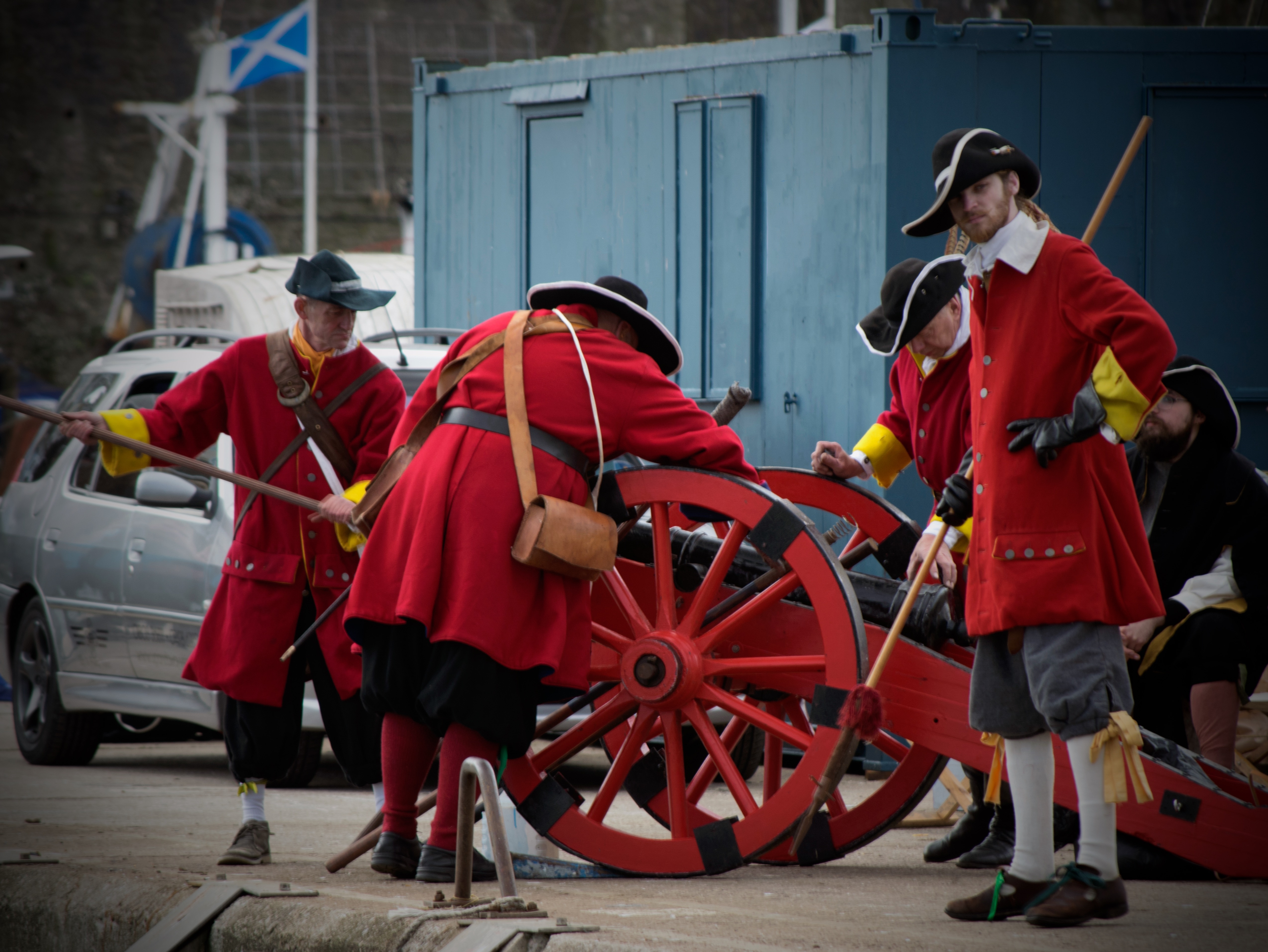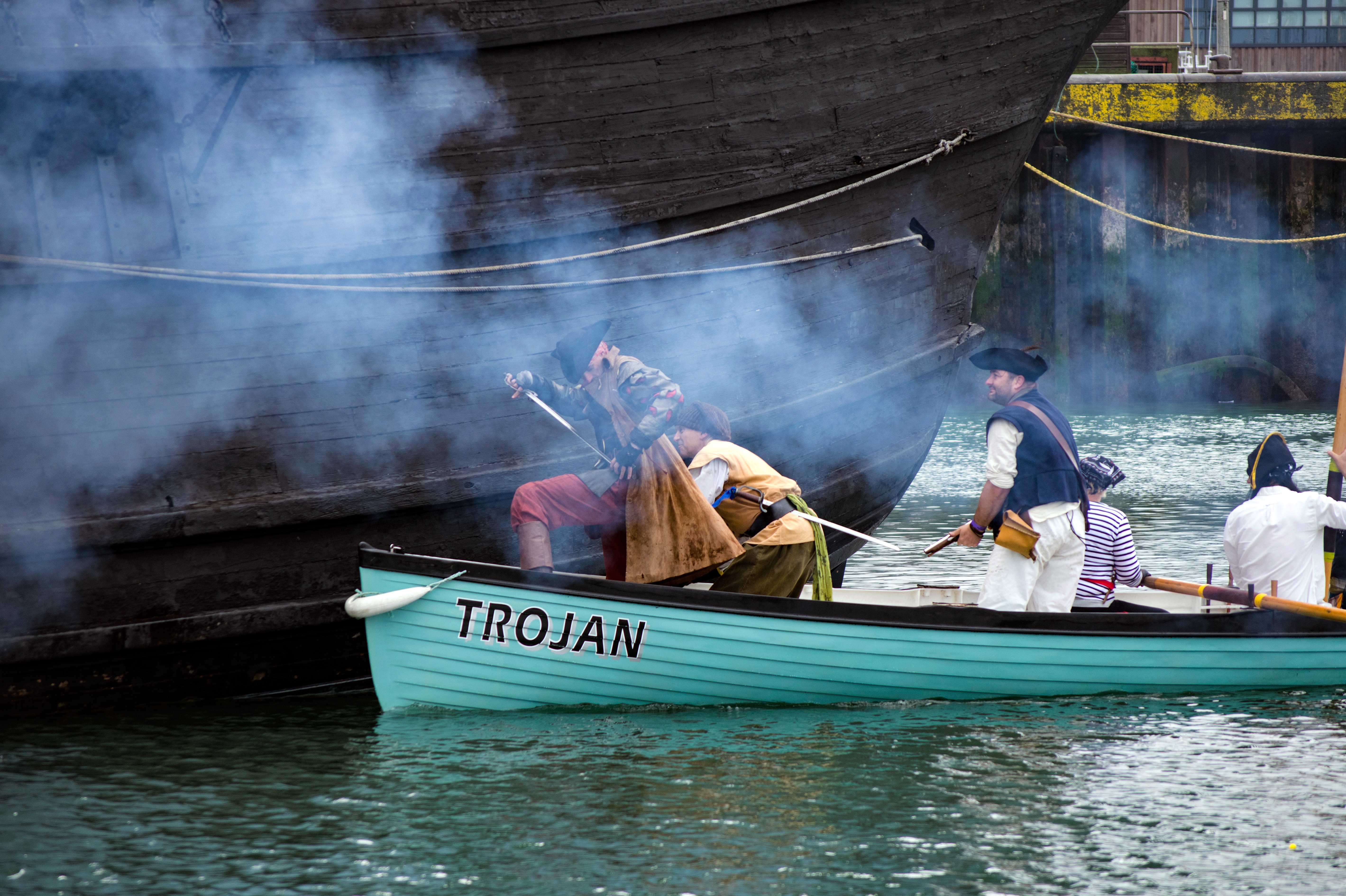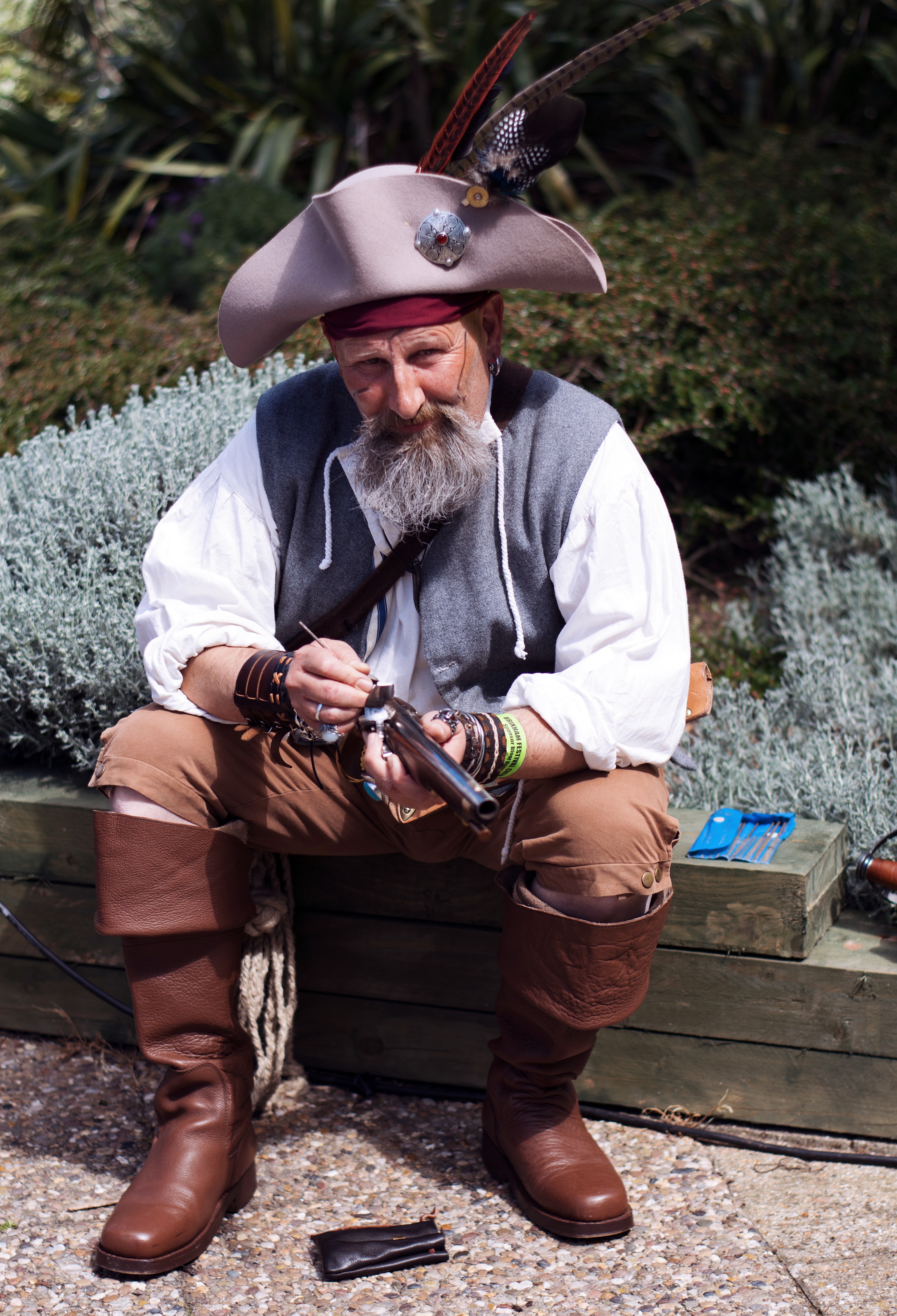 As part of the Pirate Festival, we are treated throughout the day to a number of firings of both cannons and muskets. This year at 11.00am the first of the firings began. Below is a shot of the musketeers reloading the cannons.