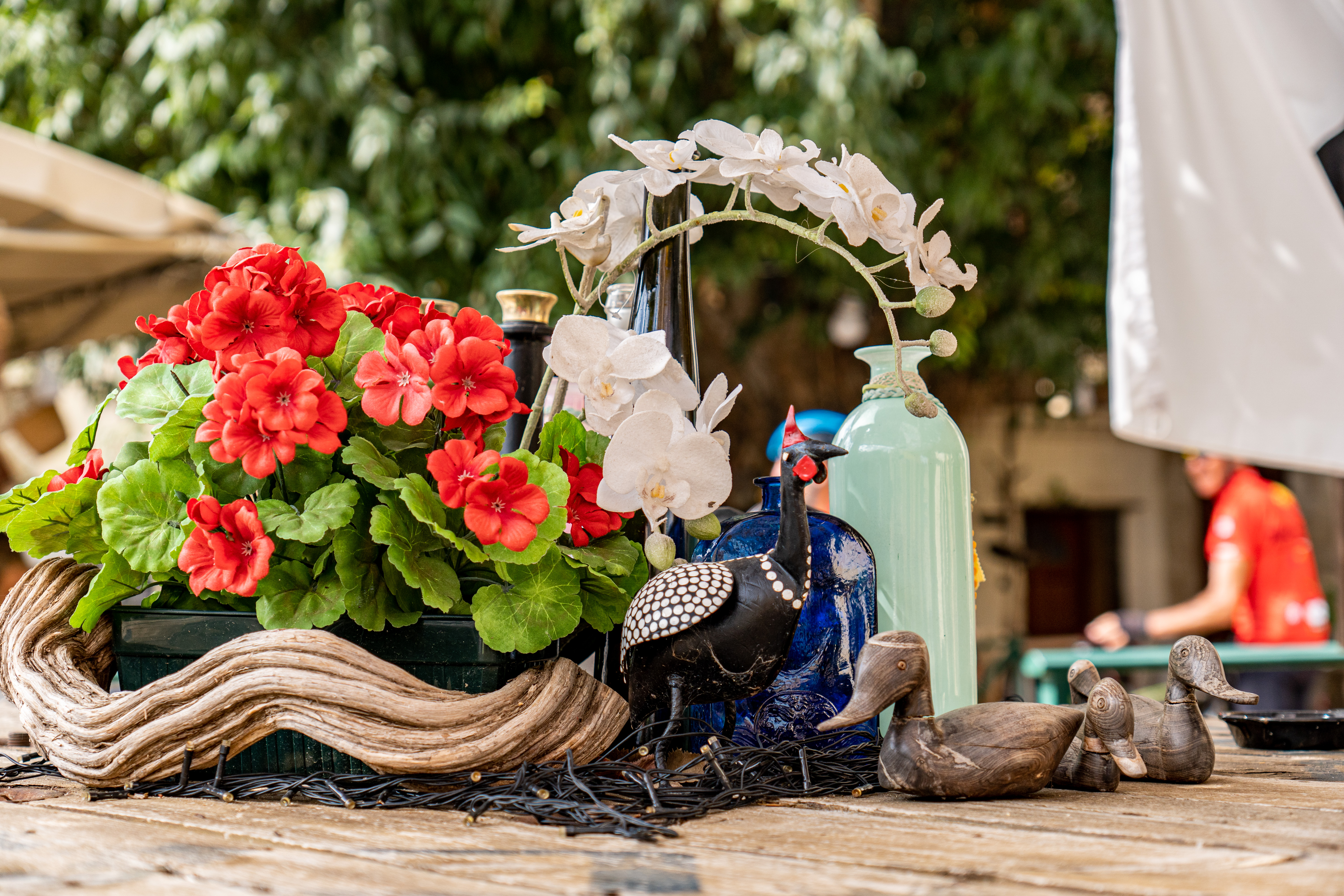 8:00 Uhr pfeifen uns die roten Milane aus den Federn. Es gibt hier erstaunlich viele davon, die permanent über dem Eichenhain kreisen. Wir frühstücken und schmieden Pläne. Heute soll es mal zur Abwechslung eine Radtour werden. Komoot wird befragt und eine Tour erstellt, auf gehts. Im ersten Ort den wir erreichen haut das Schicksal uns, also speziell mir ein paar hinter die Ohren, mein Bike hat einen Platten. Nach ersten Diagnosen stellt sich heraus, dass ich mir einen fetten Dorn ein paar Kilometer bergab eingefahren habe. Was haben wir natürlich nicht mit? Einen Ersatzschlauch oder Flickzeug - das werden wir wohl uns jetzt mal zulegen müssen. Achja - immer diese Anfänger. Also beschließen wir einer älteren Dame in einem niedlich dekorierten Café am Dorfplatz gegenüber der Kirche einen Saft und ein „Wutbier“ abzukaufen. Ich pumpe den Reifen auf der Rückfahrt noch dreimal auf und wir erreichen zum Glück, ohne schieben zu müssen, den Campingplatz. Bikes in den Kofferraum und schweren Herzens gehen wir an den hübschen Pool am Campingplatz. Hier ist fast keiner, ausser der Milane die über uns kreisen und die Sonne.