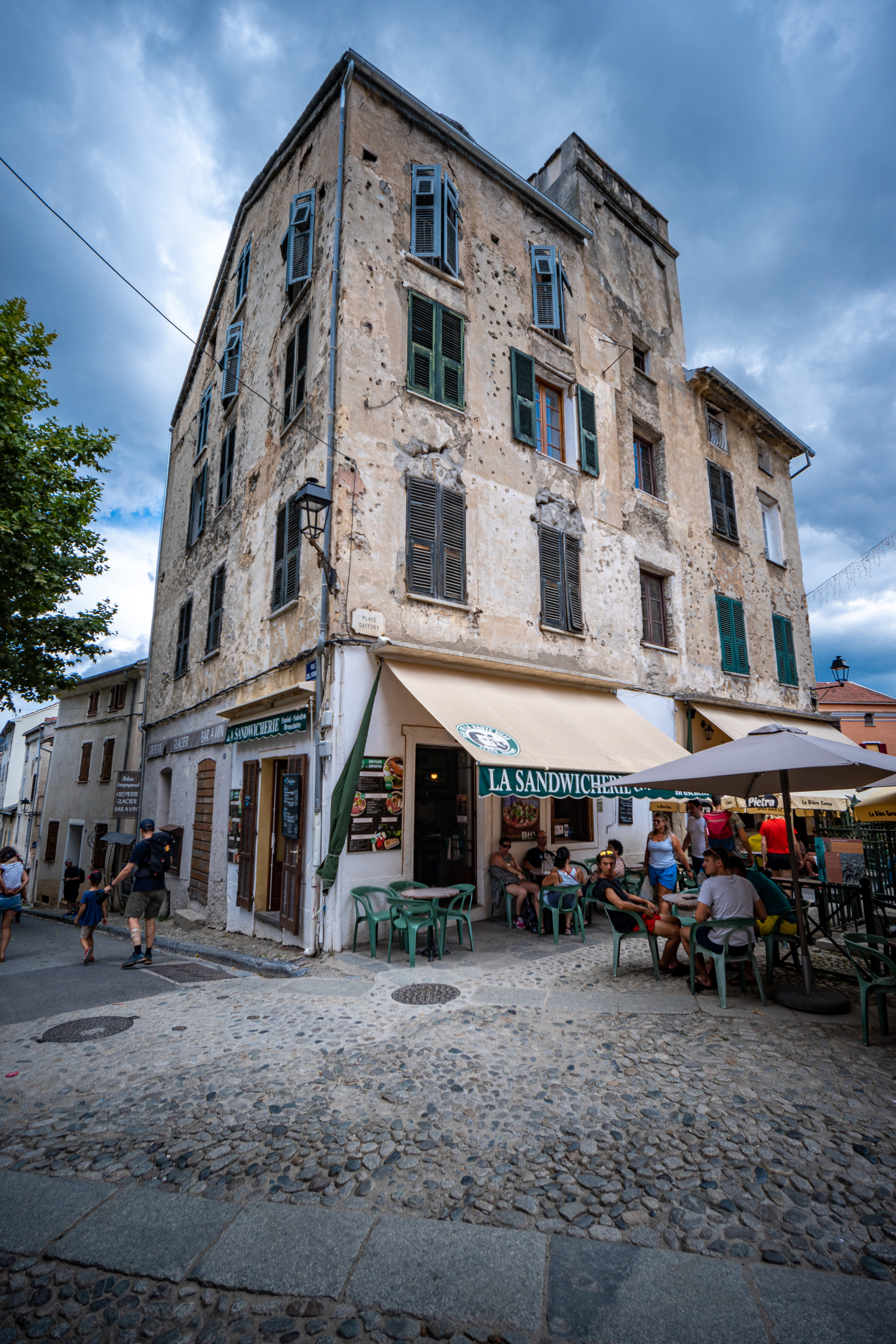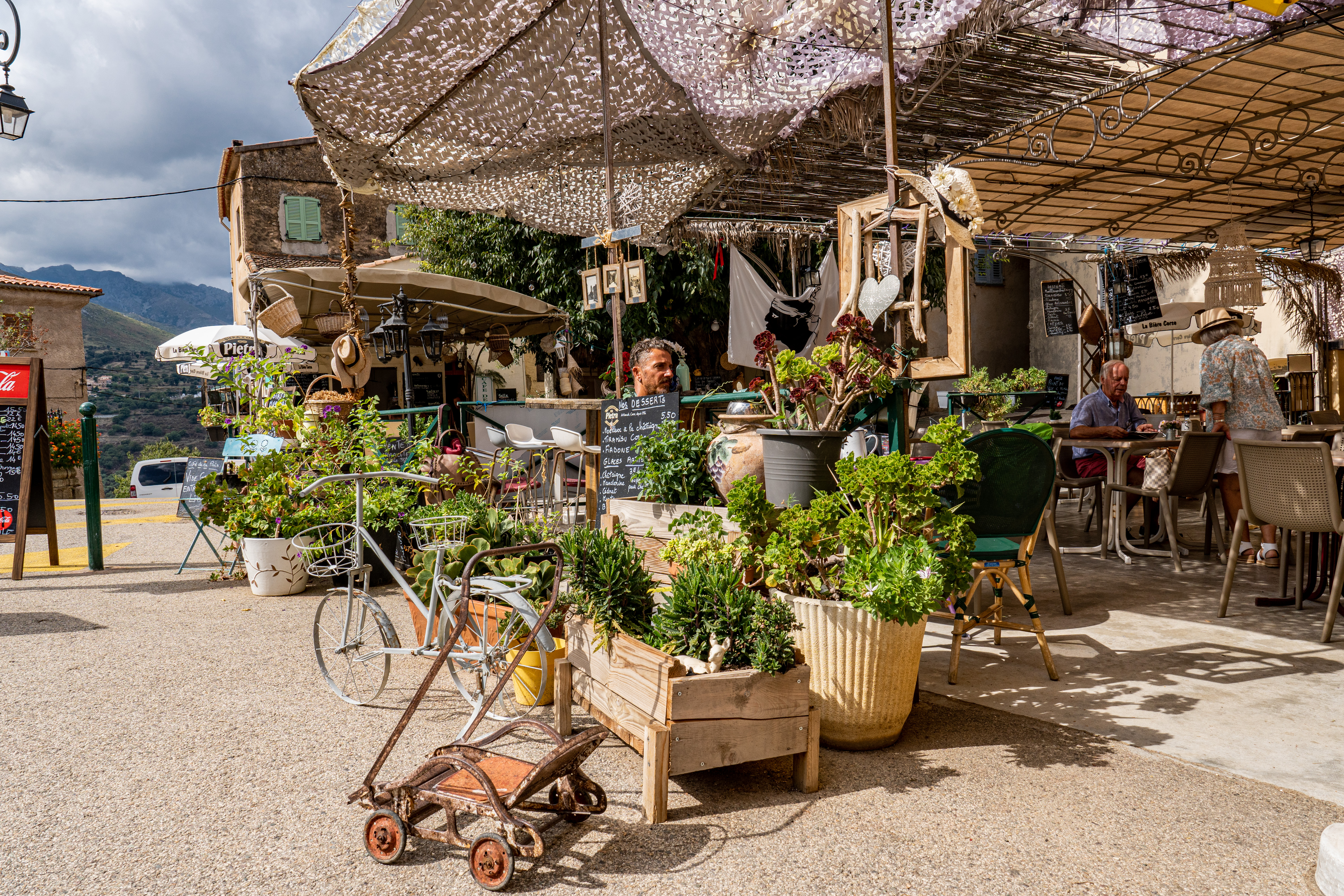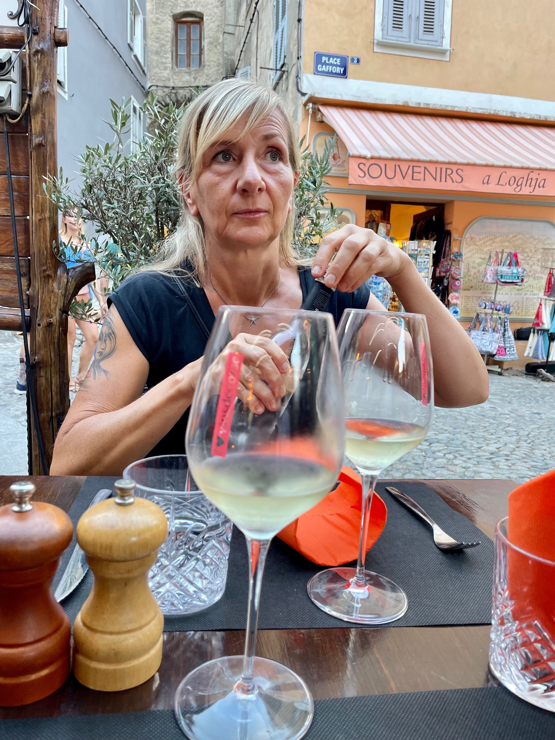 Auf 18:00 machen wir uns frisch geduscht und ordentlich hungrig auf den Weg zurück in die Stadt. Restaurant öffnet erst 19:00 Uhr, also noch ein wenig bummeln. Pünktlich stehen wir am „U Campanile“, es füllt sich schlagartig, scheint wohl gut zu sein. Wir gönnen uns eine kleine Flasche corsischen Wein und nehmen, weil wir super neugierig sind jeder das corsischen Menü (á 23,-€/Mensch), nur in unterschiedlichen Ausführungen. Katja bevorzugt eher die vegetarische Version, ich komme nicht am Wildschwein vorbei. Wir sind pappsatt und uns gefällt die lokale Küche sehr.