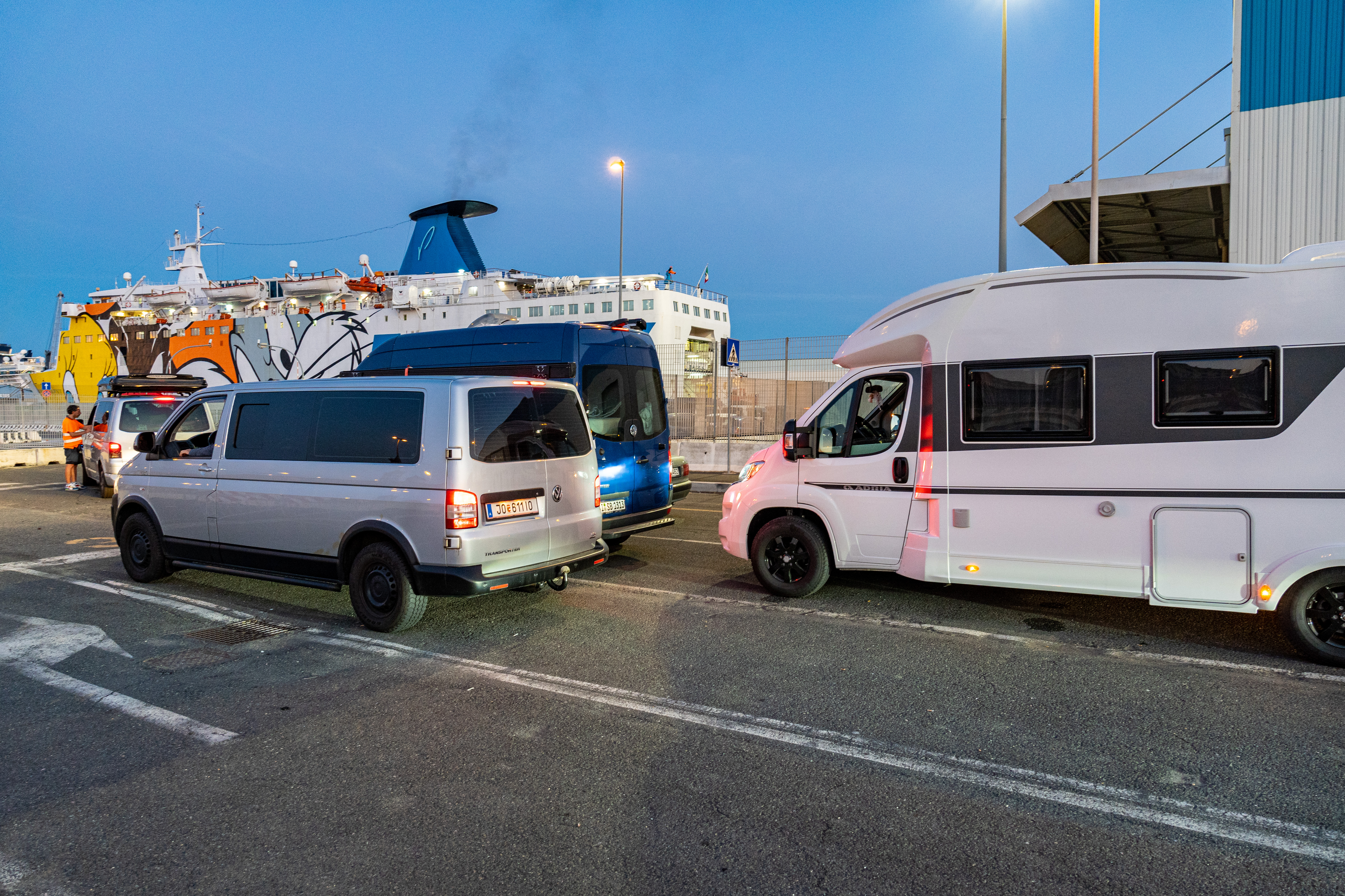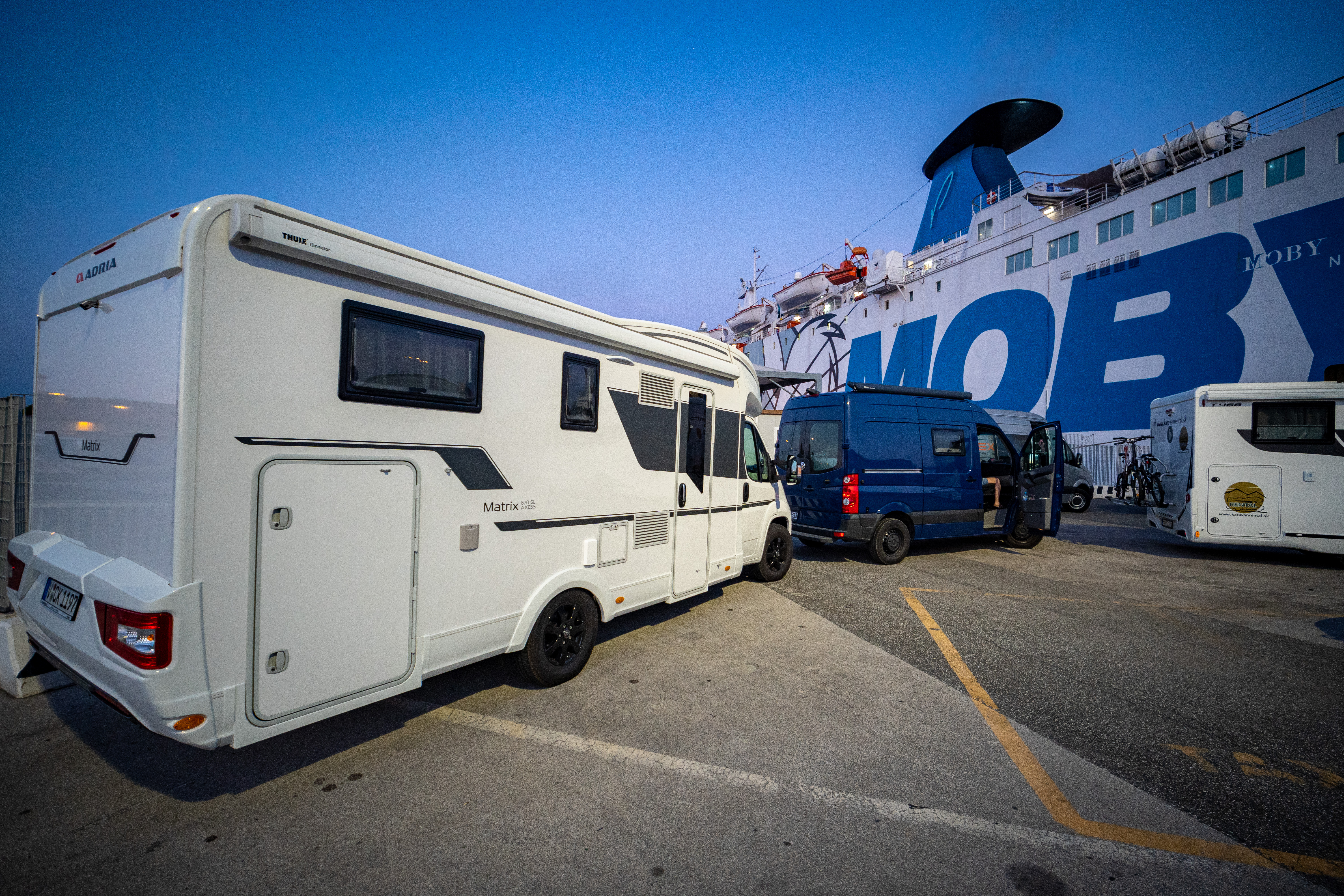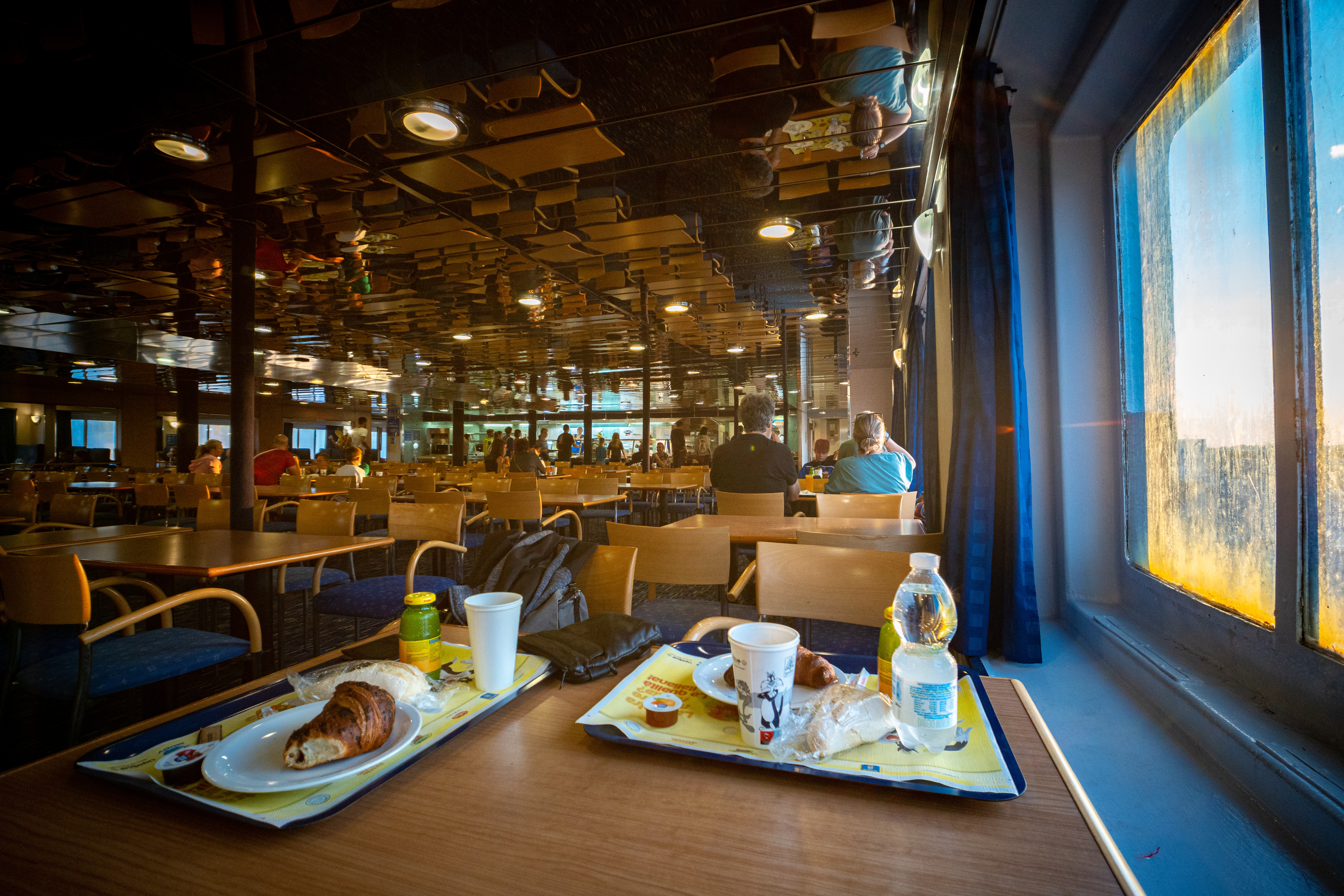 Wir haben relativ gut aber doch kurz geschlafen. 05:45 Uhr klingelt der Wecker. Die Fähre ruft und die wollen wir nicht verpassen. CheckInn ist 06:30 Uhr - wir sind ganz aufgeregt, ist es doch unsere erste große Überfahrt mit dem Wohnmobil. Wir stehen auf Deck 3 fast in Polposition wenn wir in Bastia ankommen. Wir nehmen unsere faszinierendes Morgenmenü, dass wir uns bei der Fährbuchung gegönnt haben entgegen. Labberiges Brot und Croissant mit einem Kaffe der halbwegs in Ordnung geht. Das Brot ist mit einer Plastikschalenmarmelade zu bestreichen, die widerlich nach Zucker und sonst nix schmeckt. Zum runterspülen noch einen Orangensaft, sicher nicht frisch gepresst. Naja, auf der Rückfahrt buchen wir das lieber nicht nochmal.