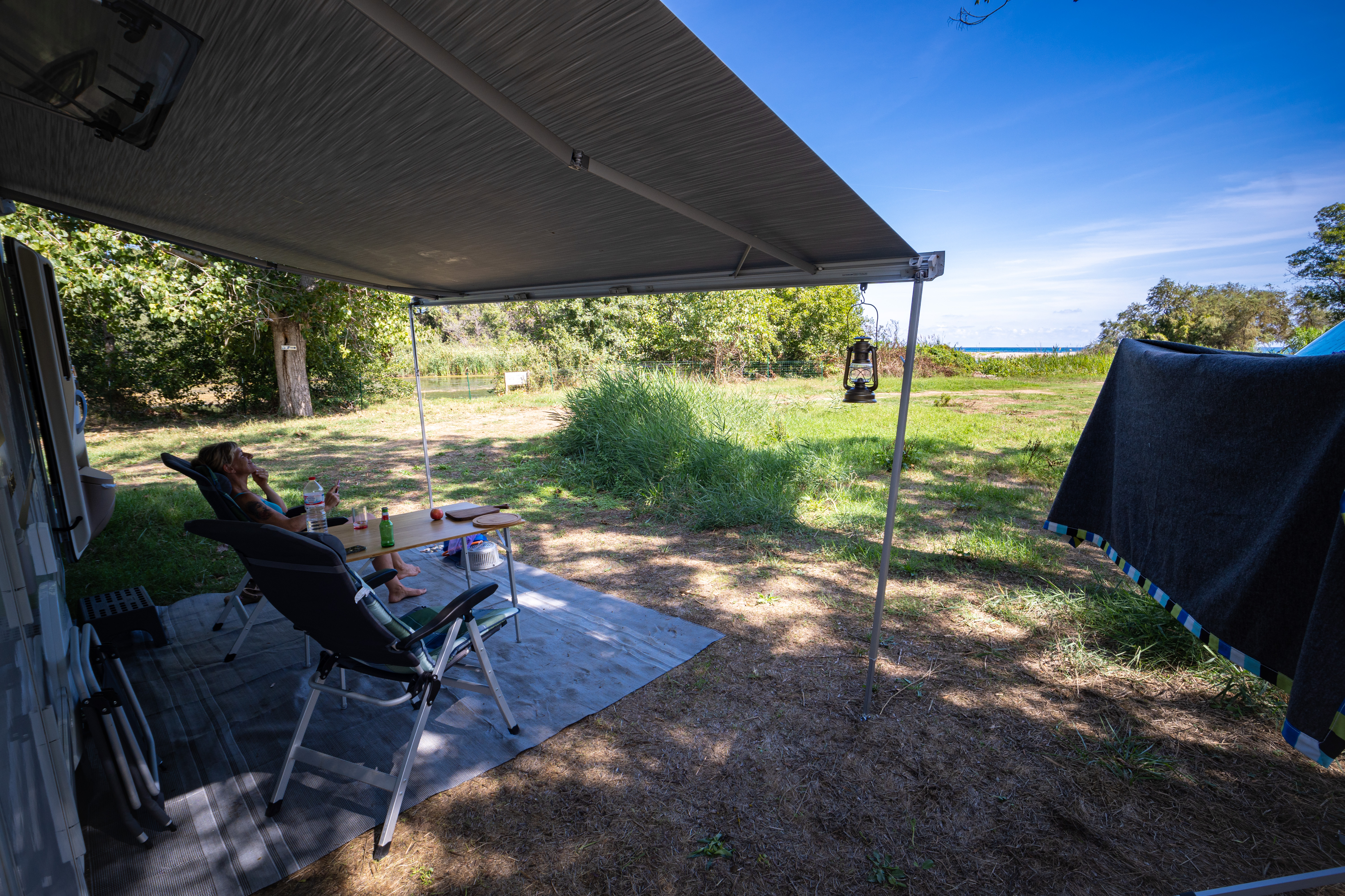 Wir haben gut auf dem gemütlichen Platz am Meer geschlafen, die ersten Mückenstiche haben wir uns gestern auch schon eingefangen, unser Stellplatz ist direkt am Fluss - hätte man ahnen können. Natürlich haben wir auch nix dabei um die Biester im Zaum zu halten. Da heute ja Wochenende ist mach wir mal direkt garnix. Außer dass wir den ganzen Tag am Meer herumlungern und uns sonnen. Urlaub eben.