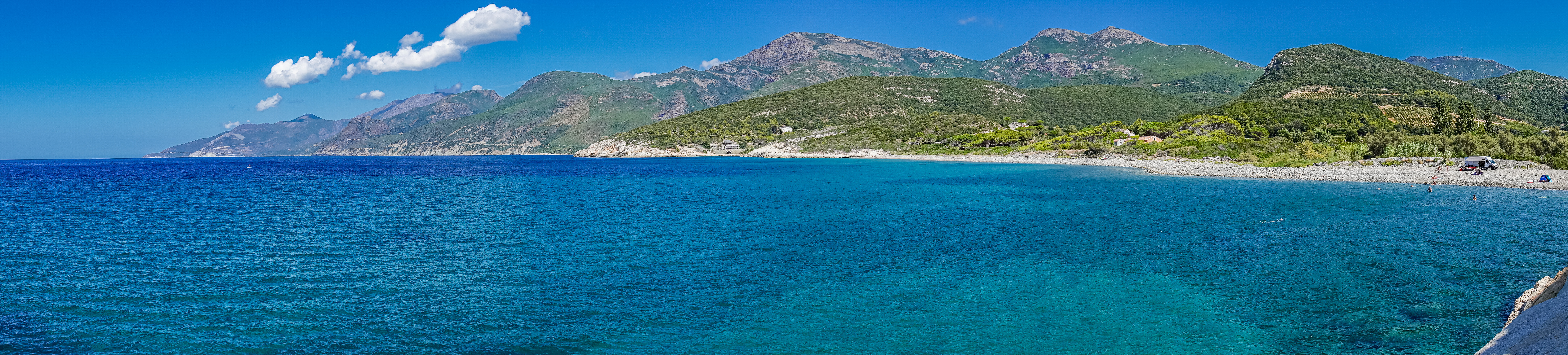 Eine Bluse und ein Kleid für Katja schlüpfen uns unterwegs noch in die Einkaufstüte, gleich neben das frische Brot und Baguette. Wir verlassen Calvi und schaffen es direkt bis Algajola, keine 9 km weit, Strand ruft. Wir baden im Meer und sonnen uns im goldgelben Sand. Unser Weg führt uns über L‘île-Rousse weiter nach Lozari, hier verlassen wir die T30. Katja hat einen kleinen Campingplatz in den Bergen ausfindig gemacht, unter Eichen mit Pool und fairen Preisen - 26,72€/Nacht. Angekommen.