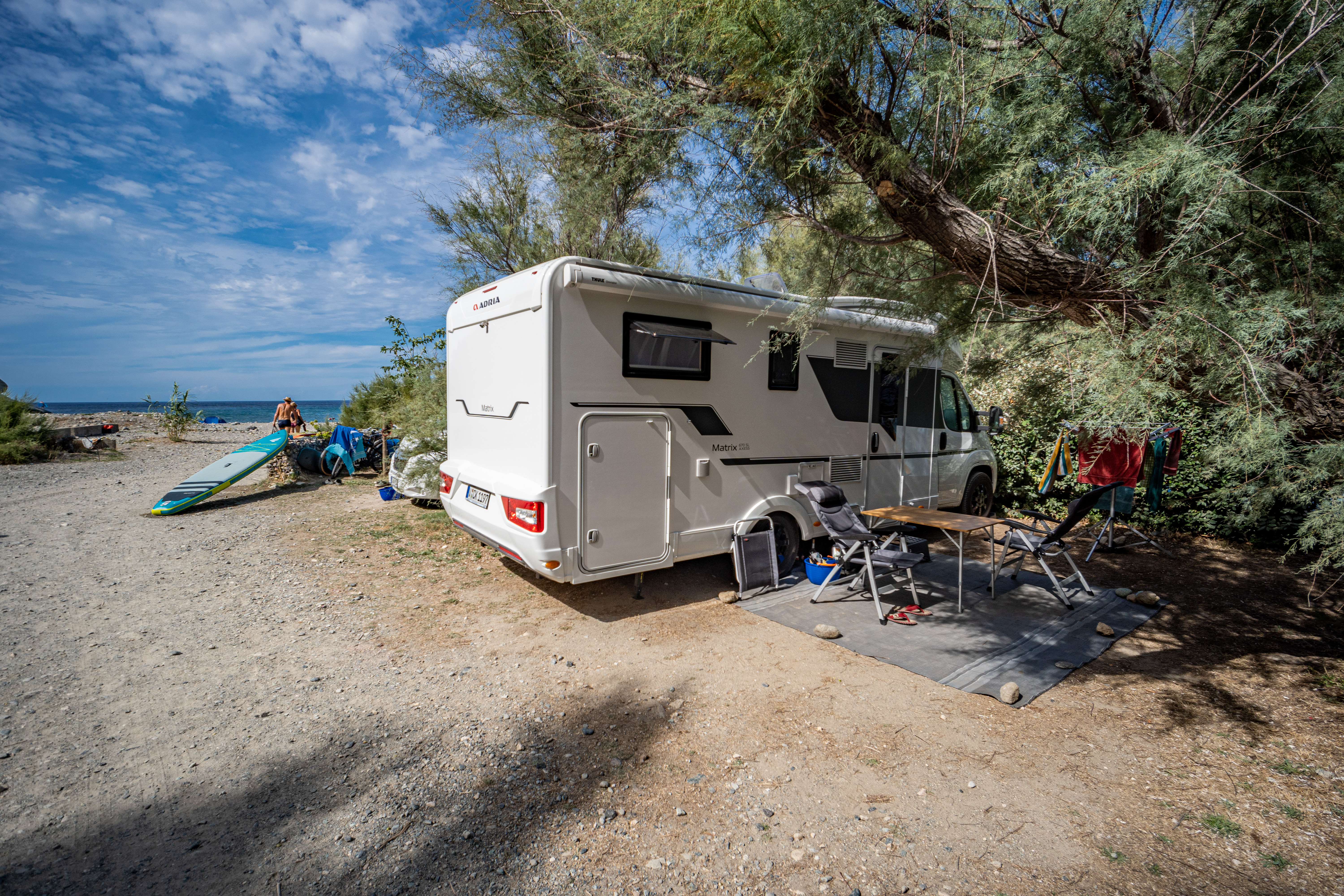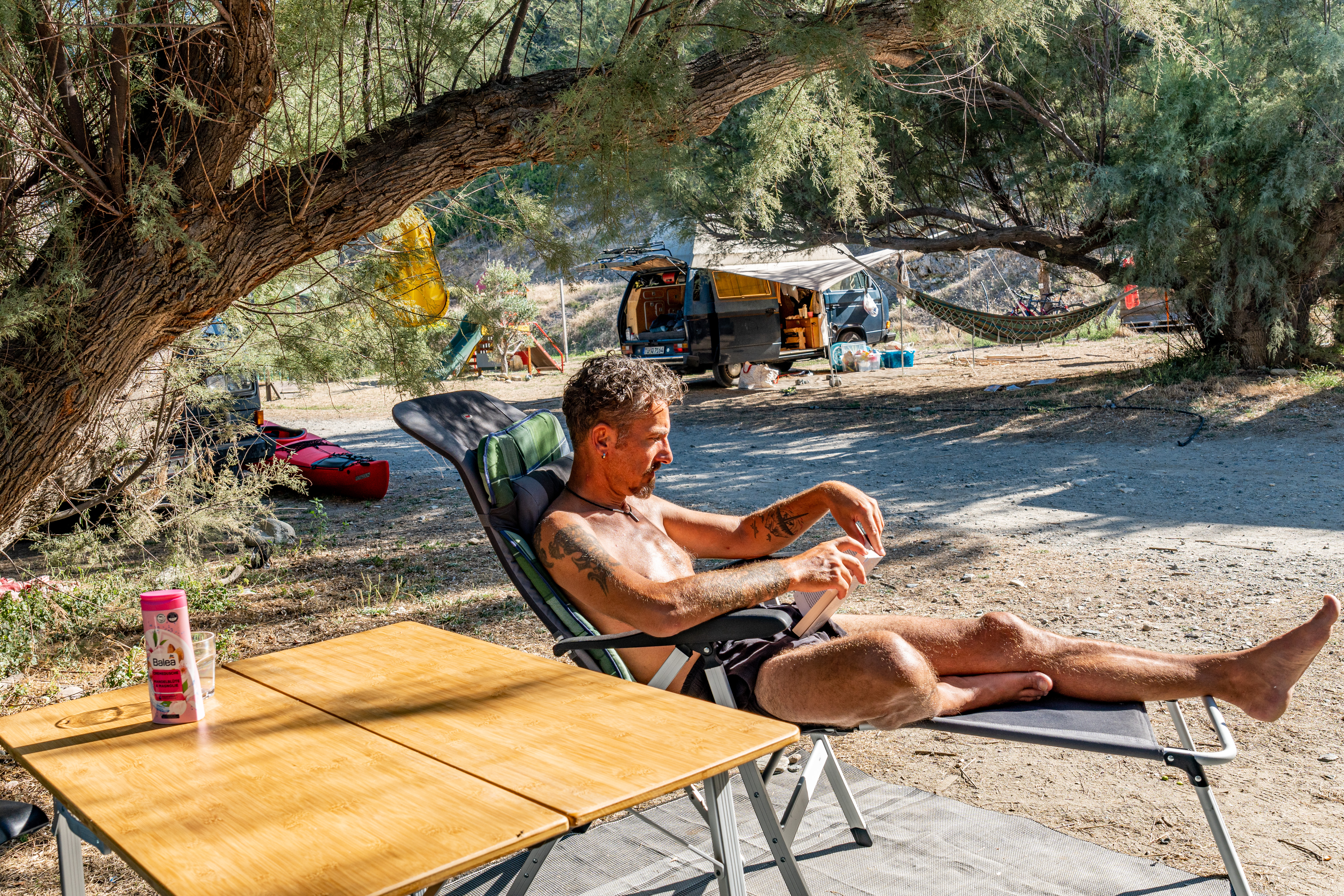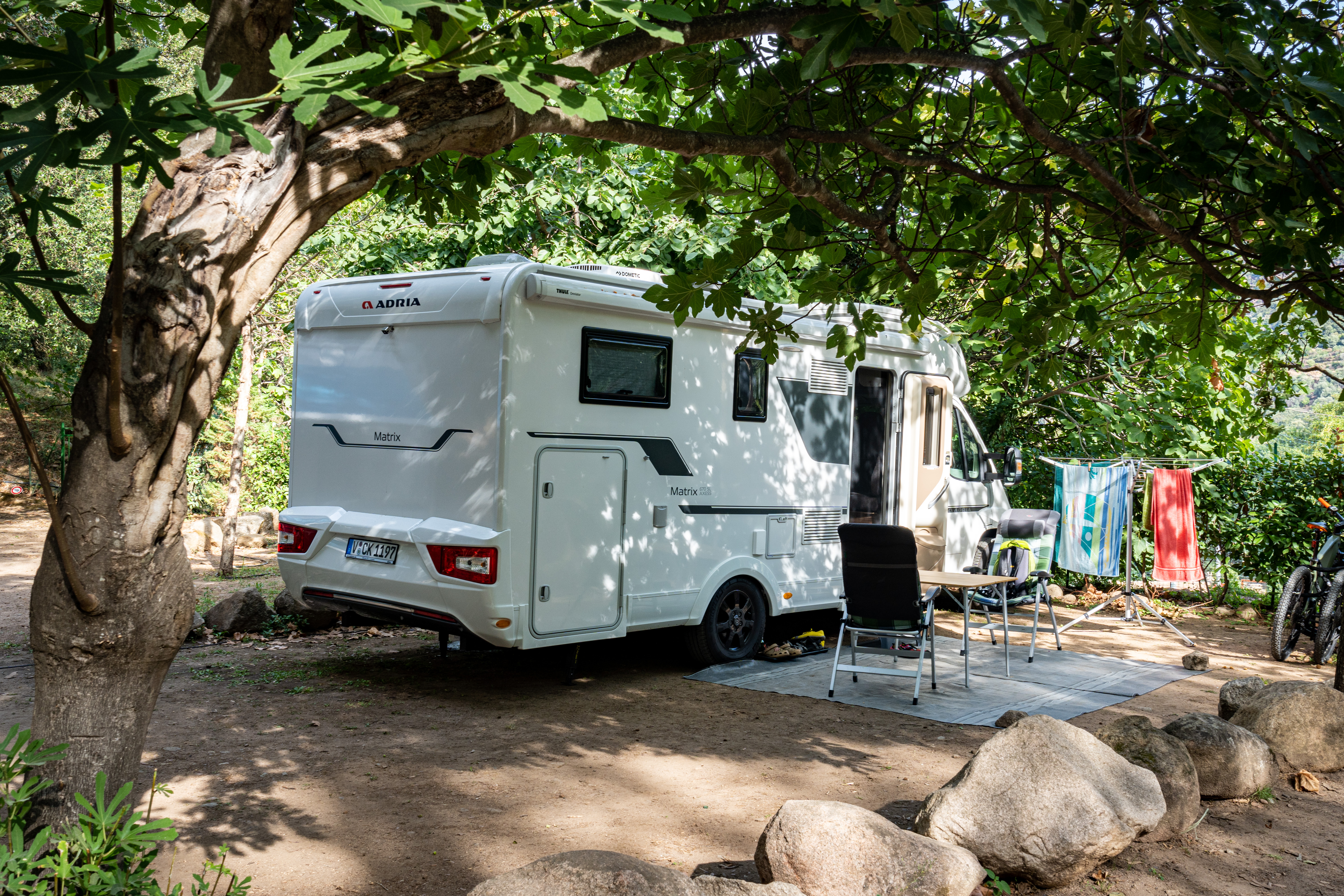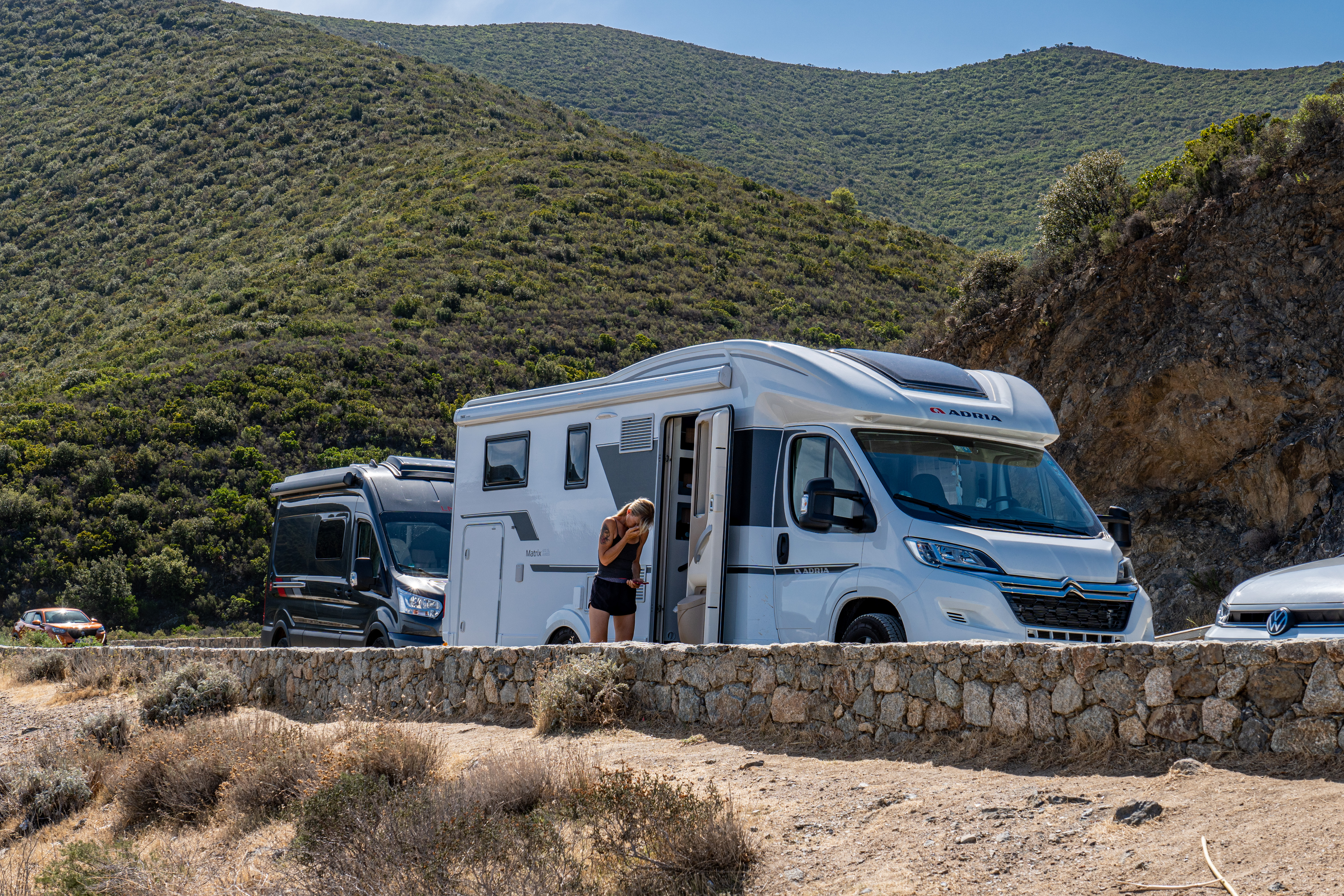 Wir fahren zum Camping de Bravone am gleichnamigen Fluss. Der Platz ist etwas „Oldschool“, die Duschen und sanitären Anlagen etwas in die Jahre gekommen. Man kann sich seinen Platz selber wählen, es gibt nicht diese spiessigen Parzellen, das finden wir schön. Der Strand ist 50 Meter von unserem Stellplatz entfernt, auch cool. Alles in allem - Camping bisschen wie früher, eben uriges Draussensein.