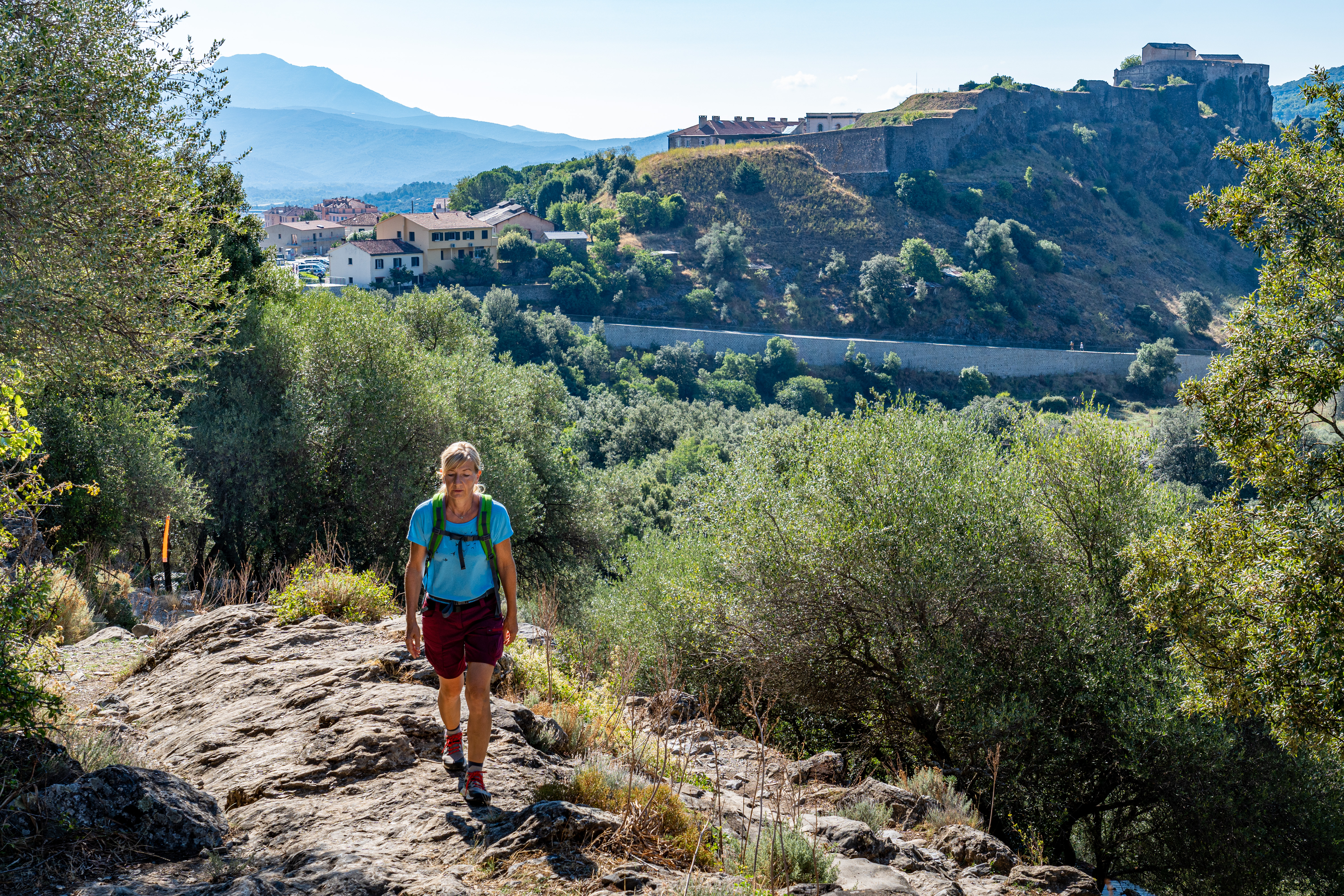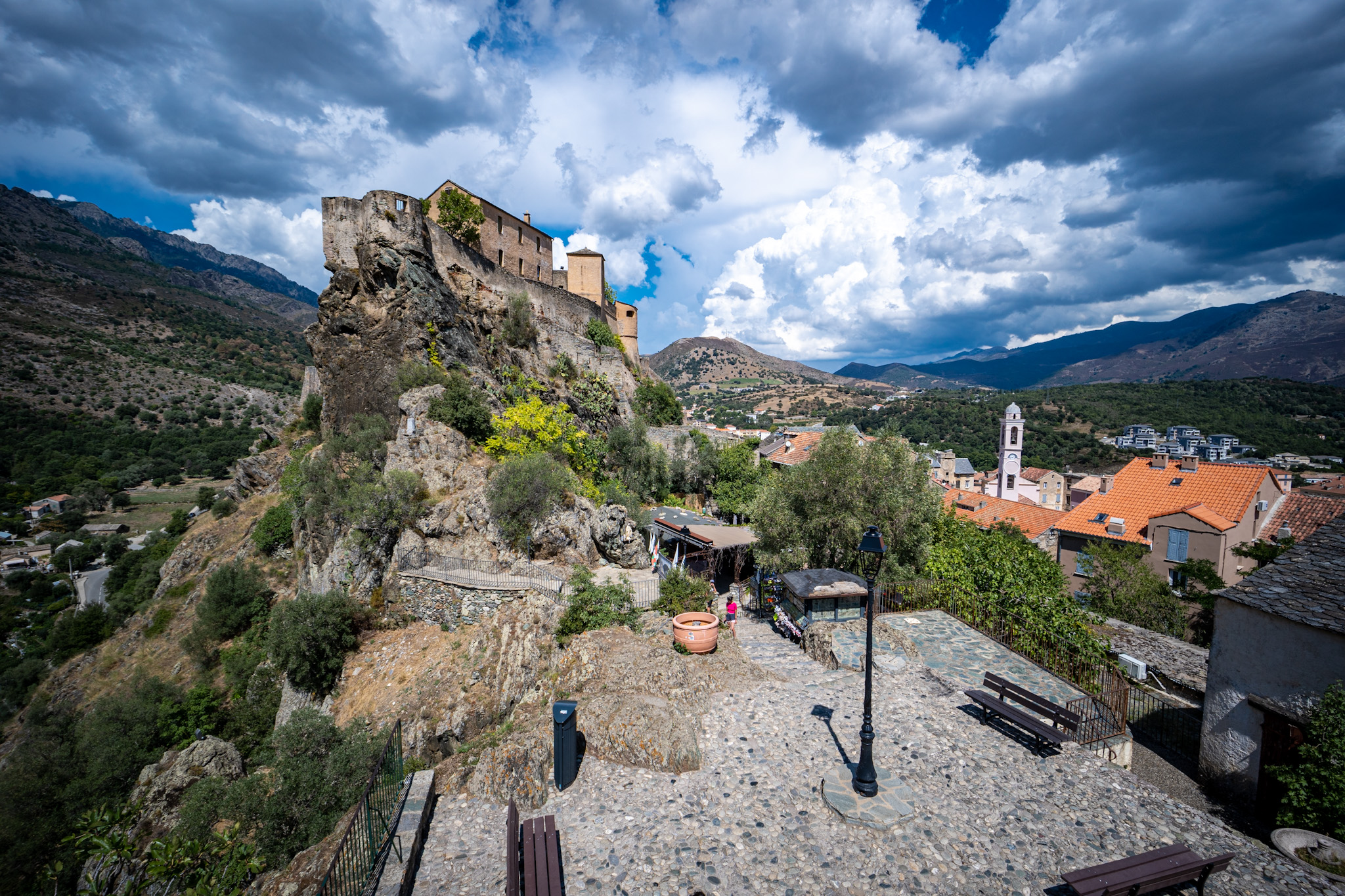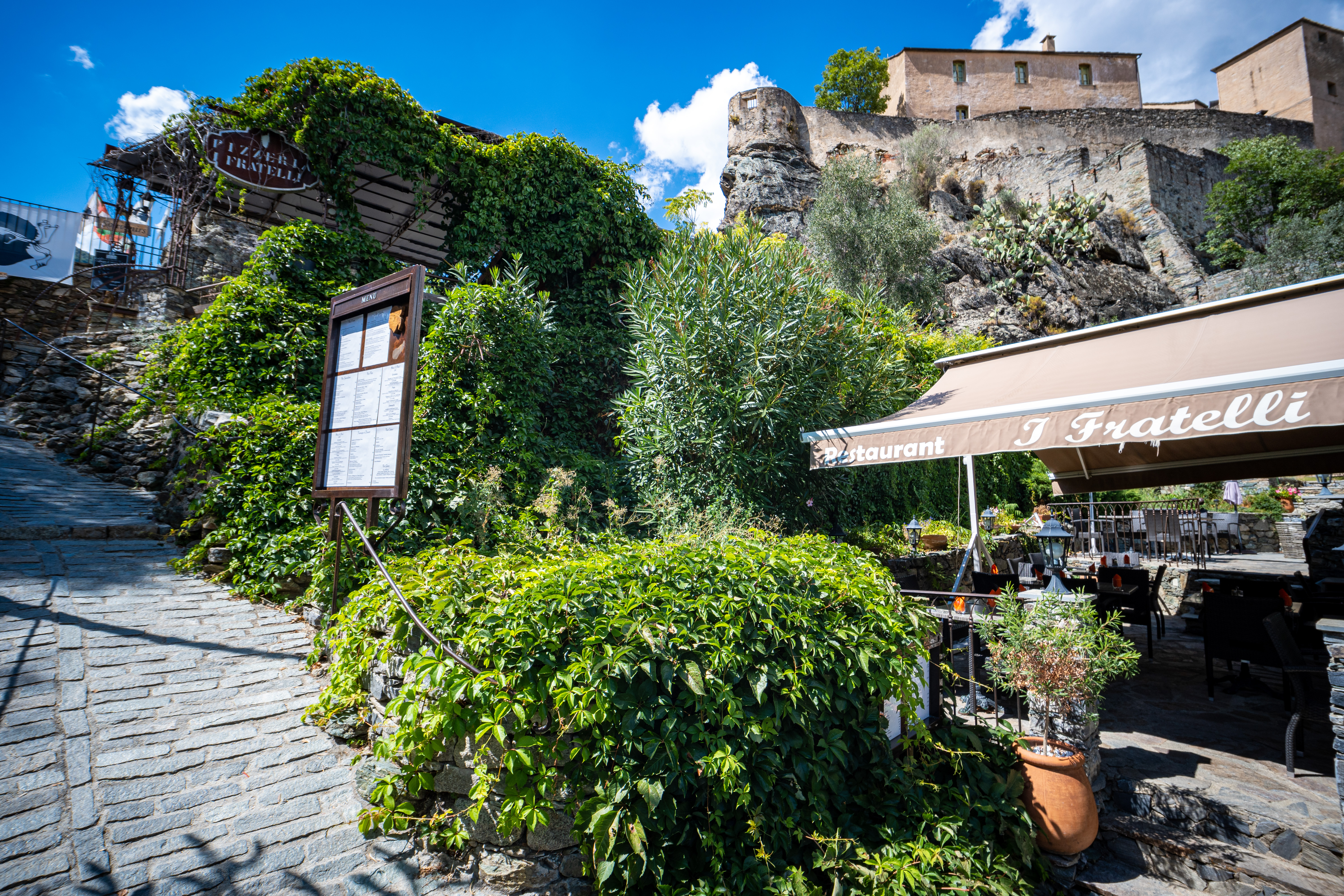 Wir essen was kleines zu Mittag und machen uns bei 32°C auf den Weg die Zitadelle zu erkunden - und natürlich auch den Ort Corte. Eine wirklich tolle kleine alte Stadt, mit engen kleinen Gassen, steilen Treppen und unzähligen Café´s und kleinen Restaurants. Das nette Fräulein an der Campingplatzinfo hat uns ein Restaurant empfohlen - das „U Campanile“ - haben wir auch gefunden und beschließen am Abend dort Essen zu gehen. Erstmal müssen wir zurück, Gewitter zieht auf und am Camper sind alle Fenster offen.