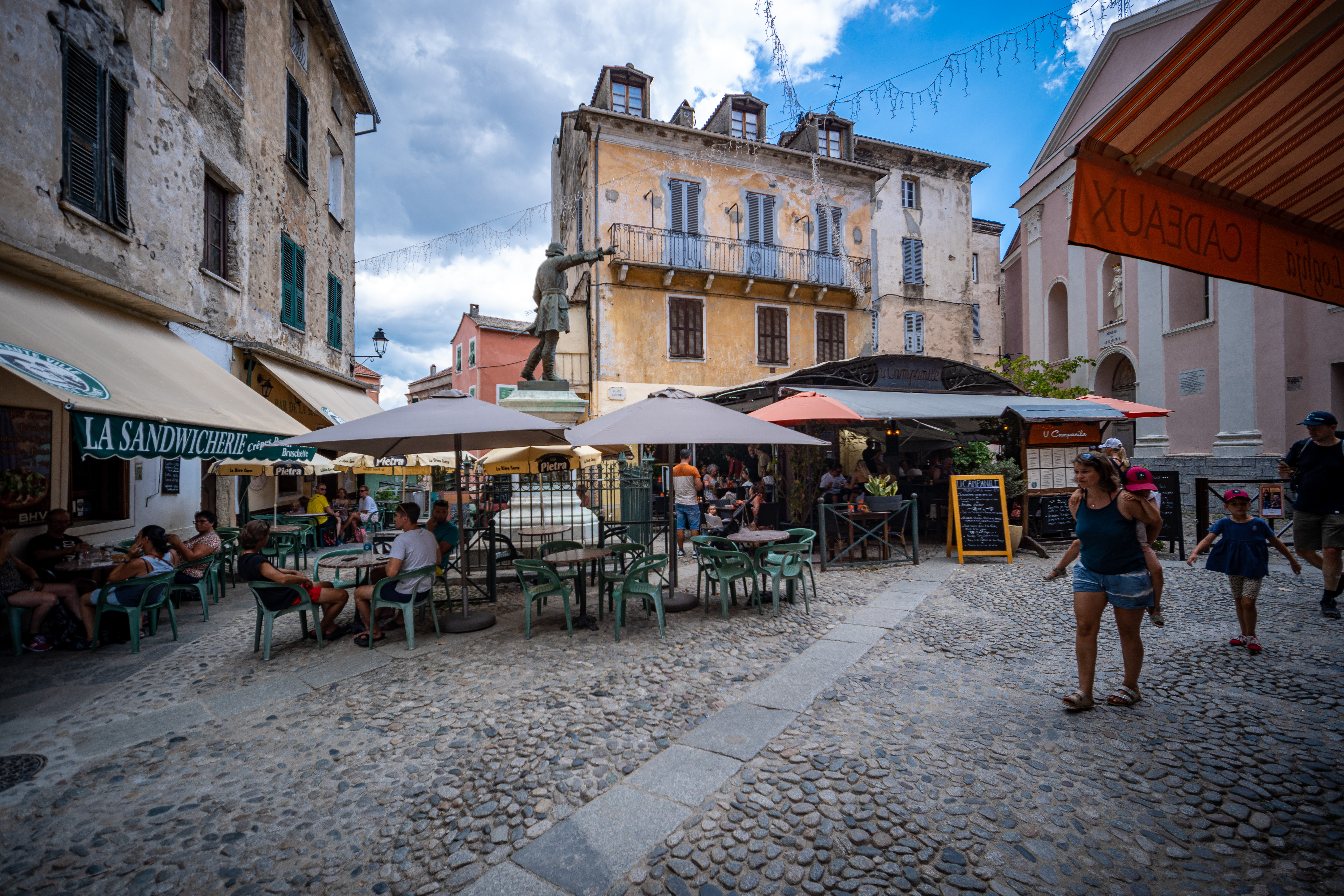 Uns zieht es weiter - nur die Mücken sind traurig dass wir abreisen. Das Frühstück ist heute zeitig, denn wir wollen auf unserer Tour auch ein bisschen was sehen. Da Ziel des heutigen Tages ist Corte. Wir fahren die Route de Cort, die T50. Wir können hier schon einmal probieren wie sich die engen Straßen durch Schluchten so anfühlen. Gegen Mittag erreichen wir das Bergdörfchen Corte mit seiner beeindruckenden Zitadelle auf dem Berg. Der Campingplatz unserer Wahl ist der gemütlich und kleine Camping Restonica am gleichnamigen Fluss.