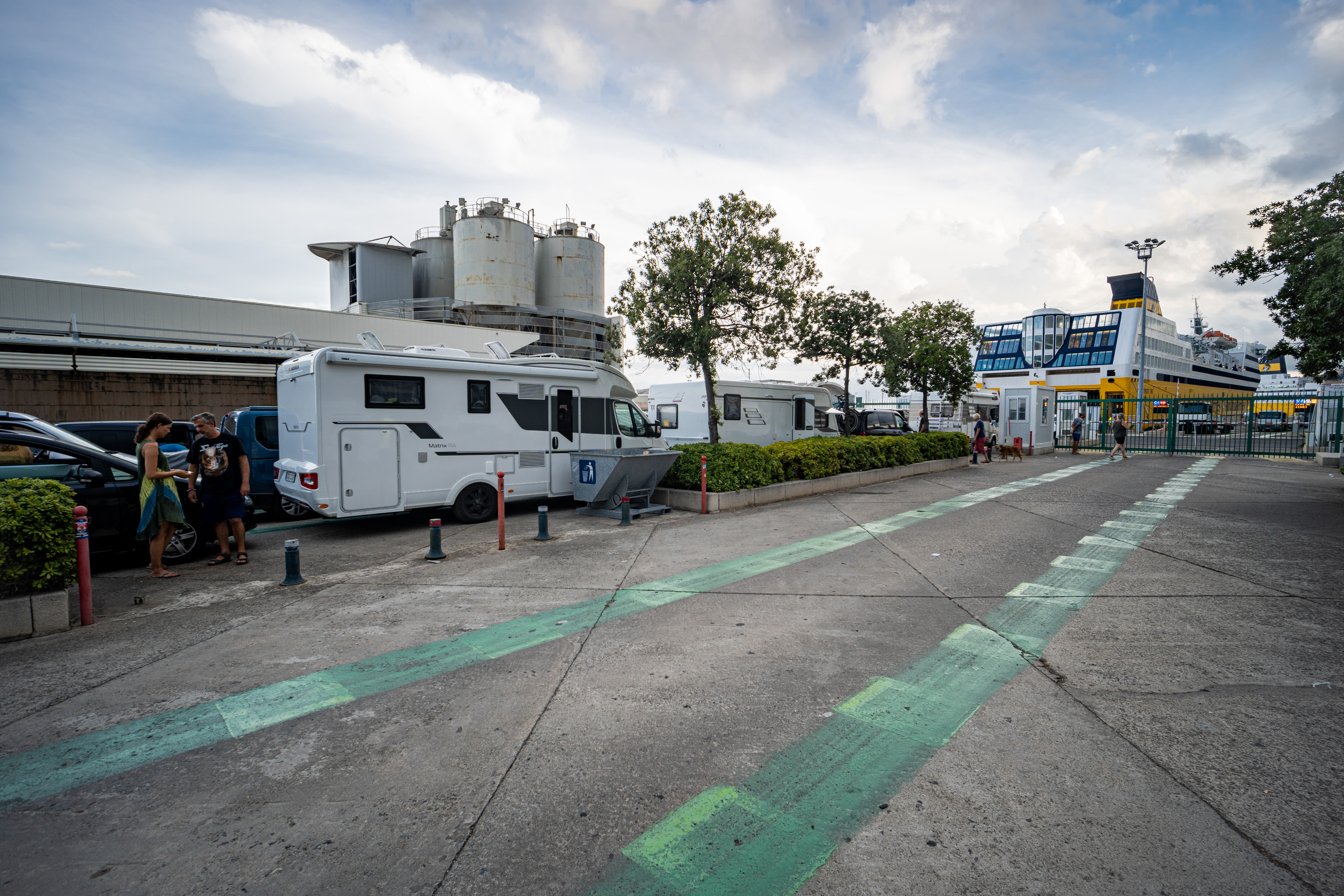 Es ist unglaublich warm mit 32°C, was bietet sich da an? Genau ein gemütlicher Stadtbummel durch das brütend warme Zentrum von Livorno. Die Stadt ist unglaublich laut sowie nicht besonders raffiniert, da haben wir in Italien schön schönere Städte gesehen. Naja - ist ja zum Glück nicht unser Urlaubsort. Katja nascht ein Gelati, wir schauen noch am Hafen vorbei um die Lage für unsere morgige Einschiffung zu peilen. Wir sind im Bilde und für morgen super vorbereitet. Abendessen war heut mit Schnittchen und Tomate, bei der Hitze hat man eh kaum Hunger. Die Nacht ist laut, wir stehen an einer vielbefahrenen Straße, wir kontern mit Bier und viel Müde.
