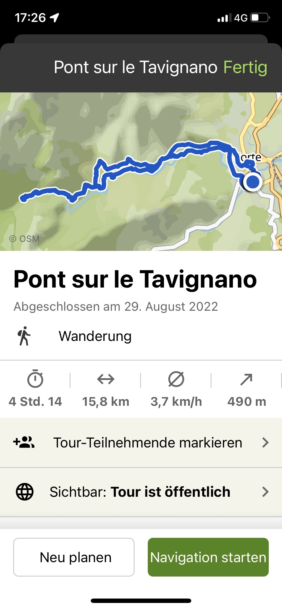 Wir stehen zeitig auf, heute ist Wandertag. Wir haben uns ein moderates Ziel in den Bergen ausgesucht, die „Punt sur le Tavignano“- was übersetzt „Brücke über den Tavignano“ bedeutet. Kann soweit stimmen, eine Schlucht ist vorhanden, später am Ziel eine Brücke und ein Fluss ist auch in der Schlucht.