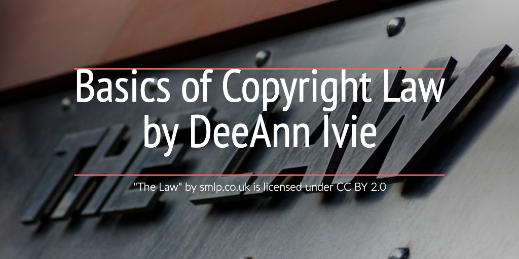 Attributions and License: "The Basics of Copyright Law", licensed CC BY 4.0, is a derivative of the September 2020 Creative Commons Certificate Course by Creative Commons, also licensed CC BY 4.0. DeeAnn Ivie adapted content from the Creative Commons Certificate Course Unit 2 on Copyright Law: 2.1 Copyright Basics, 2.2 Global Aspects of Copyright, 2.3. The Public Domain, and 2.4 Exceptions and Limitations to Copyright, adding it to her website "The Basics of Copyright Law."