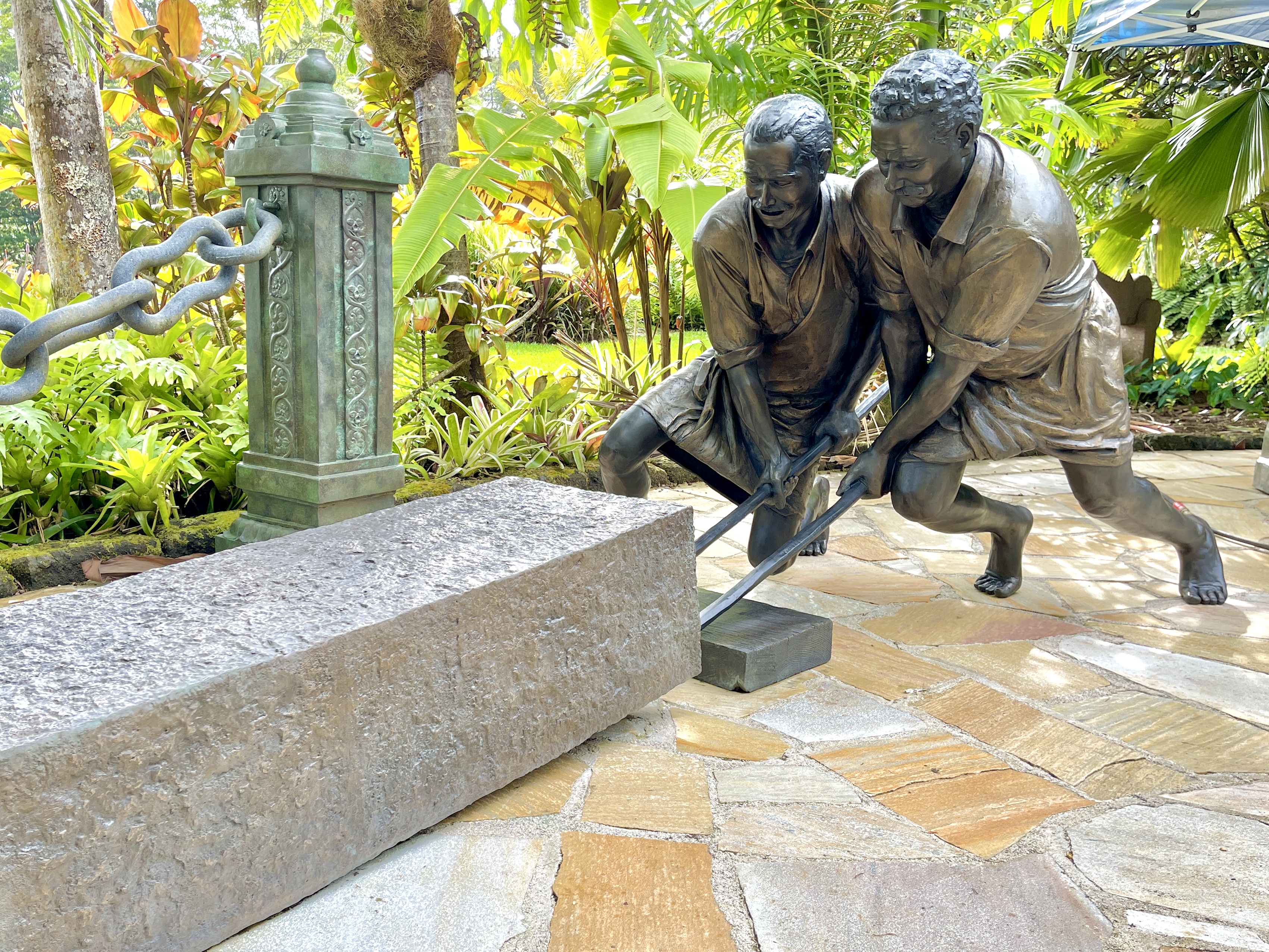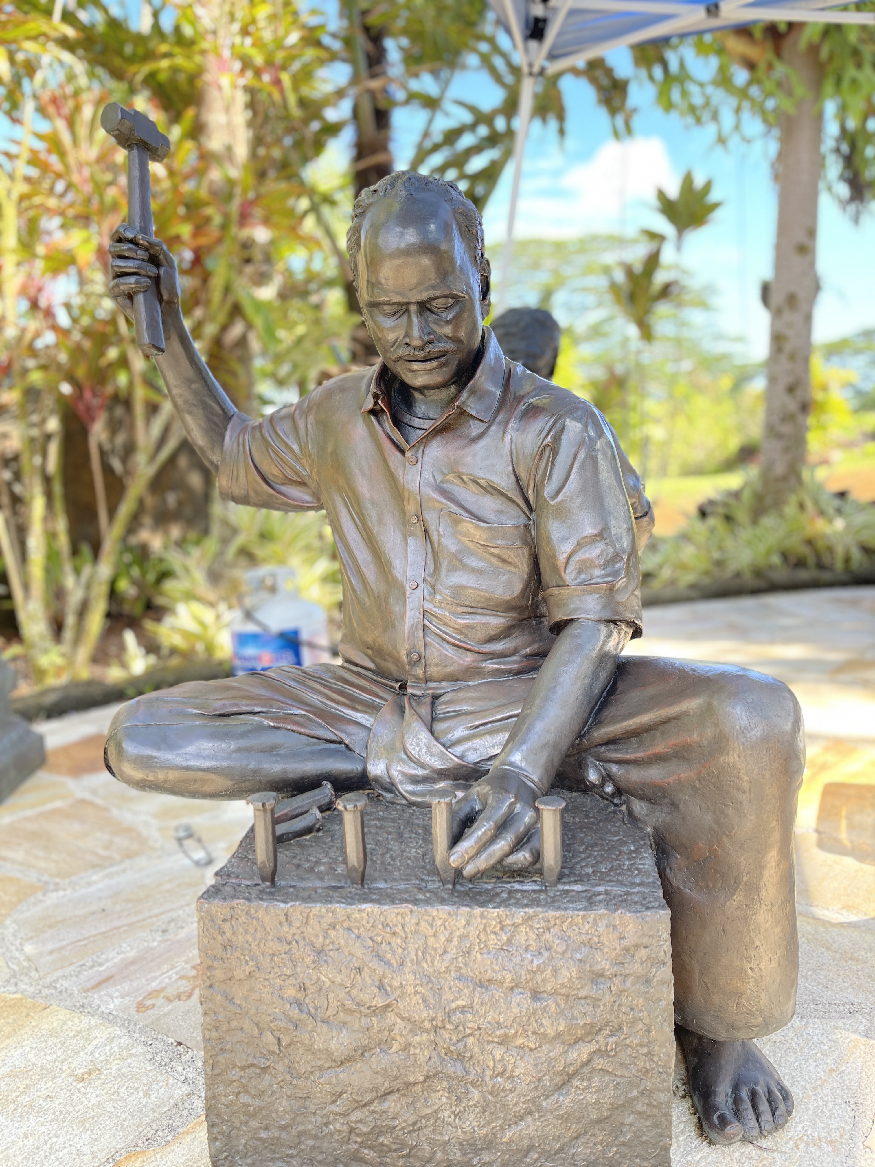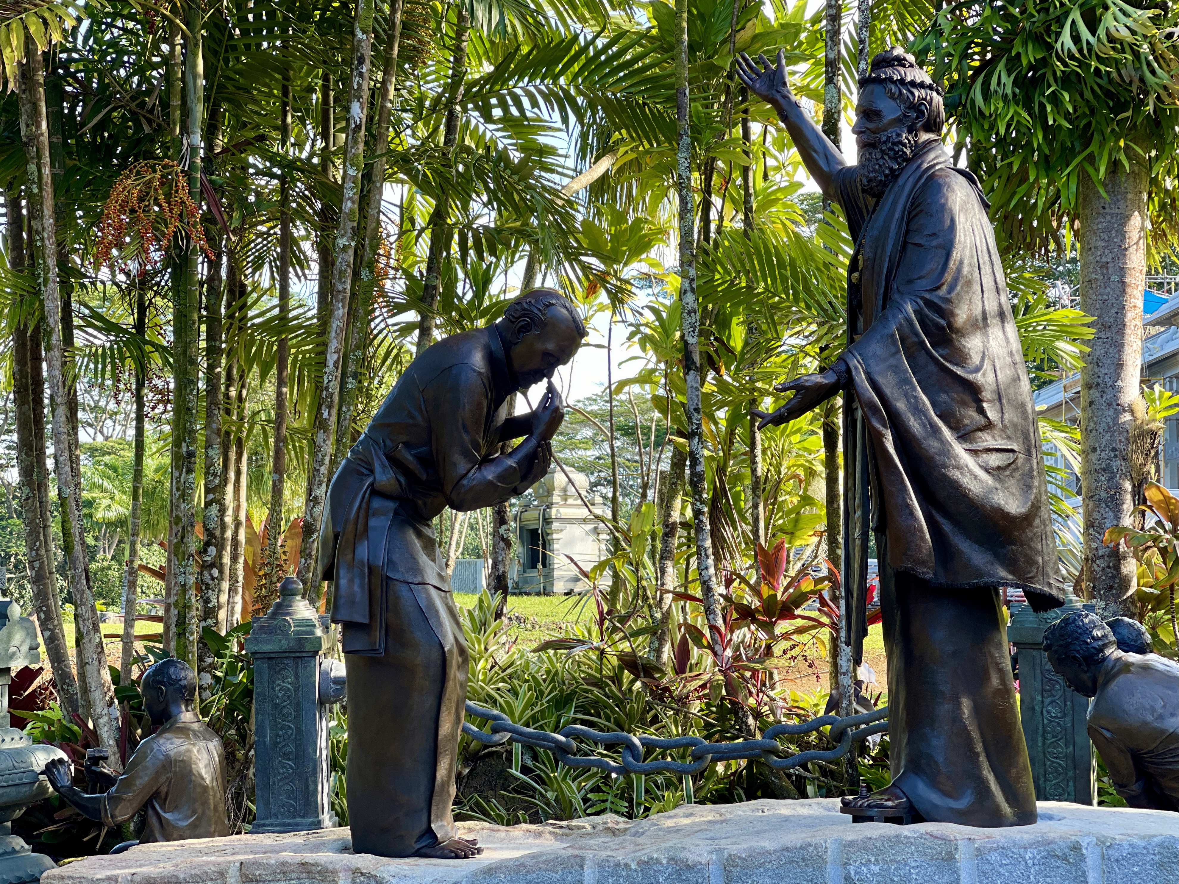 Around 1999, Satguru Sivaya Subramuniyaswami, affectionately known as Gurudeva took note of the sweet sounds the silpis (Indian stone sculptors) were making with their chisels as they shaped the white granite. He realized visitors of the future Iraivan Temple would not be privileged to see this amazing process on the island. So he directed the monks to create a bronze memorial that would depict the ancient technology.
