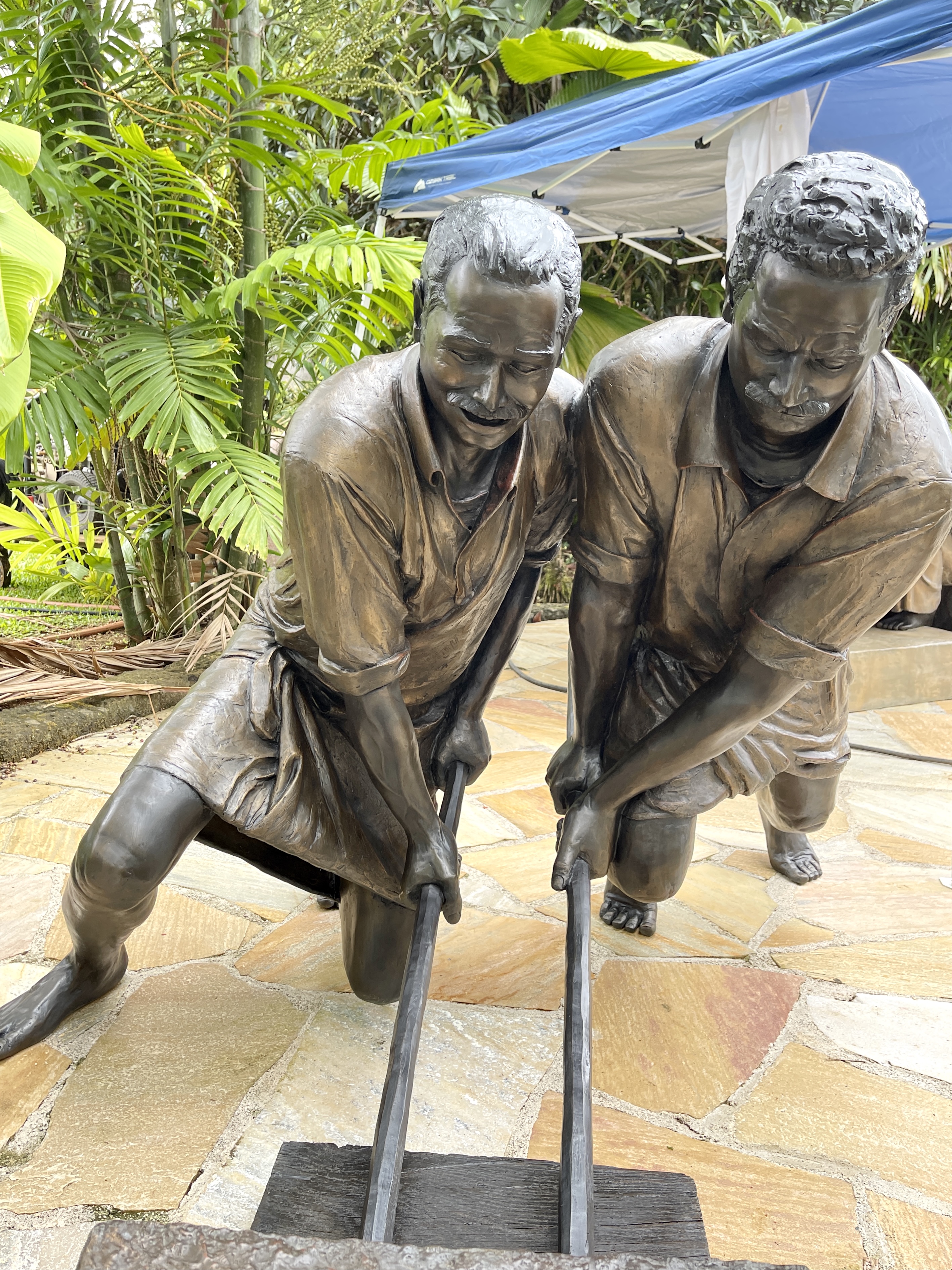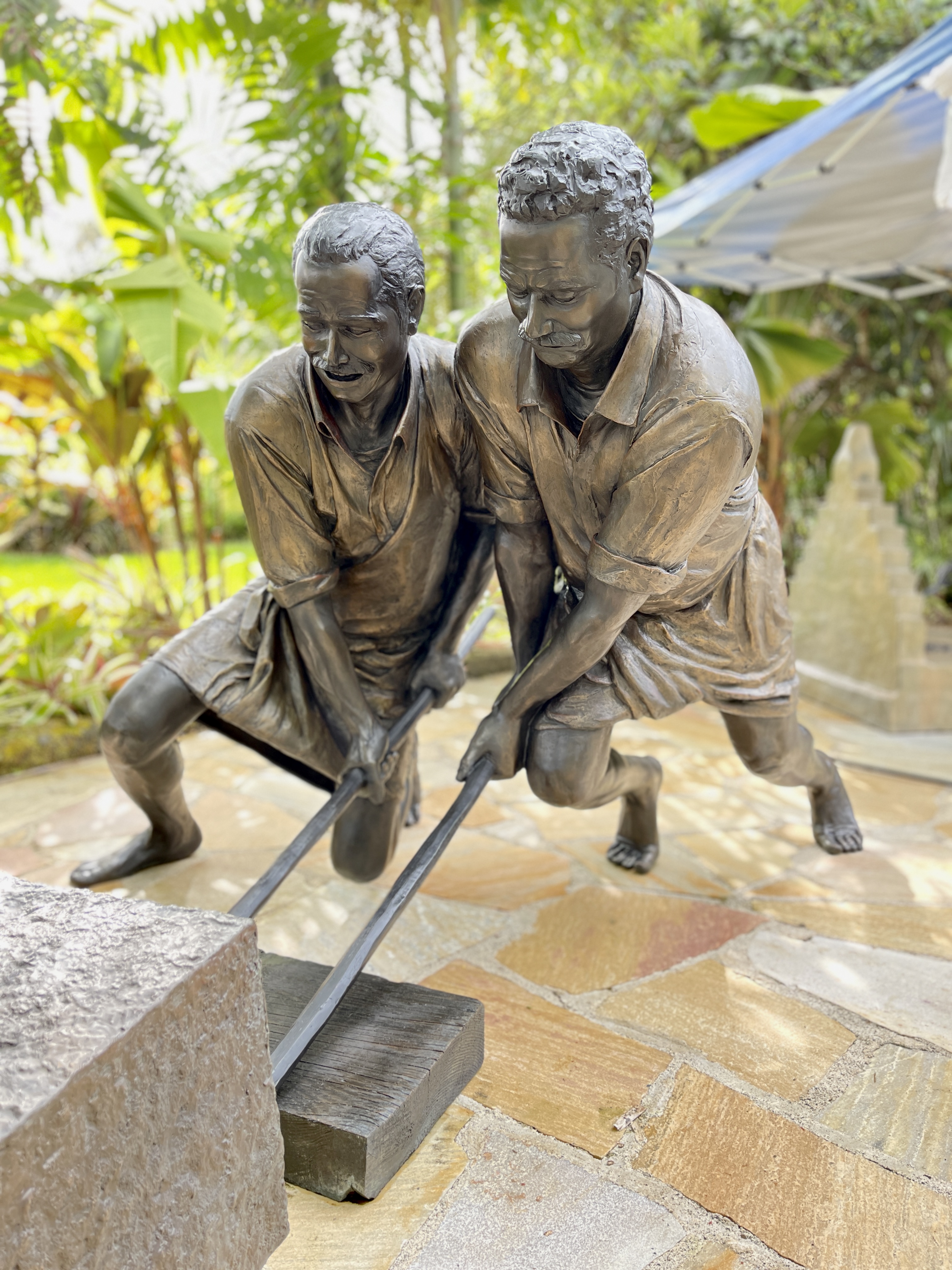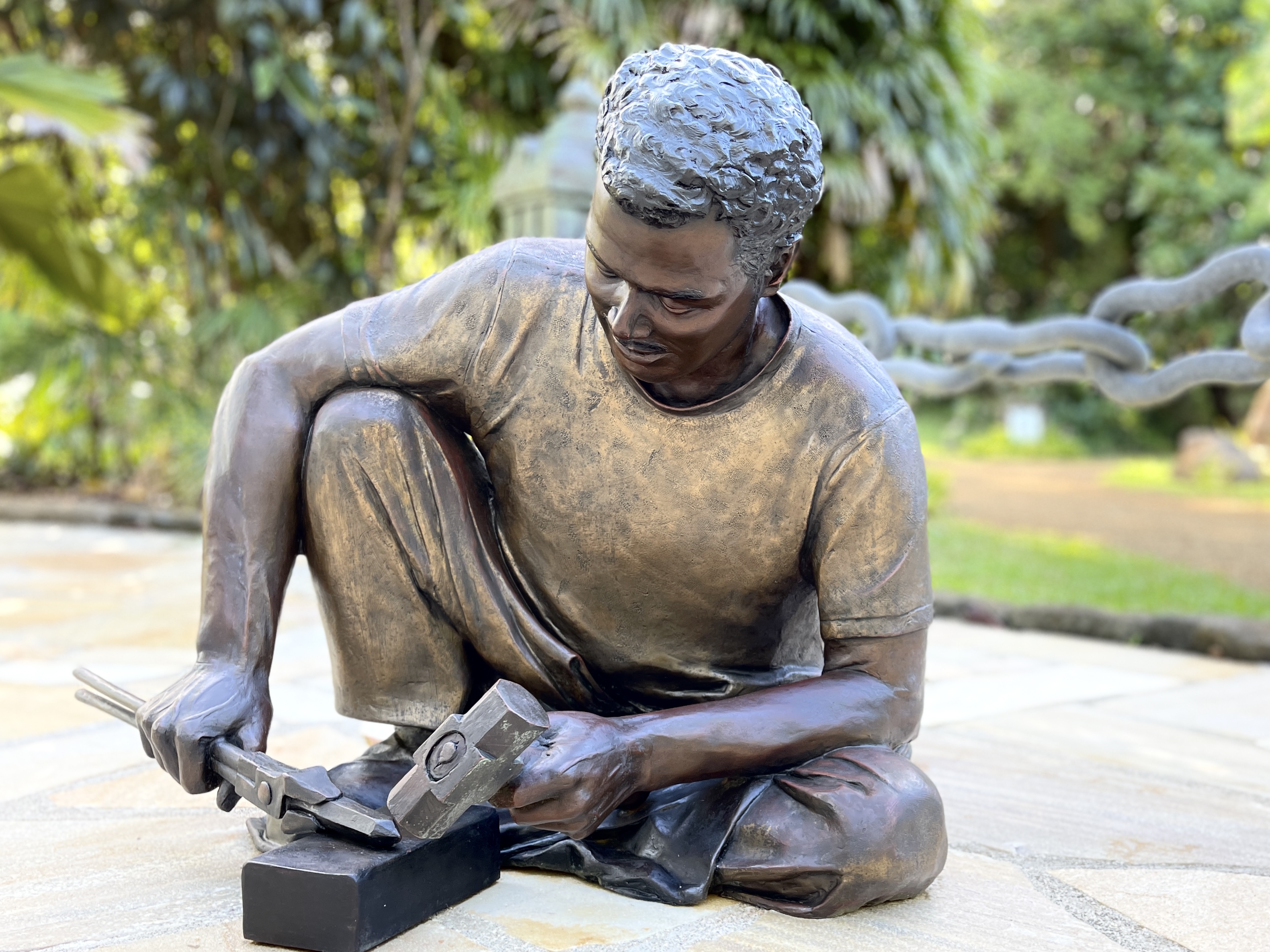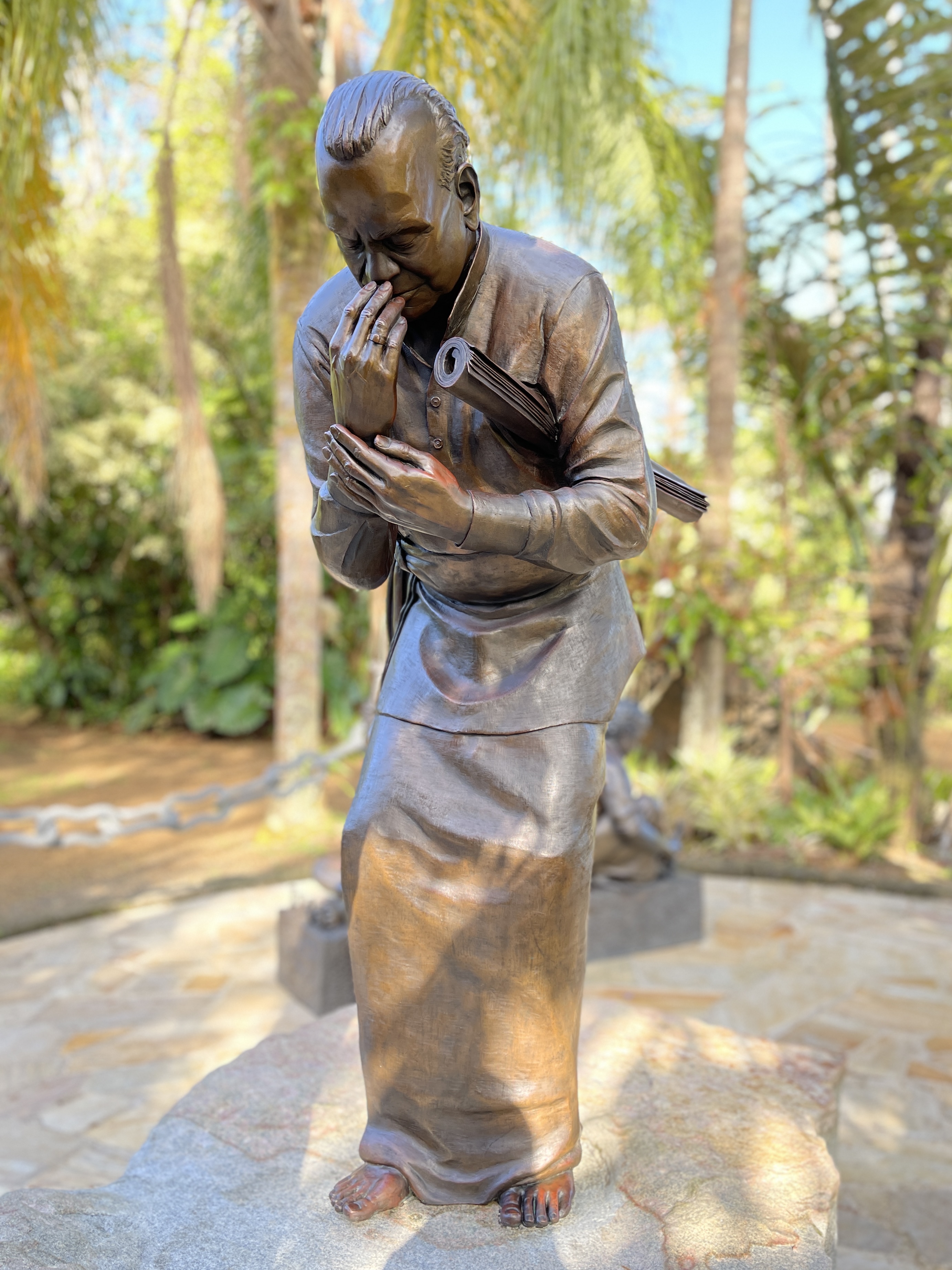 Around 1999, Satguru Sivaya Subramuniyaswami, affectionately known as Gurudeva took note of the sweet sounds the silpis (Indian stone sculptors) were making with their chisels as they shaped the white granite. He realized visitors of the future Iraivan Temple would not be privileged to see this amazing process on the island. So he directed the monks to create a bronze memorial that would depict the ancient technology.