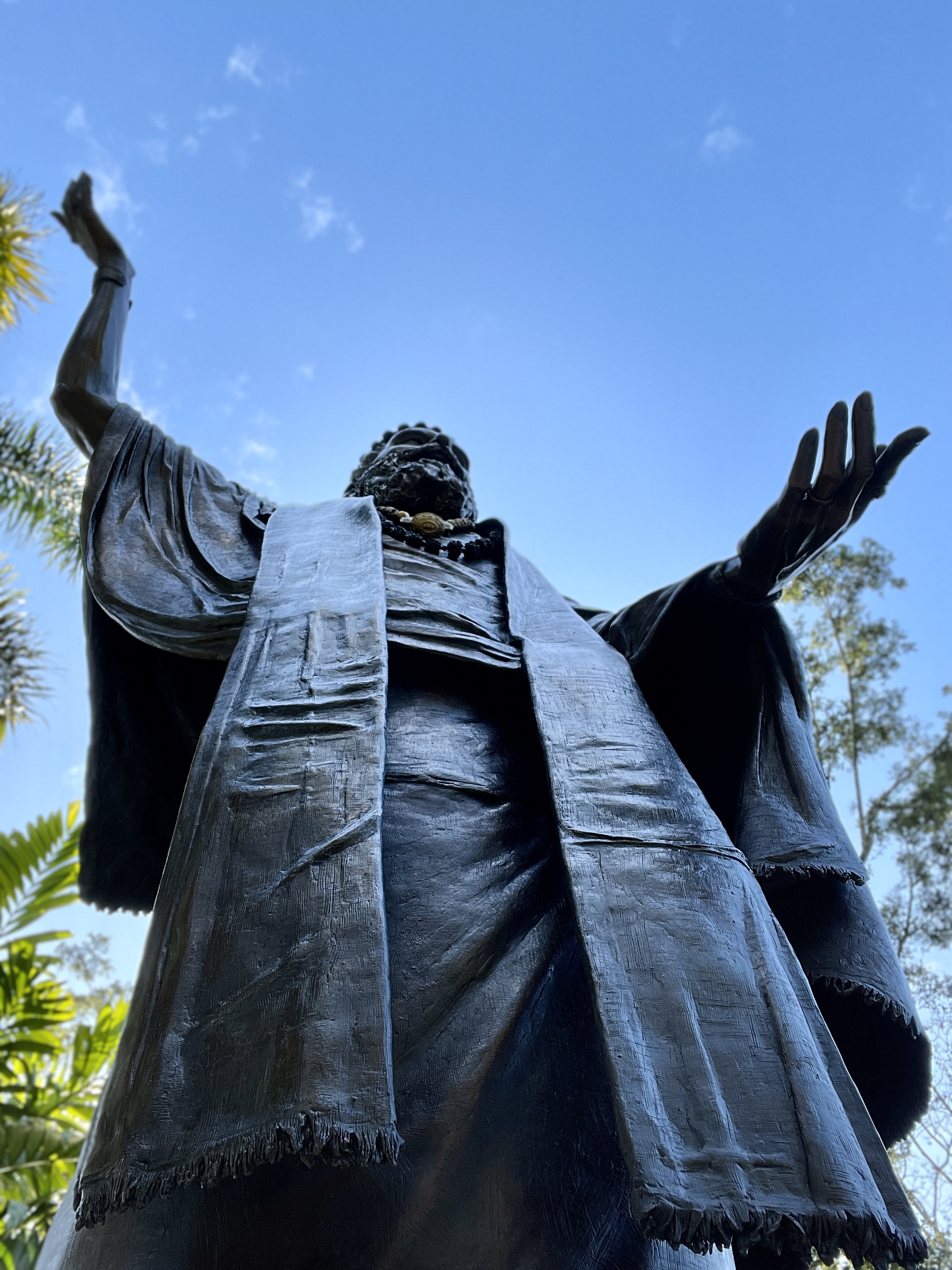 Beginning with the murthi of Gurudeva, Holly flew to Kauai to take photos of a monk holding the pose to have a detailed model for the way the fabric of the robes should fall. Then using pictures that were sent to Holly of Gurudeva and a tall model on Hawaii Island, she sculpted in stiff wax. The swamis flew to the Big Island at critical junctures to review and tweak the wax with Holly.