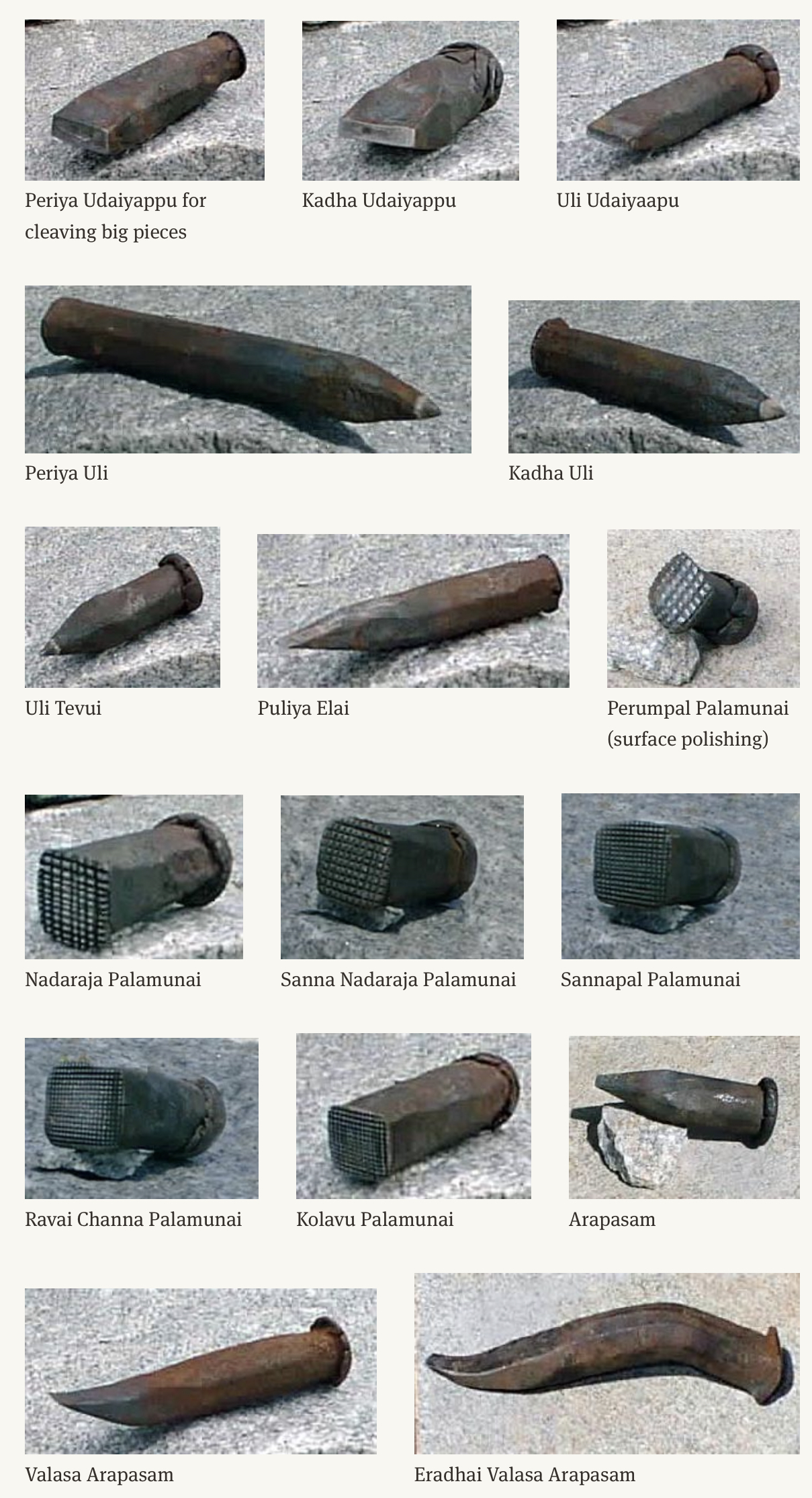 Actual Chisels used for Iraivan Temple