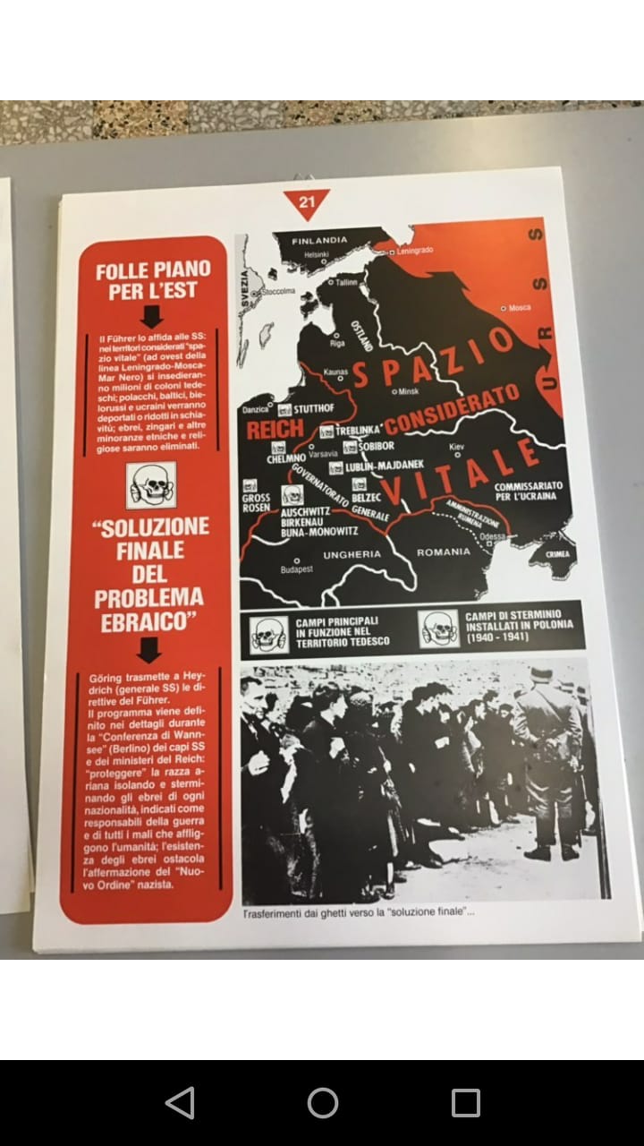 Un lavoro di ricostruzione storica dei momenti drammatici di quegli anni, dalla prima guerra mondiale alla seconda , con un materiale fotografico e didascalico di tutte le tappe determinanti che compongono quel mosaico terribile.