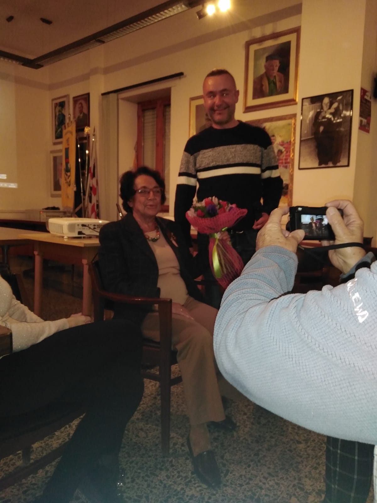 Antonio : Buongiorno, siamo onorati di avere qui con noi, nella nostra piccola comunità, una persona della sua importanza, perché nel nostro piccolo vissuto di studenti, sentire le sue parole è come leggere una pagina di storia, che talvolta ci appare noiosa e difficile, con la sua presenza siamo certi che si tratta di storia vera e reale. La ricorrenza della Shoah , ci invita a capire meglio cosa è successo 70 anni fa , anni terribili , che sembrano lontani , ma che sono sempre attuali , specie per noi ragazzi di terza che apprendiamo dai libri e dalle immagini che abbiamo visto nella mostra documentaria che abbiamo curato queste settimane. Grazie alla sua testimonianza , vogliamo impegnarci a preservare meglio il valore del rispetto e della tolleranza, spesso nella nostra società è dimenticato nei social e altri canali di comunicazione. Per questo cogliamo ancora una volta l’occasione per ringraziarla . Siamo certi che la sua storia-testimonianza è una preziosa lezione che ci accompagnerà sempre perché ci fa capire che nonostante tutte le bruttezze di cui l’uomo è capace con azioni sbagliate, ancora oggi lei è qui a ricordare quei momenti terribili con forza e coraggio, e cercando sempre di affrontare la vita con ottimismo. Per questo non dimenticheremo.