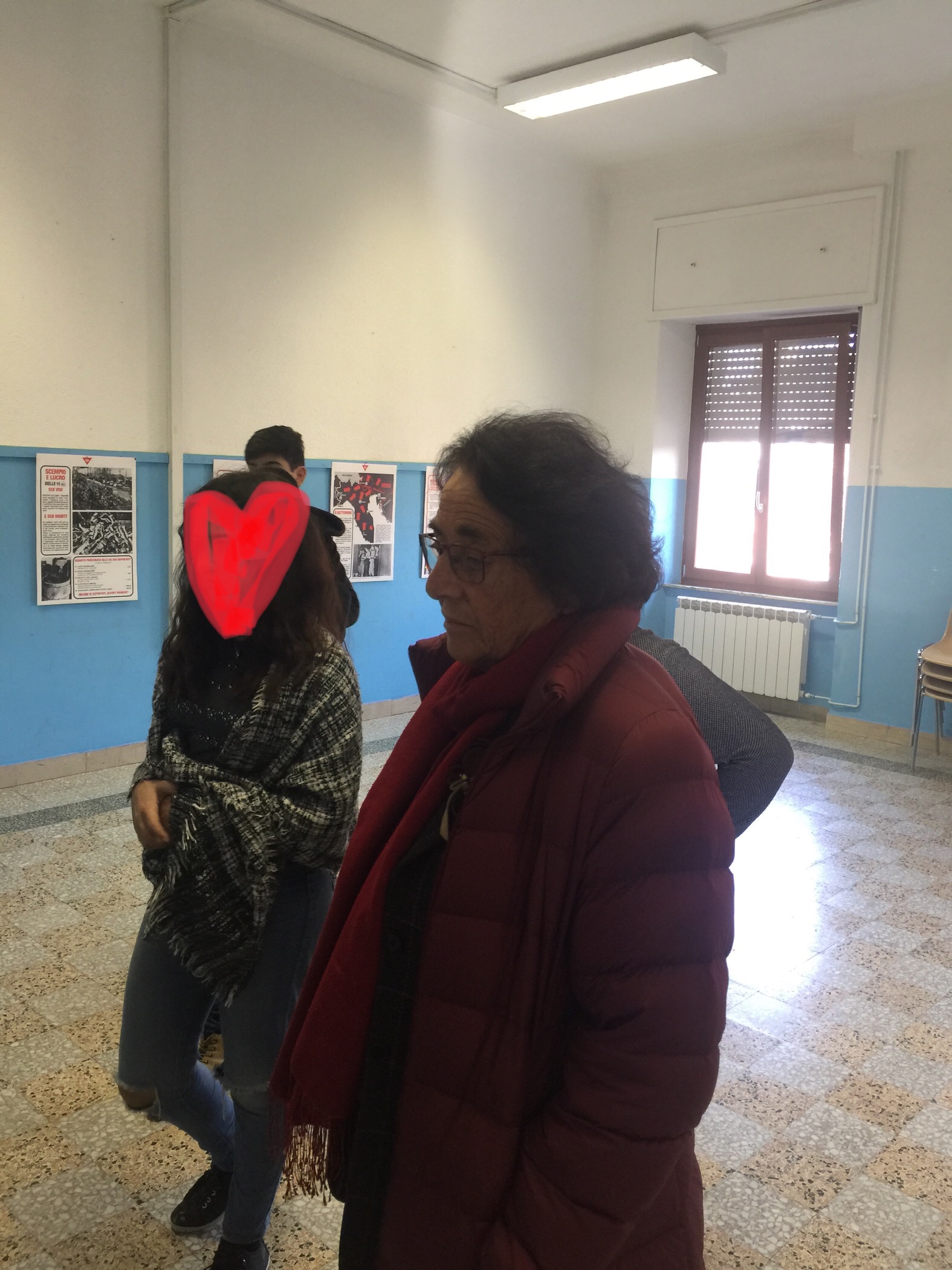I ragazzi anche se non sempre in silenzio, hanno ascoltato rapiti , specie quando con tono sereno Miriam ricordava il sacrificio di una bambina di due anni che per venti giorni è rimasta immobile senza fiatare, seduta su una sedietta che ancora oggi Miriam nei momenti più intimi tiene ai suoi piedi ripensando all’ infanzia degli affetti familiari e alle ingiustizie del mondo.