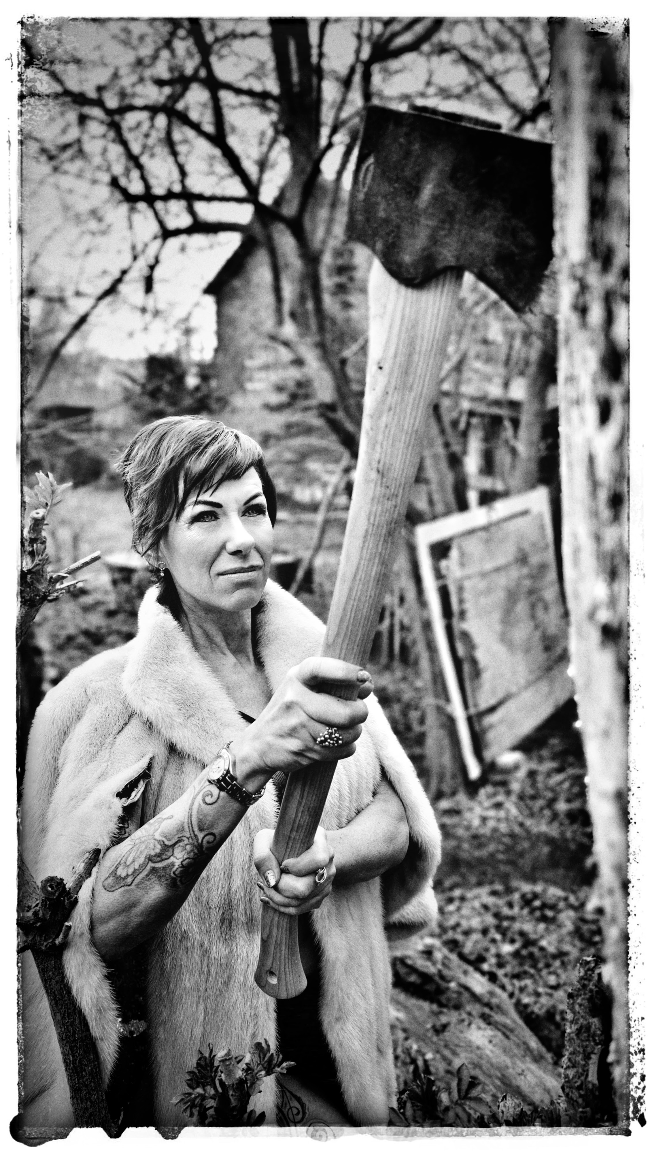 Stor tak til hele det nysgerrige hold hos Københavns Møbelsnedkeri for lån af drabelig skarp økse, som heldigvis kom i en beskyttende skede. Økser kan hurtigt ‘udkonkurrere teaterblod’.