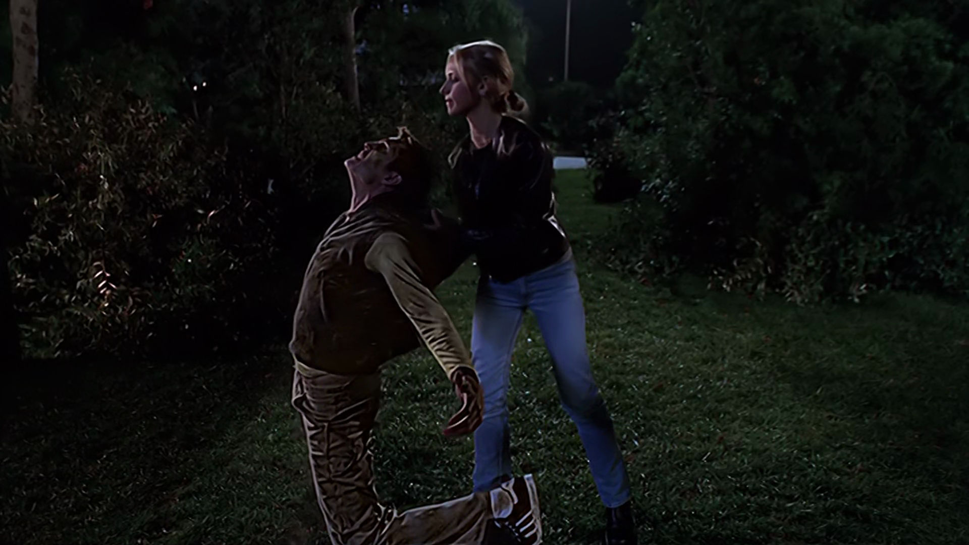 In this example, the new framing changes the impact of the moment. Buffy can now be seen getting up in the shot sooner than she's supposed to.