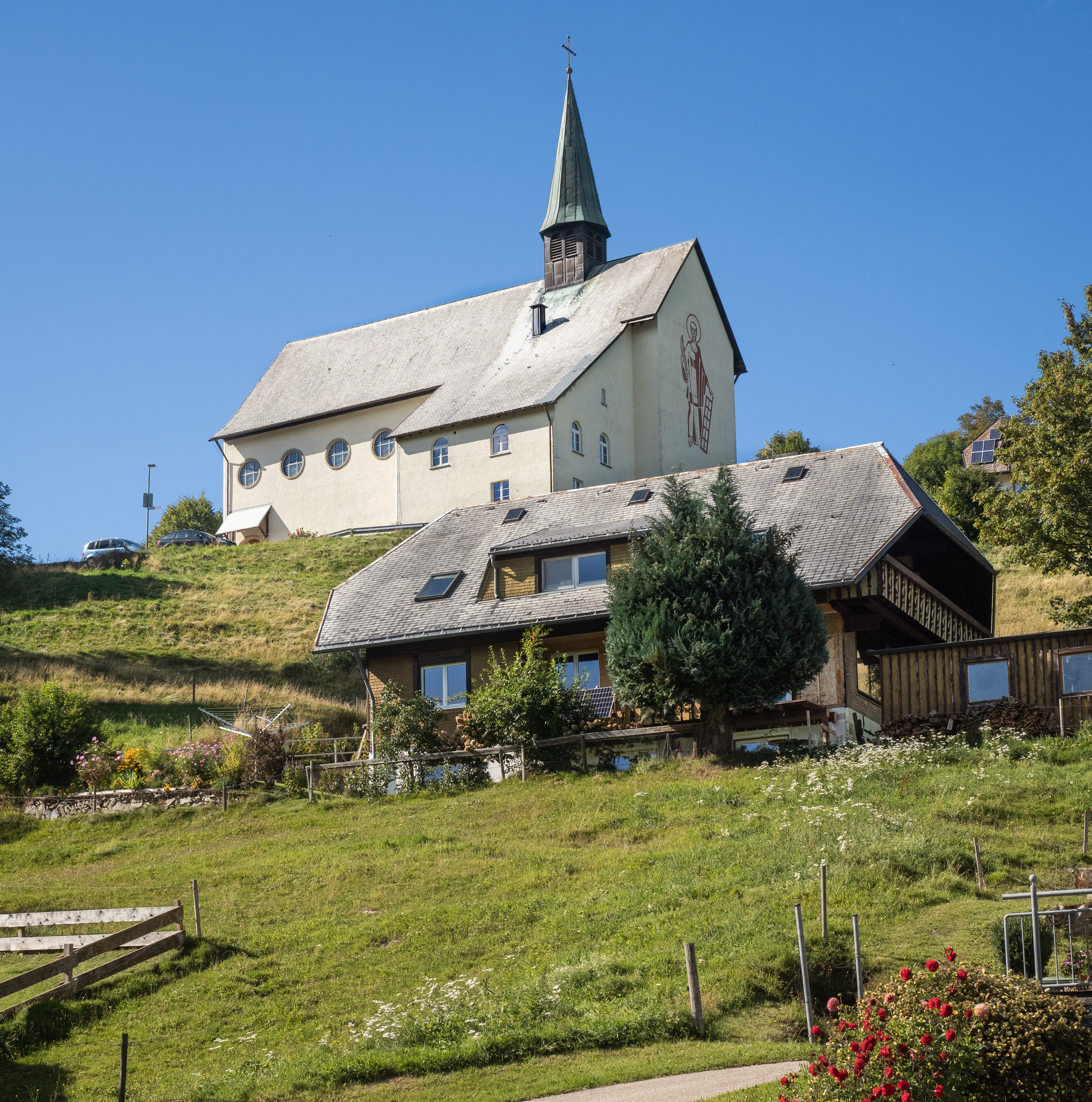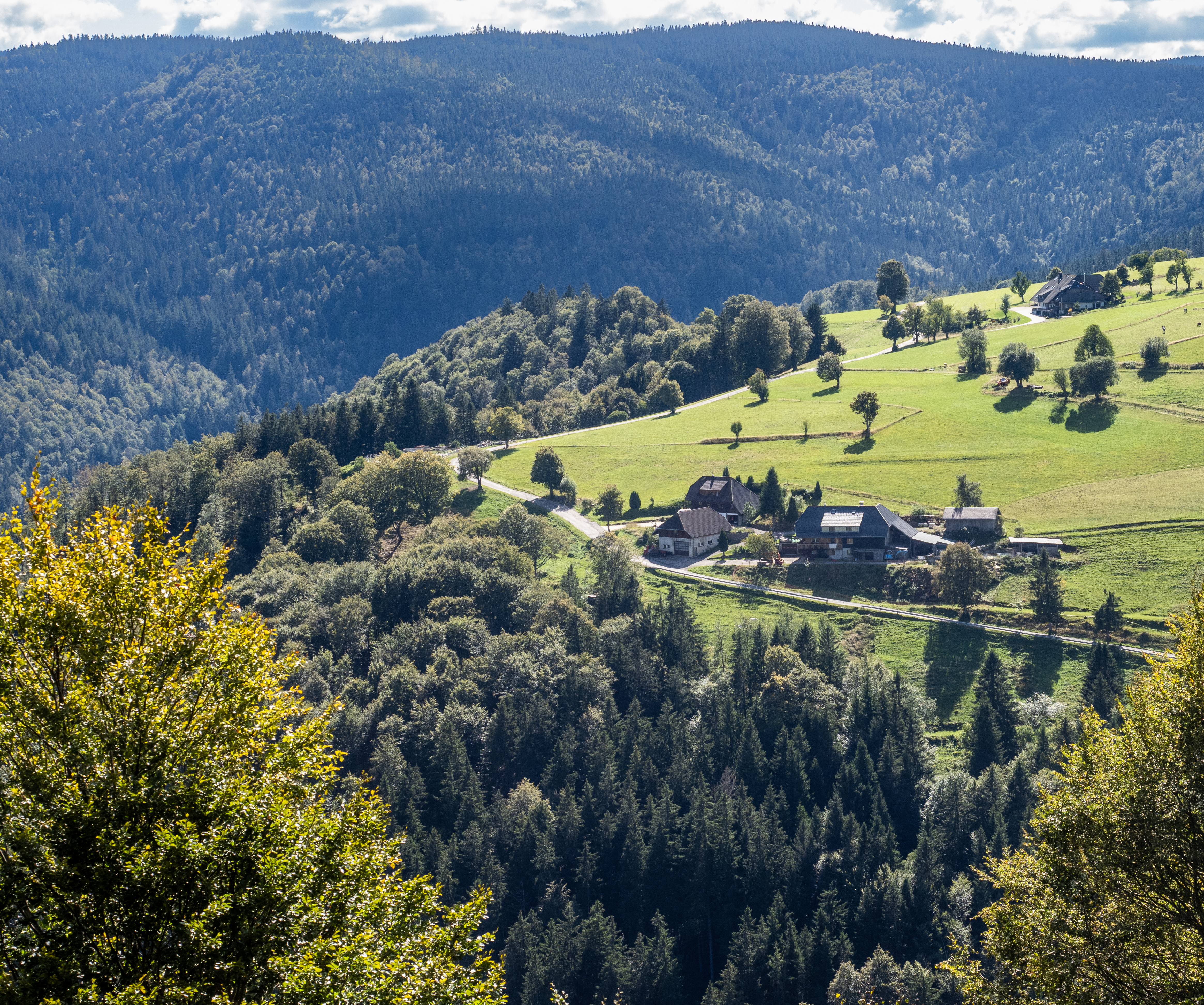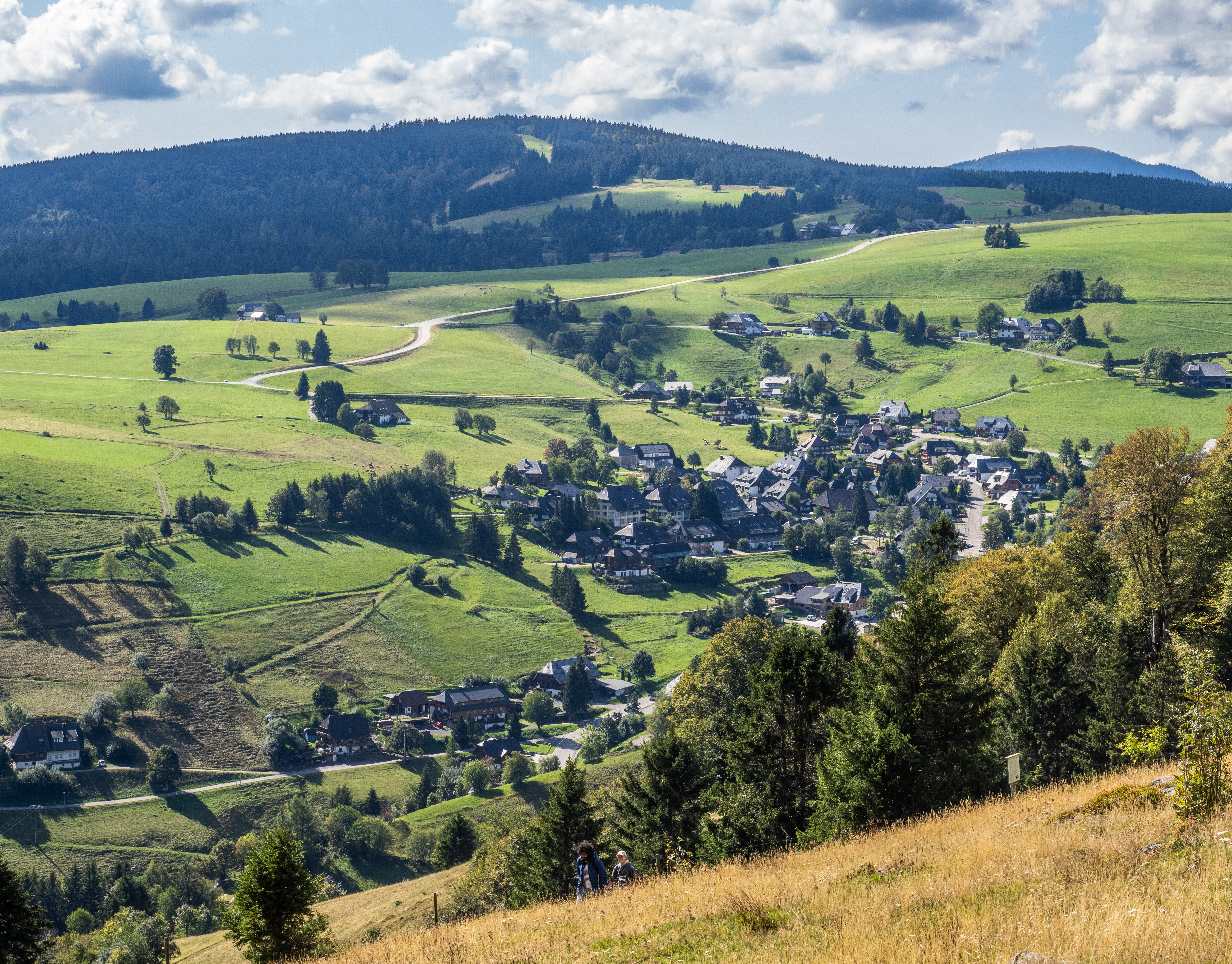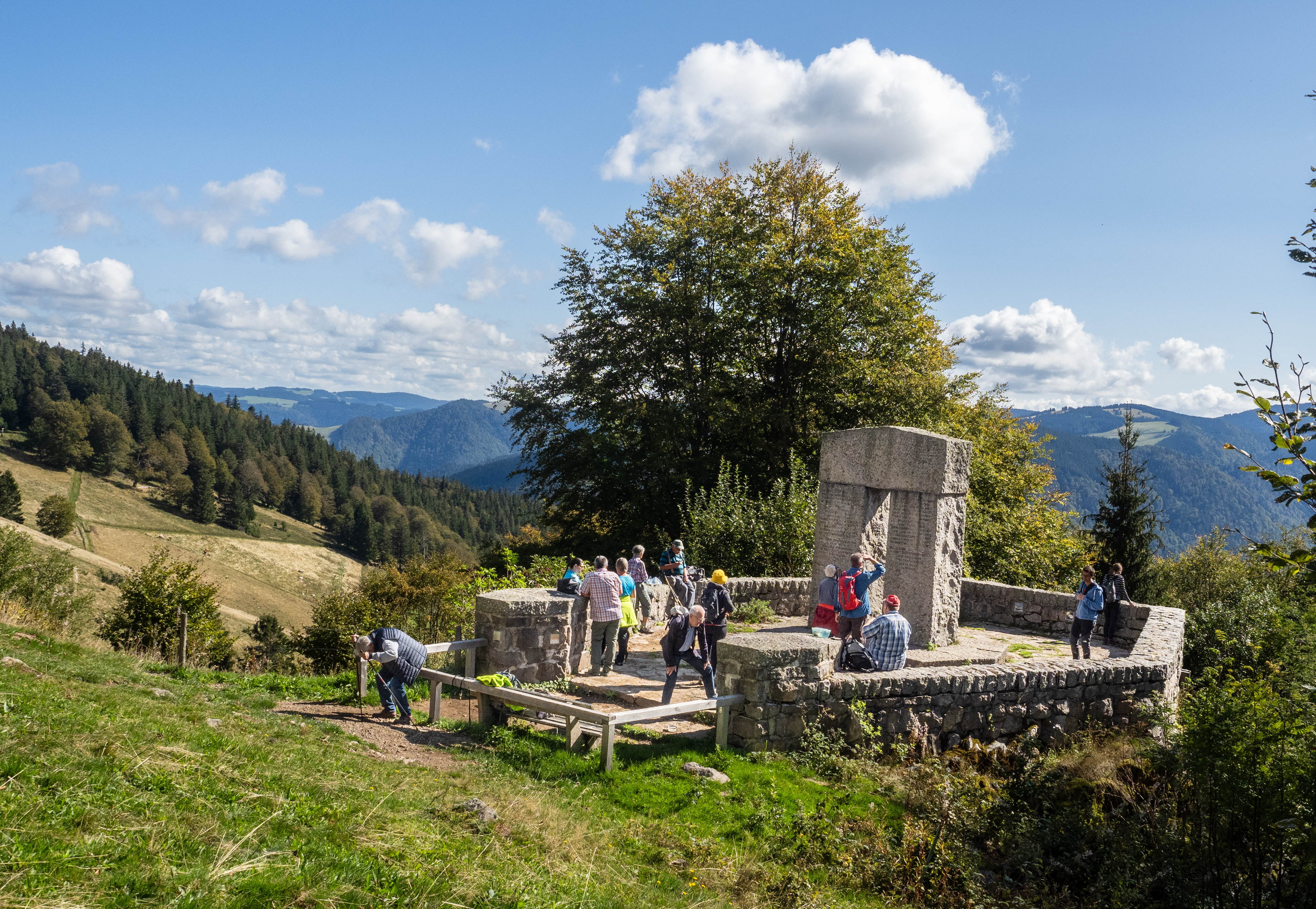 Schauinsland is a mountain area in the Black Forest about an hour’s journey south of Freiburg. We took the cable car to reach the summit, but others had driven or even cycled up the very twisty road. The weather could not have been better and we could see the Vosges mountains and Alsace across the Rhine valley to the west. To the east, we looked over the Black Forest range.