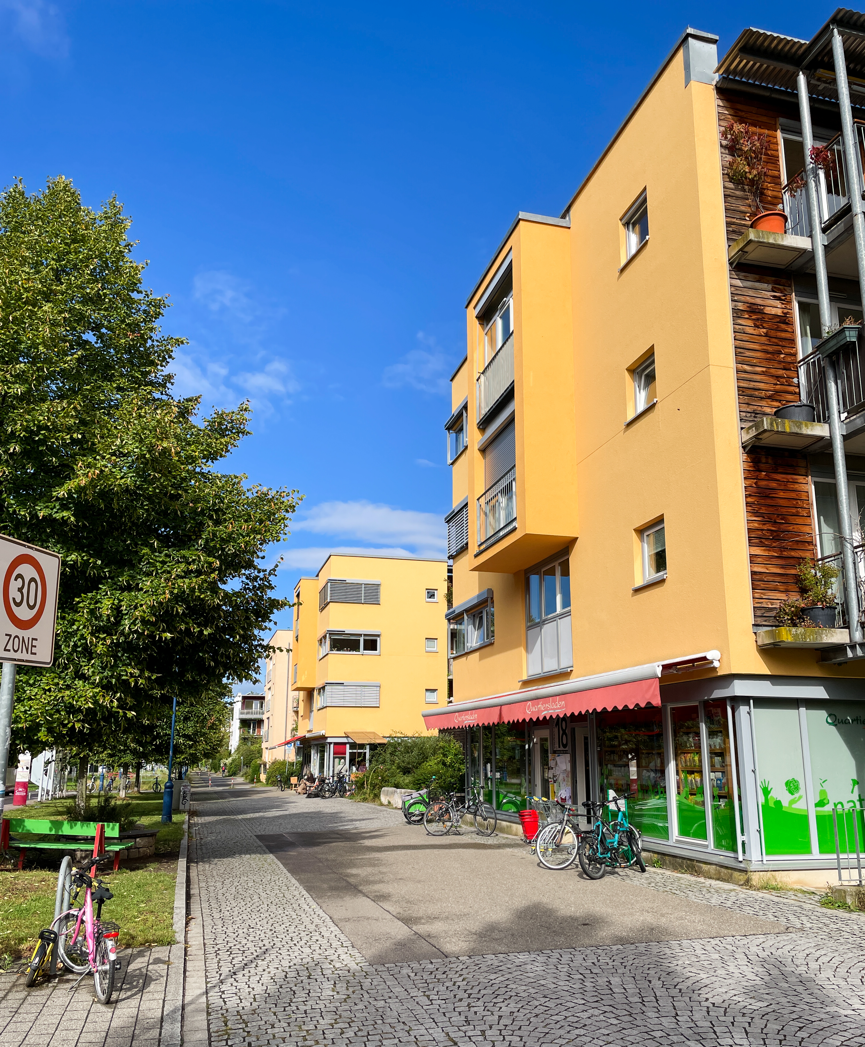 We had an excellent guided tour of this area by one of the Freiburg town guides, Lucy. Vauban is a residential district built on the site of a military barracks used by the French until 1990’s. Plans for the area were developed from ideas gathered from local residents: