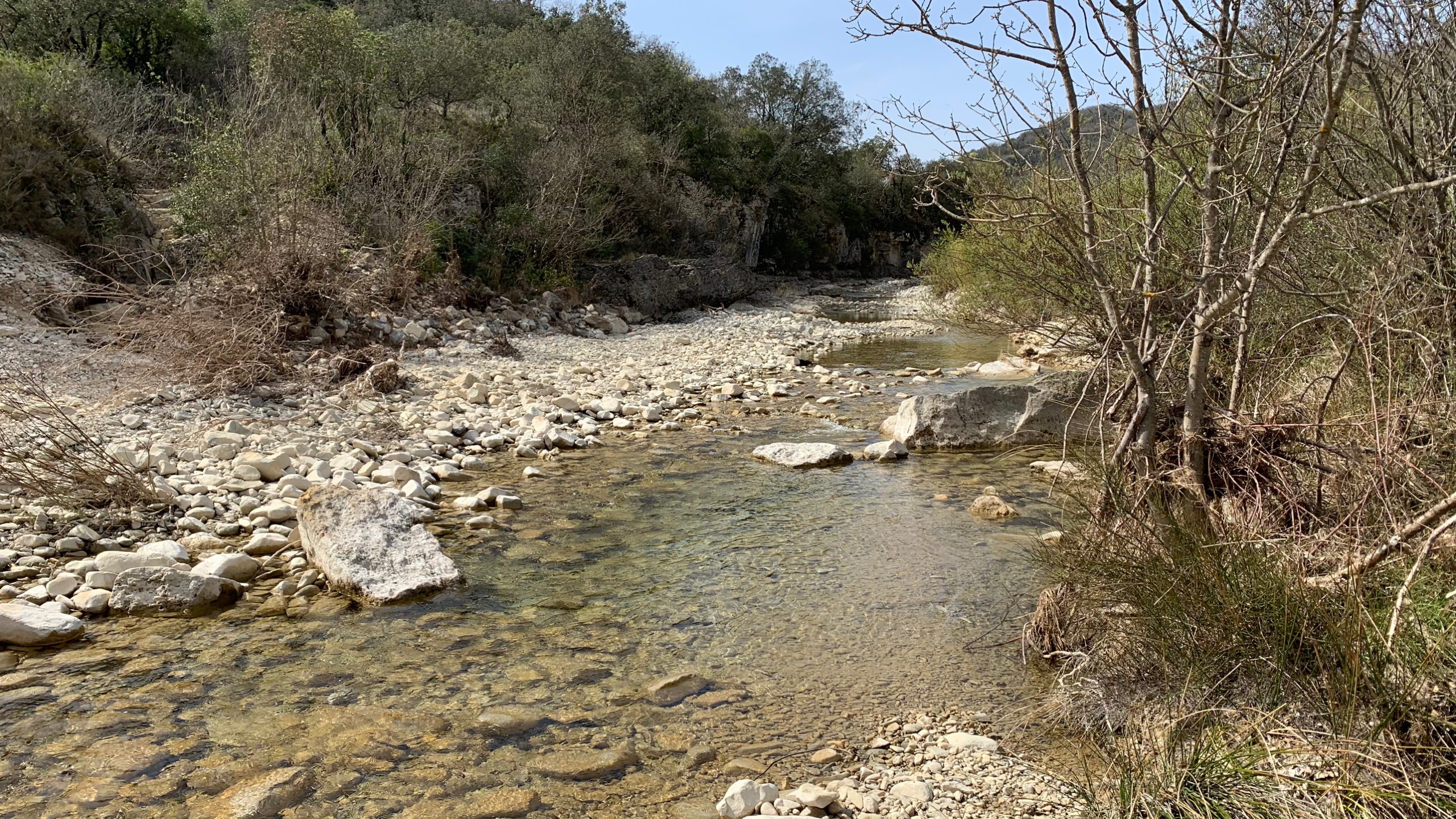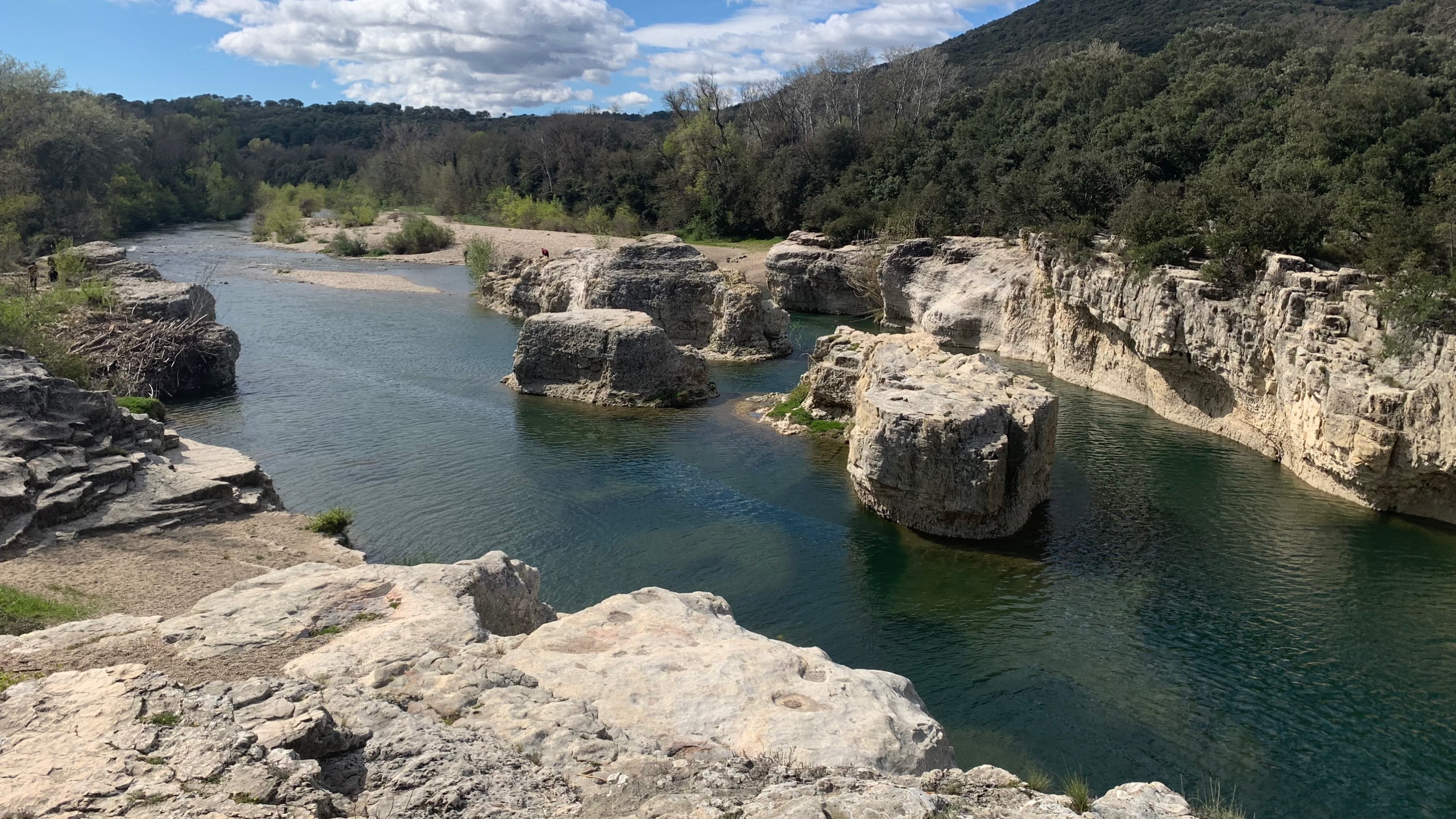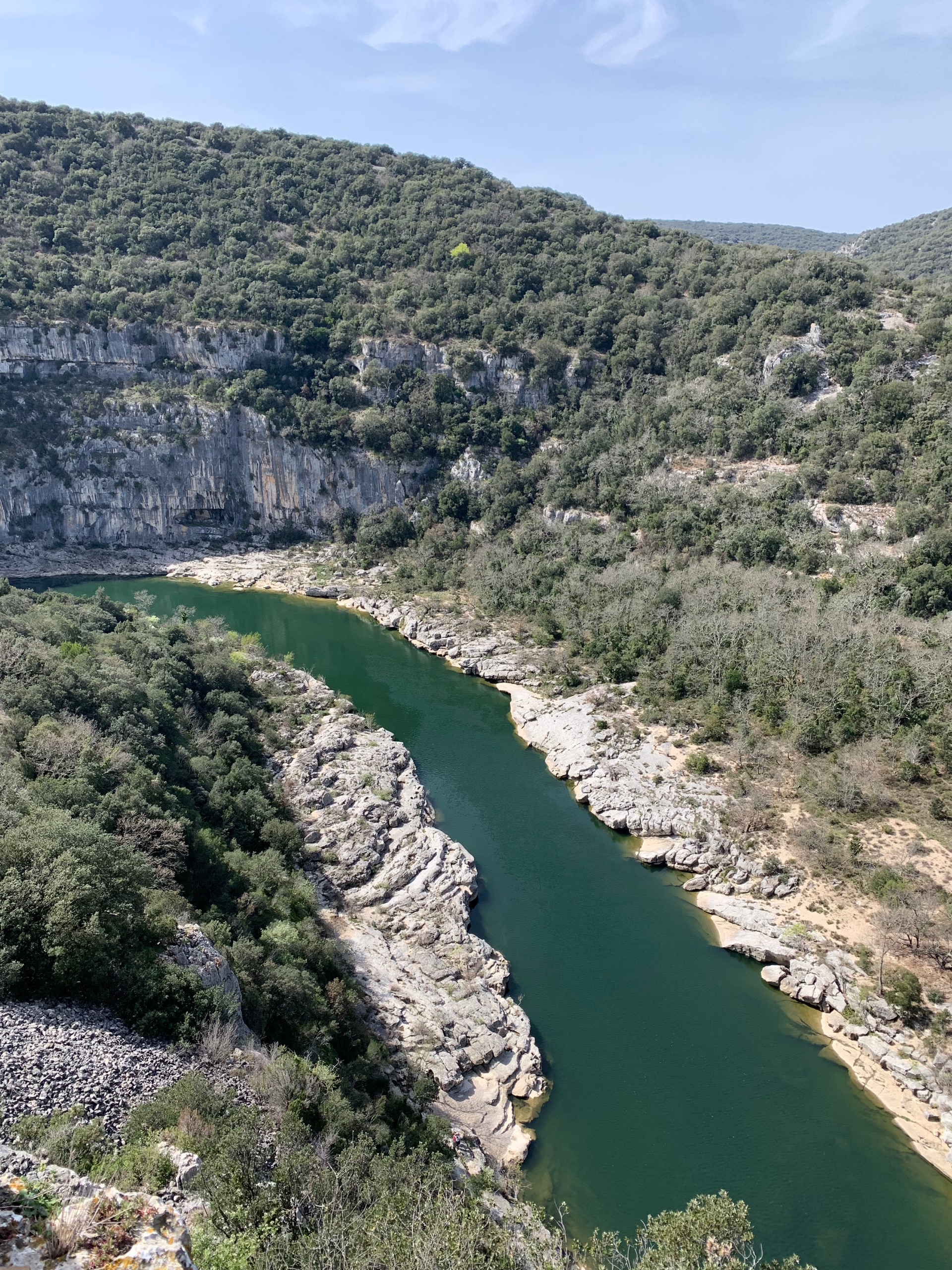 Het is gewoonweg heerlijk weer! We rijden in de loop van de ochtend richting gorges D’Ardeche. Onderweg een mooie pauze plaats aan een riviertje. Buiten lunchen aan het begin van de gorges. Het is er doodstil. Het voordeel van dit jaargetijde.
