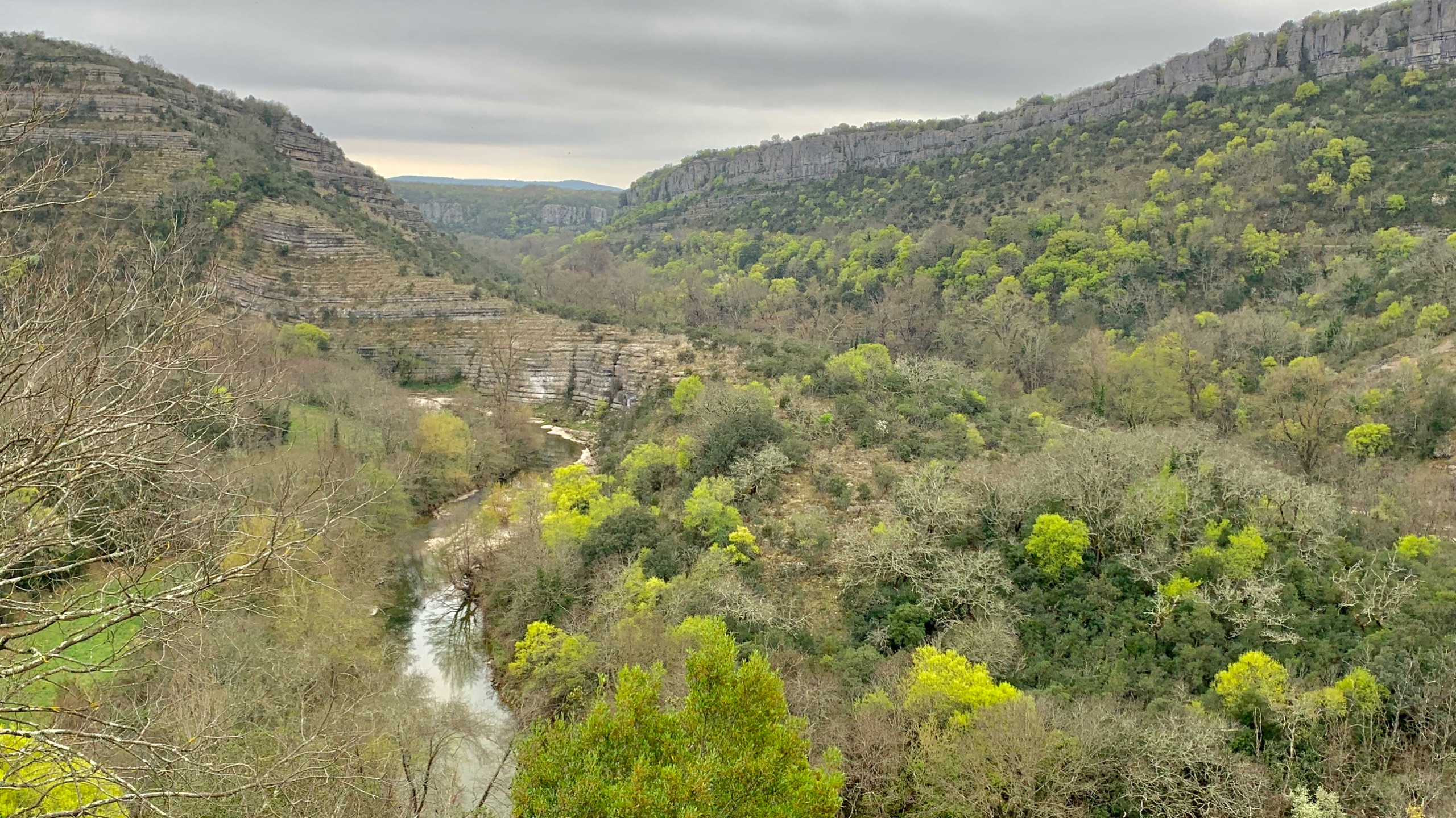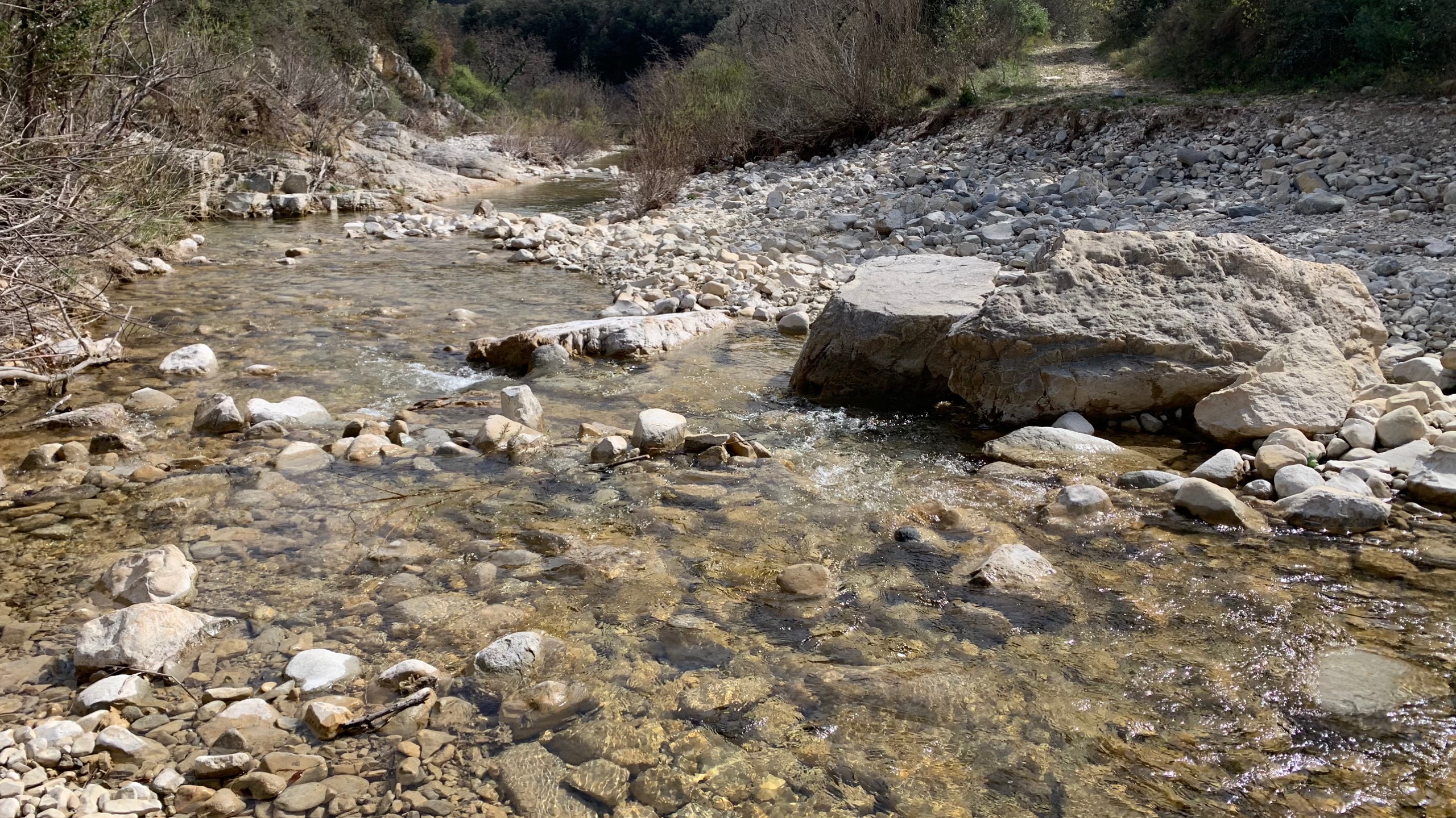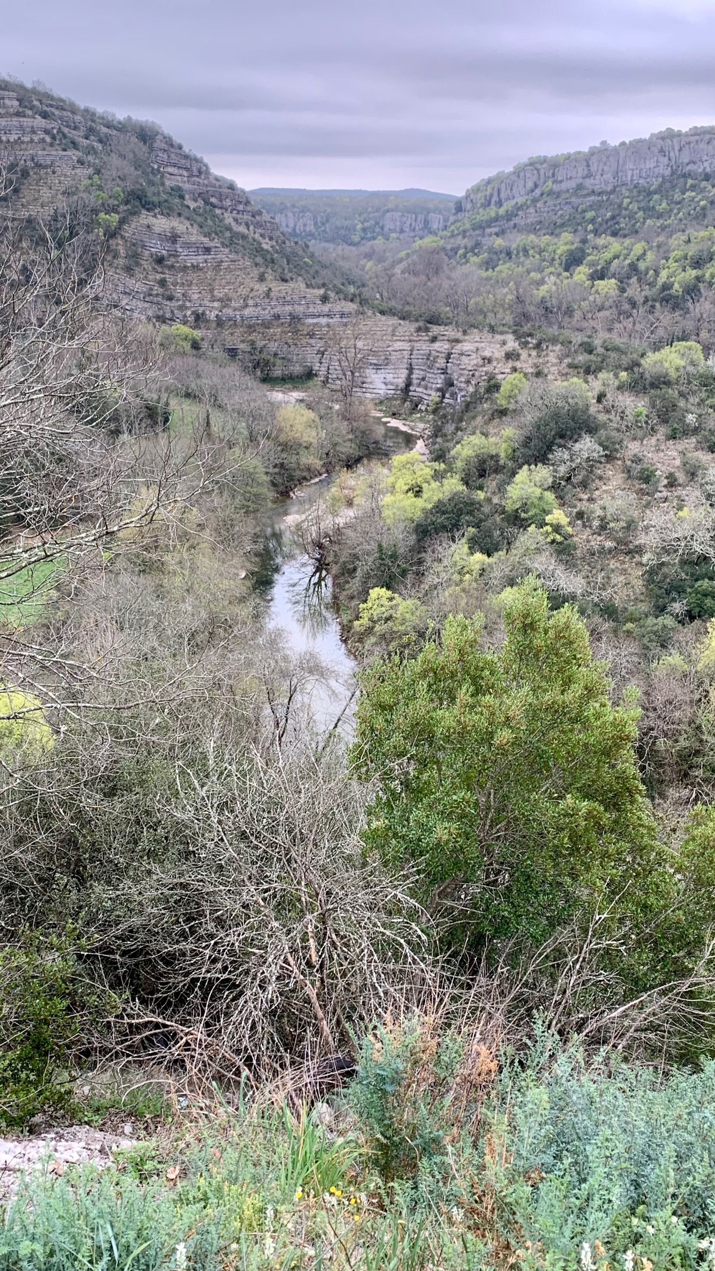 Het is gewoonweg heerlijk weer! We rijden in de loop van de ochtend richting gorges D’Ardeche. Onderweg een mooie pauze plaats aan een riviertje. Buiten lunchen aan het begin van de gorges. Het is er doodstil. Het voordeel van dit jaargetijde.