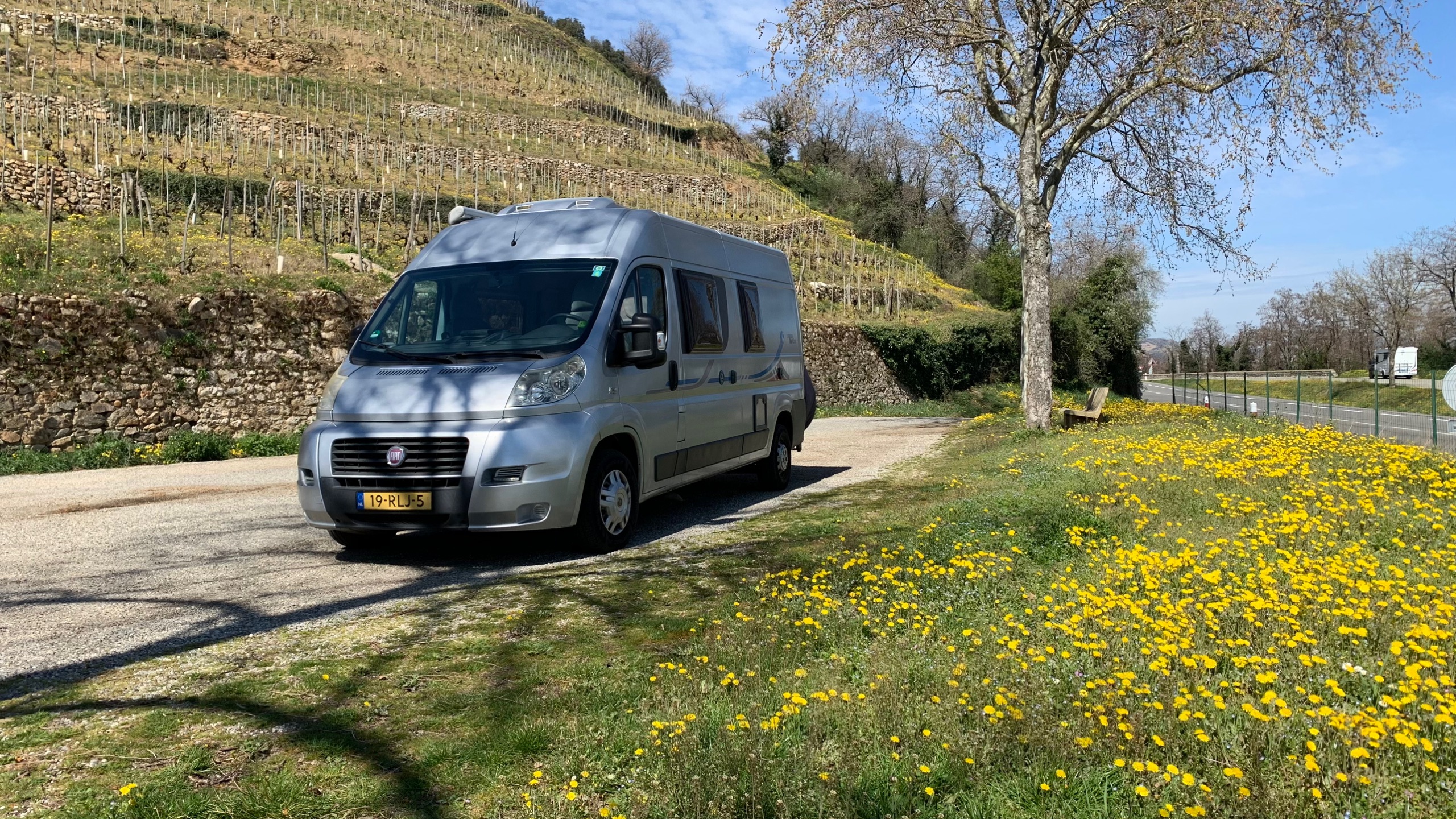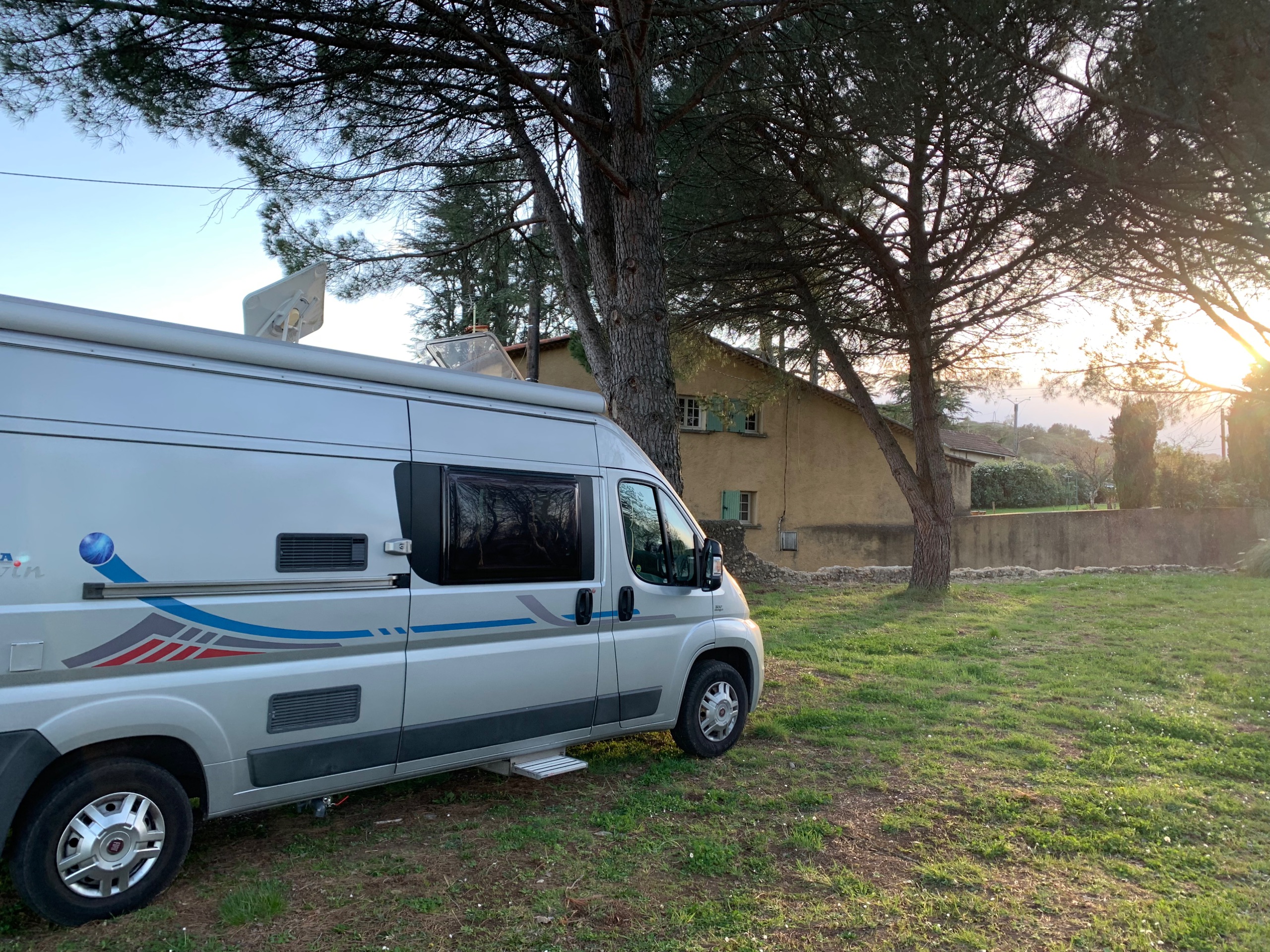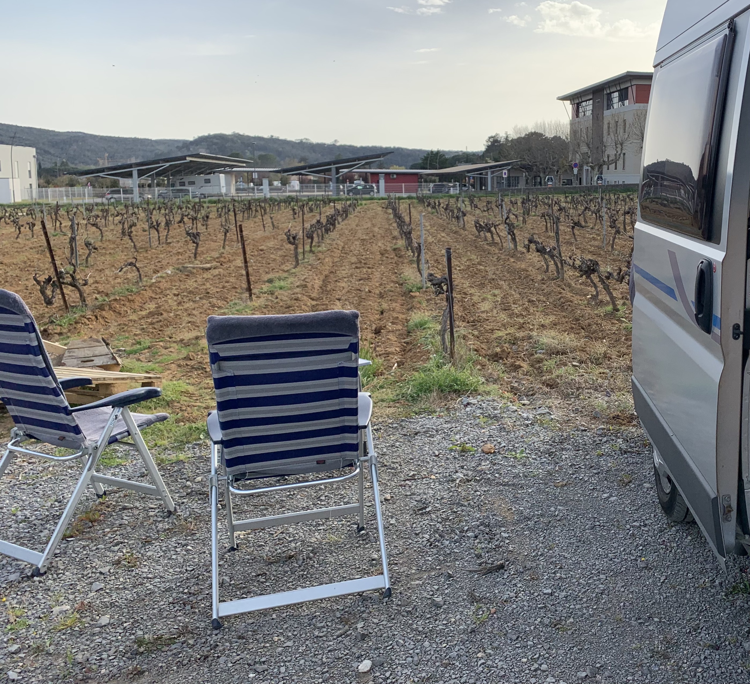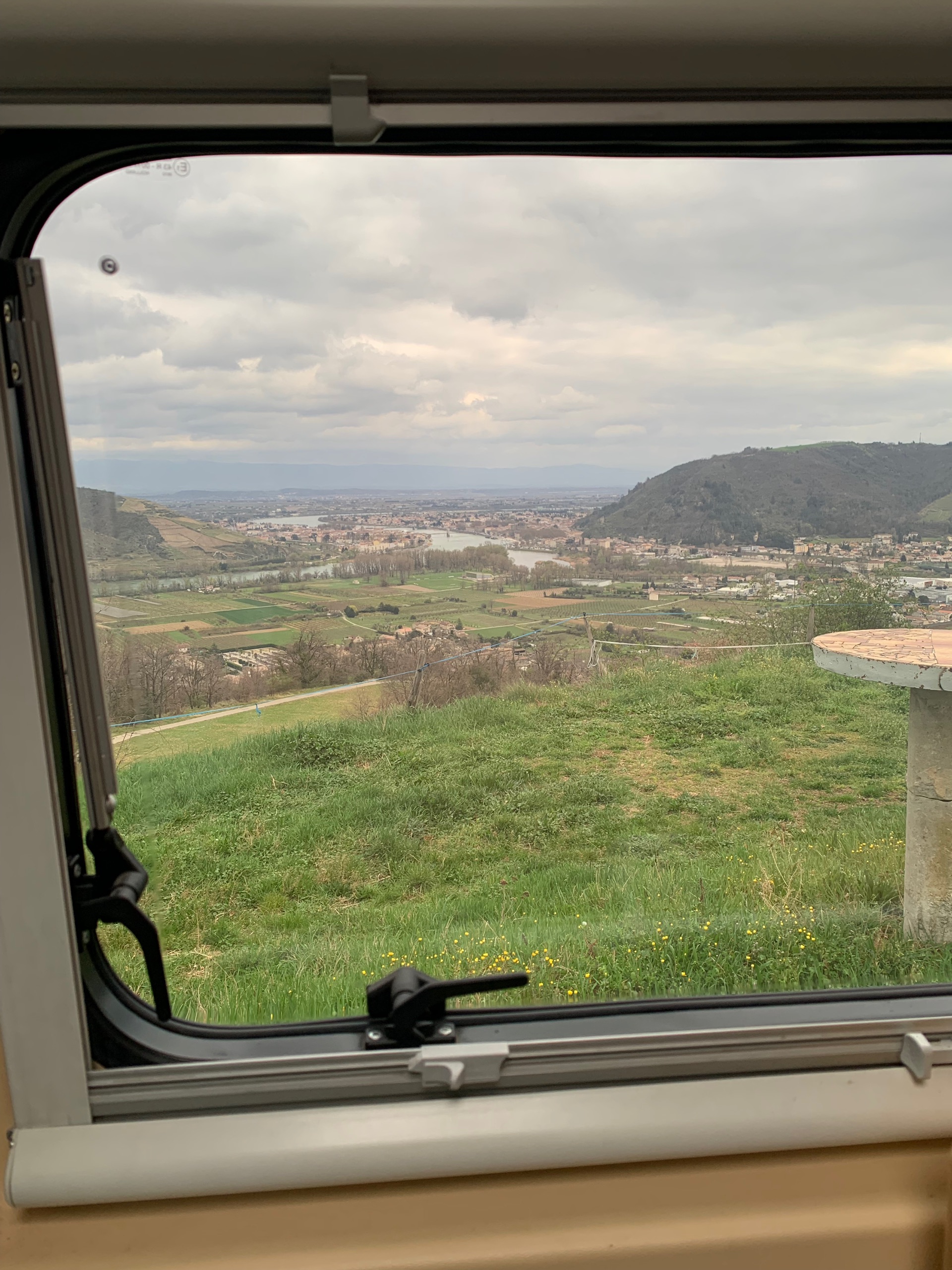 Rond 22.00 uur rijden we weg van huis. Het is heerlijk rustig op de weg. We overnachten in Dudelange. Een gratis plek, waar ondanks de kou toch veel campers staan. We slapen een paar uur en gaan dan op weg. De reis loopt voorspoedig. Even problemen met de inspuiting, oranje motorlampje gaat branden. Gelukkig lost dat zich zelf weer op. We komen tegen 17.00 aan op onze overnachtingsplek van France Passion. Met schitterend uitzicht over het Rhônedal.