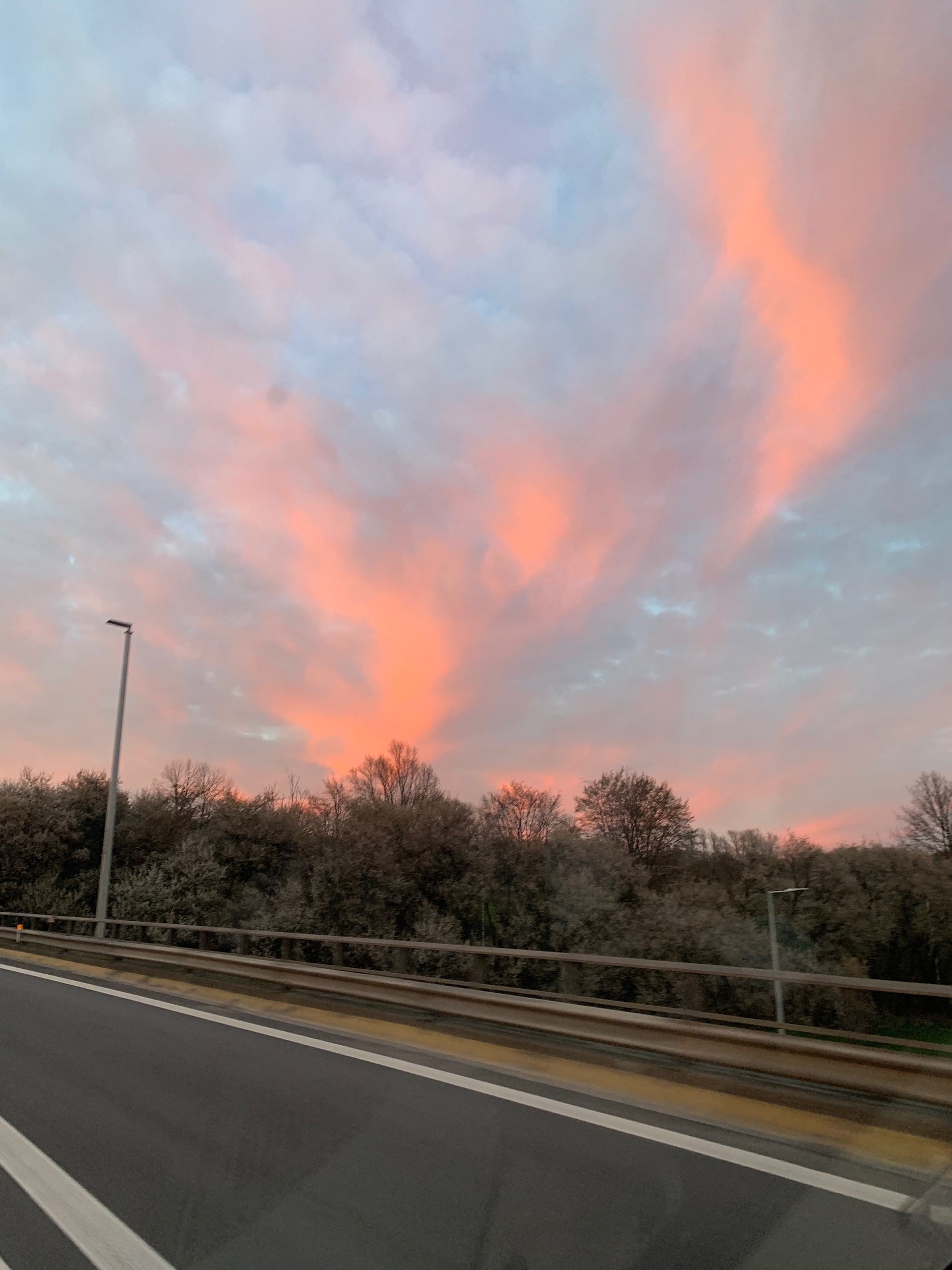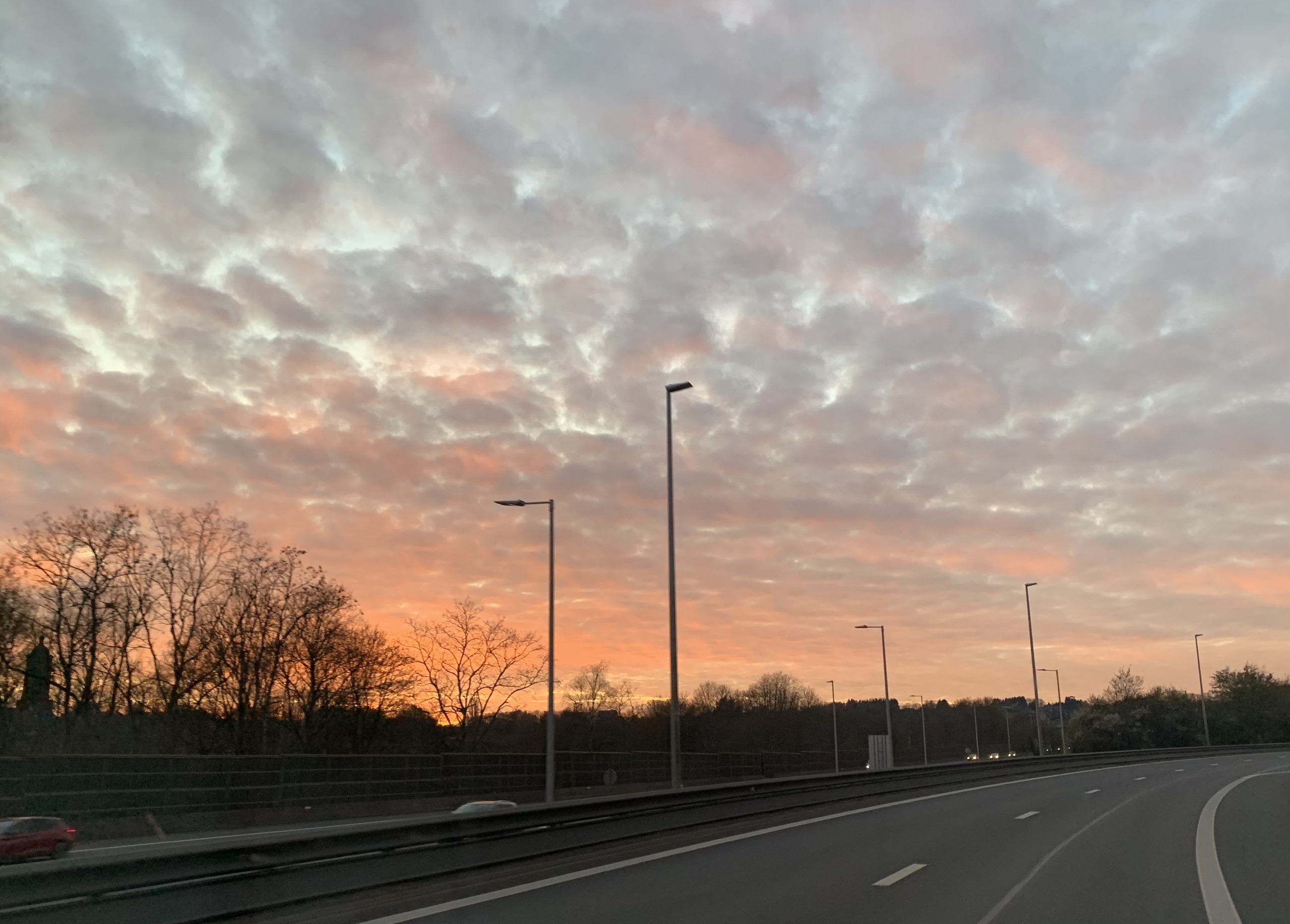 Voor Metz komen we op de snelweg. Enkel file de andere kant op, dat is fijn. In Luxemburg nog even voordelig tanken en op een mooi plekje bij het bos eten. Dan weer verder nog een mooie route. Bij luik zijn er afsluitingen dus dit is de snelste route. Het is een rustige route met mooie uitzichten langs een oranje ondergaande zon. Op voor het laatste stuk naar huis.
