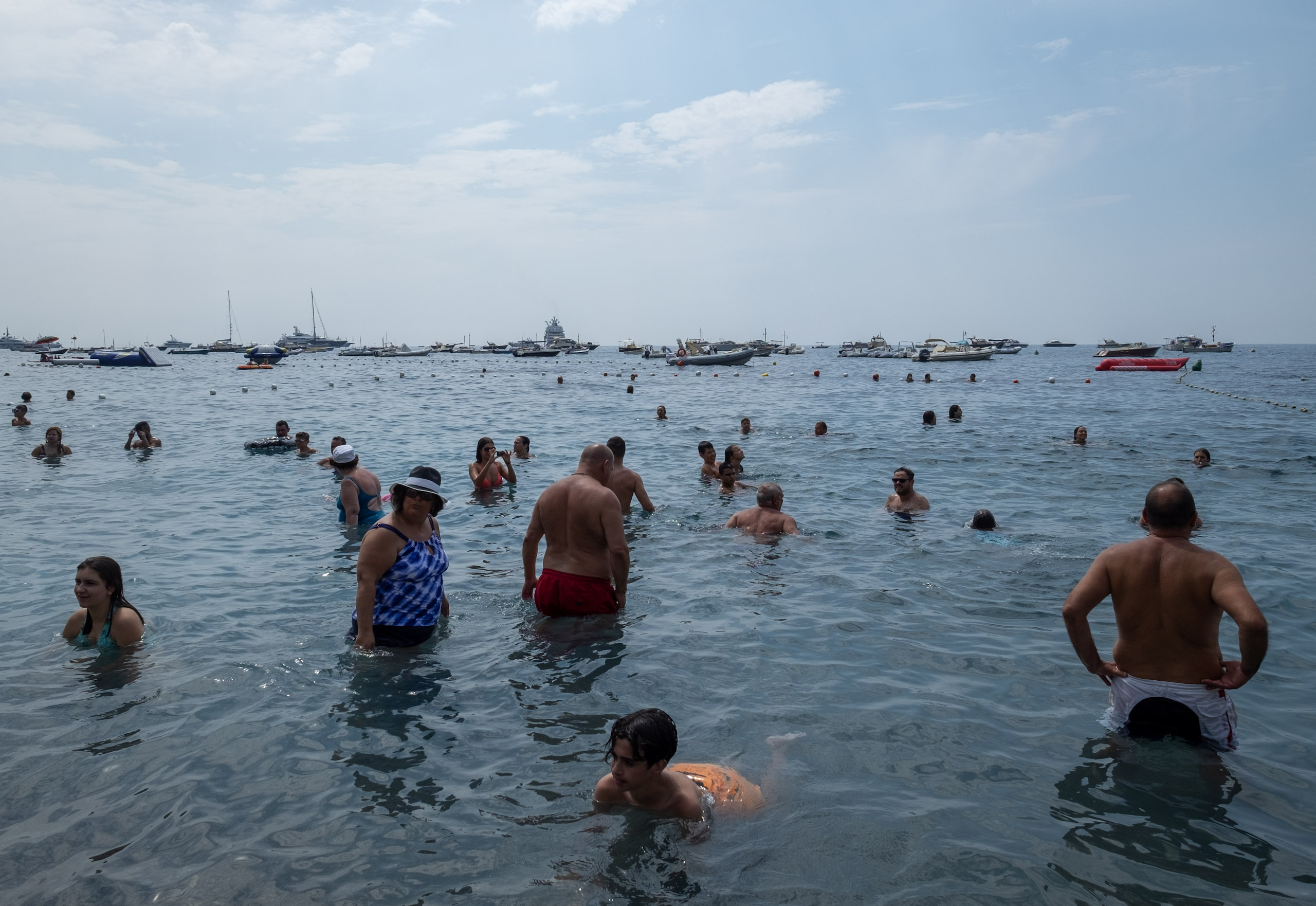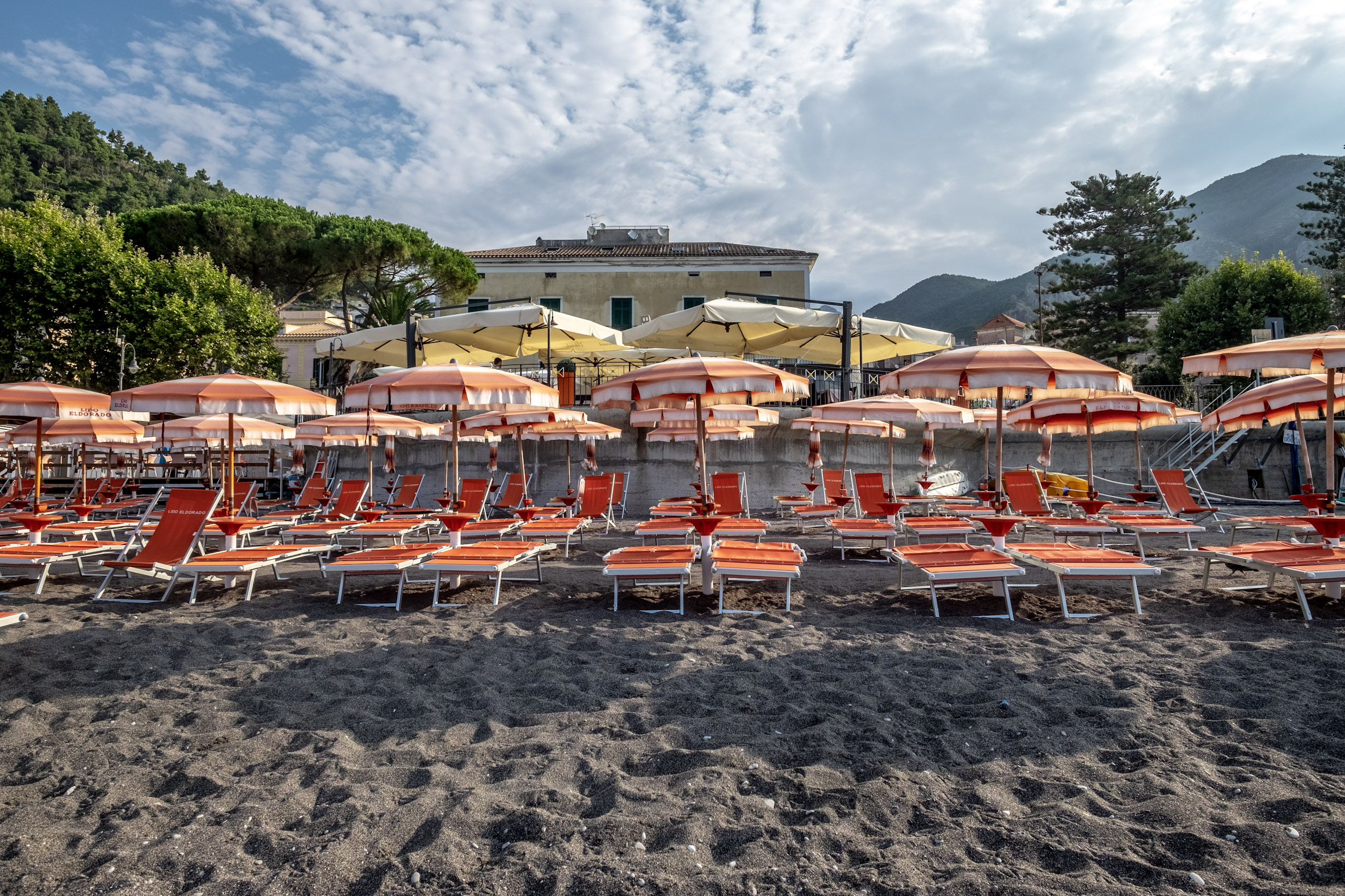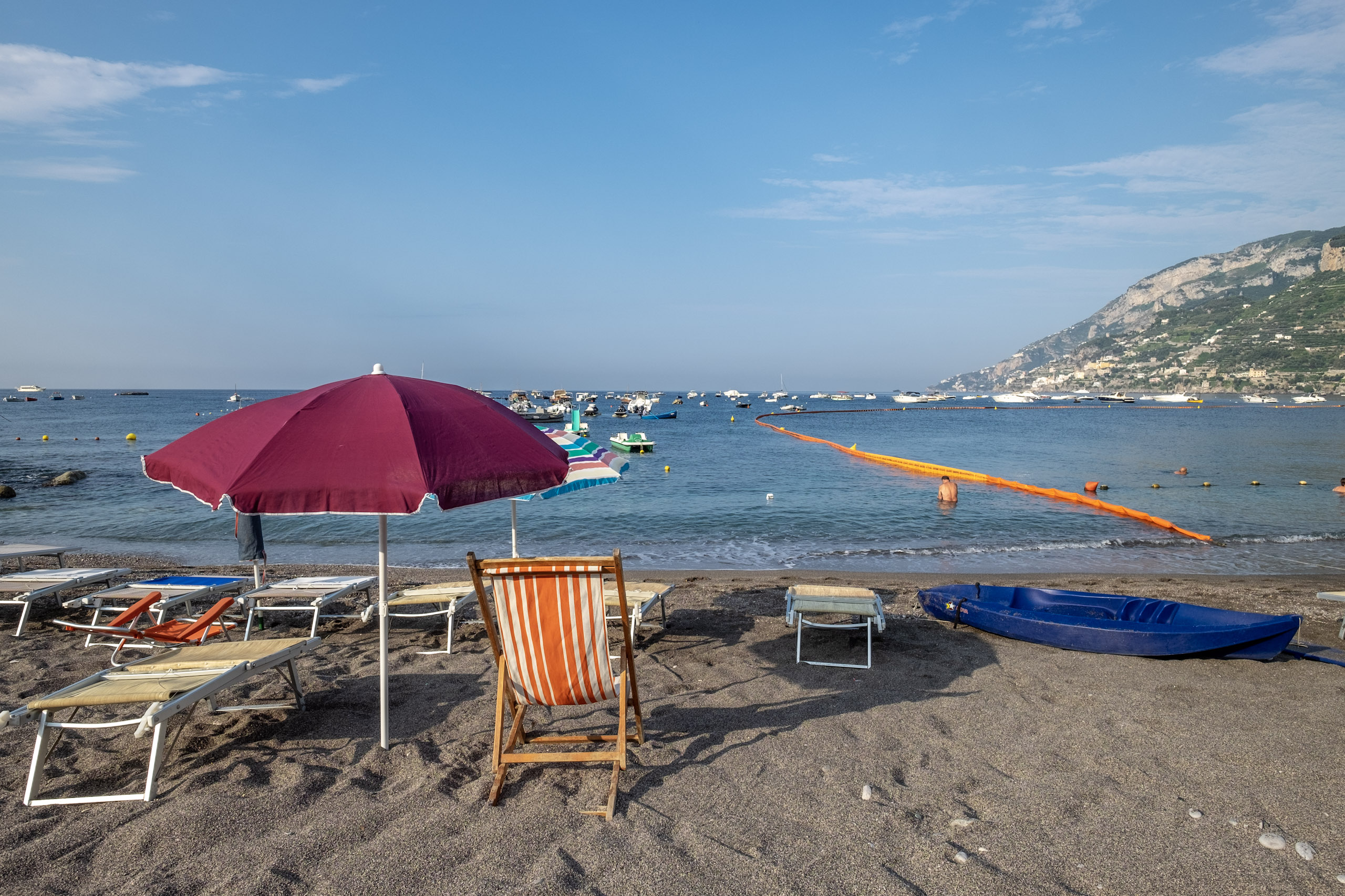 By the time we arrived, the public beach was crowded, and the paid lounge areas were rapidly filling up.