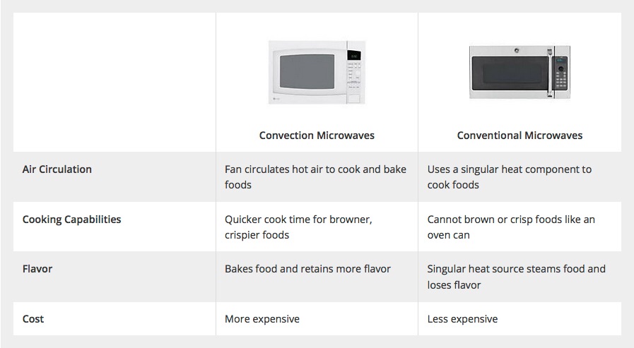 Convection and conventional microwaves are vastly different in their capabilities. A convection microwave operates more like an oven; it has the ability to preheat and bake foods like cookies and casseroles. A conventional microwave doesn't utilize airflow and can only warm meals. Both options are compared here to give you a better understanding of the features and capabilities of both types of microwave ovens.