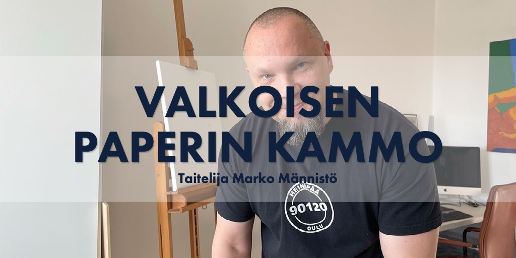 ”Tämä on helvetin pelottava”, Männistö toteaa osoittaen samalla siveltimellään maalaustelineellä nojaavaa, valkoista, tyhjää taulupohjaa.