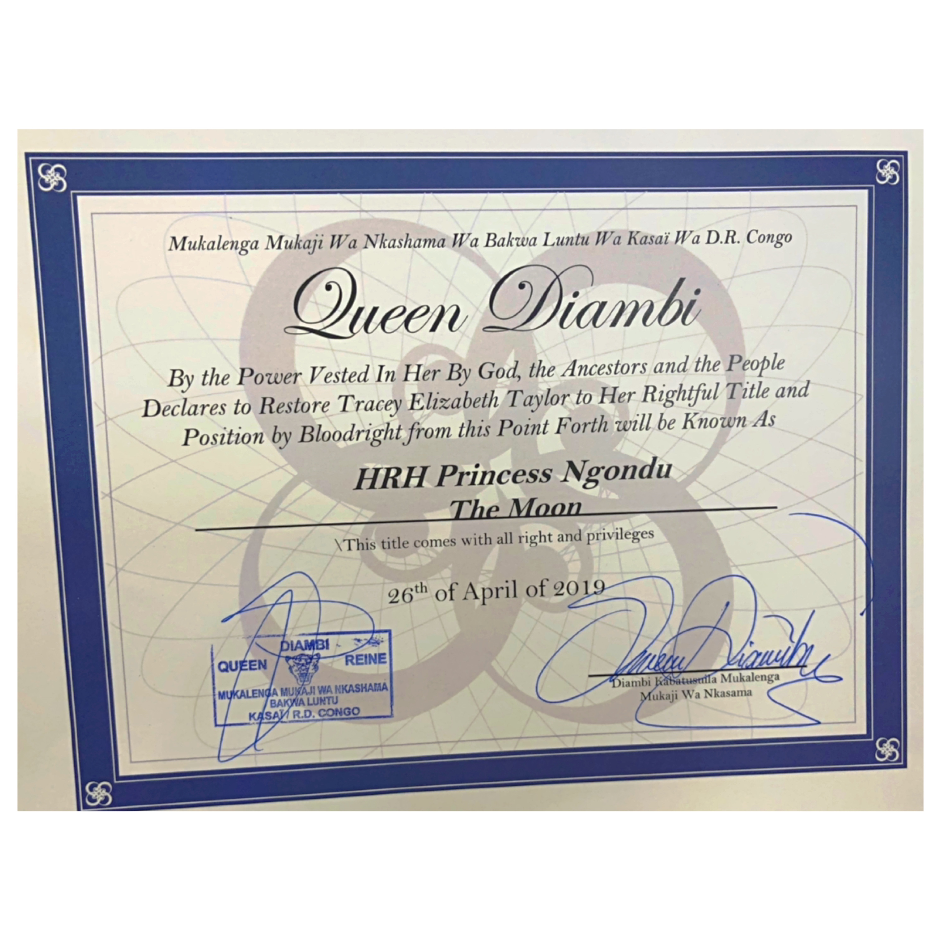HRH Princess Tracey Elizabeth Ngondu