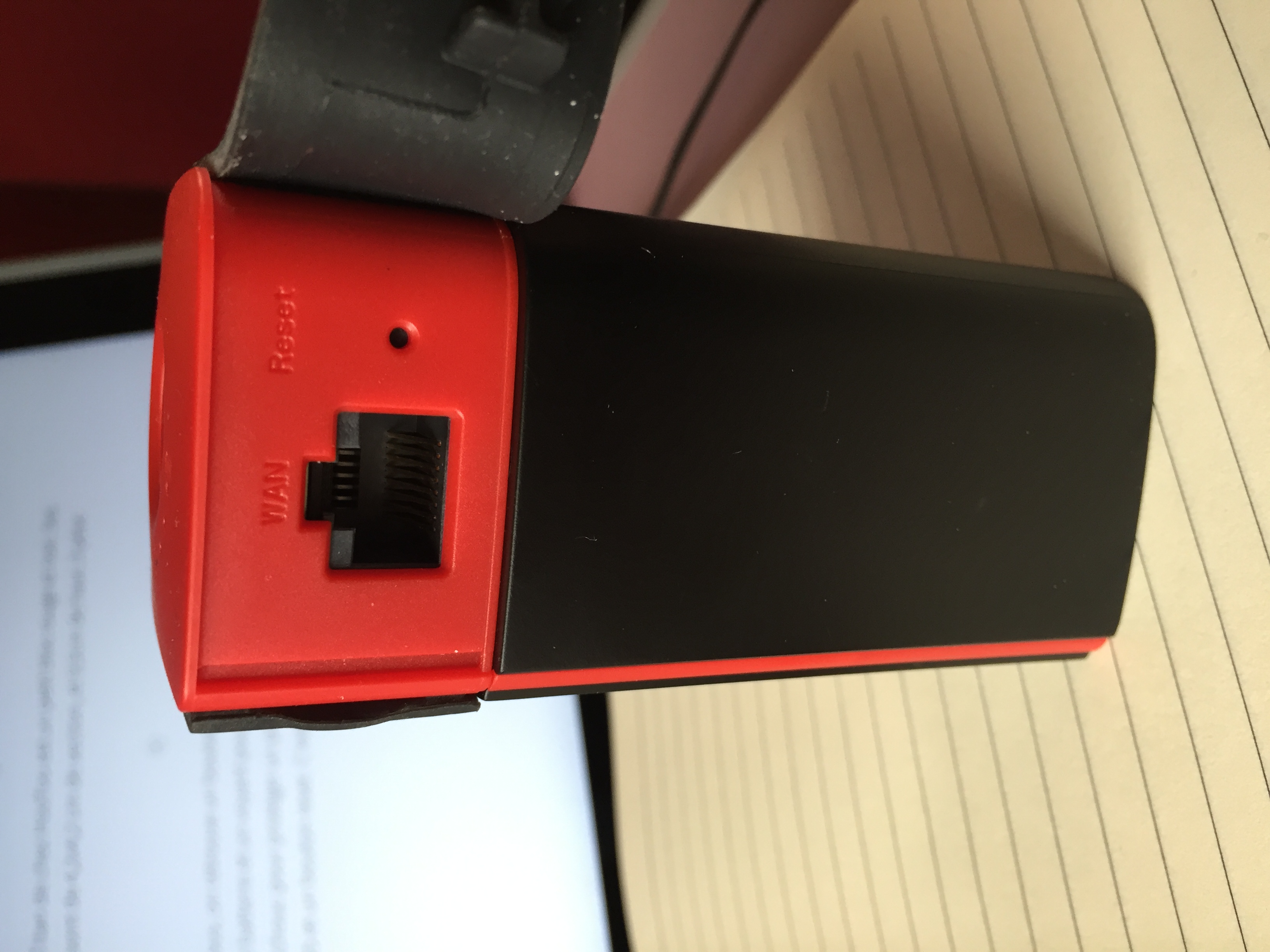 Sur le dessus, on retrouve un bouton d'allumage, 4 voyants pour le niveau de batterie et un voyant pour le wifi. Sur les côtés, deux caches en caoutchouc pour protéger un port USB, un port micro USB, un port RJ45 et un bouton reset. C'est tout. Et ça suffit.