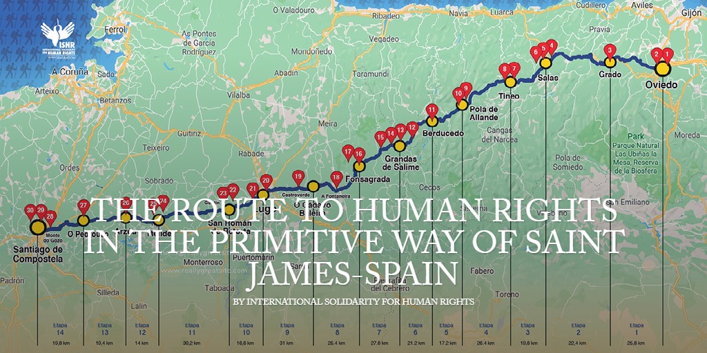 The "Route of Human Rights on the Primitive Way" (Camino Primitivo de Santiago) is a pioneering program in Europe. Since 2016 it has promoted the values of the Universal Declaration of Human Rights in the Primitive Way (Camino Primitivo). The Primitive Way to Saint James was declared a World Heritage Site in 2015. International Solidarity for Human Rights advanced this pioneer initiative in Europe with the collaboration and support of Where is.