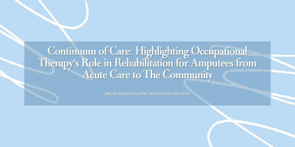 The doctoral capstone aims to advocate for and highlight occupational therapy's role in rehabilitation for amputees. In partnership with Parkview Hospital Randallia, I have created the Continuum of Care resource to educate, motivate, and support all stakeholders involved in providing the best care for amputees.