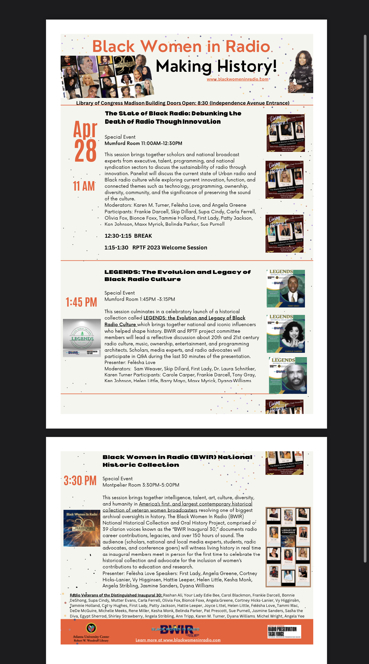 the Atlanta University Center Robert W. Woodruff library, and the Radio Preservation Task Force (RPTF) of the Library of Congress’s National Recording Preservation Board