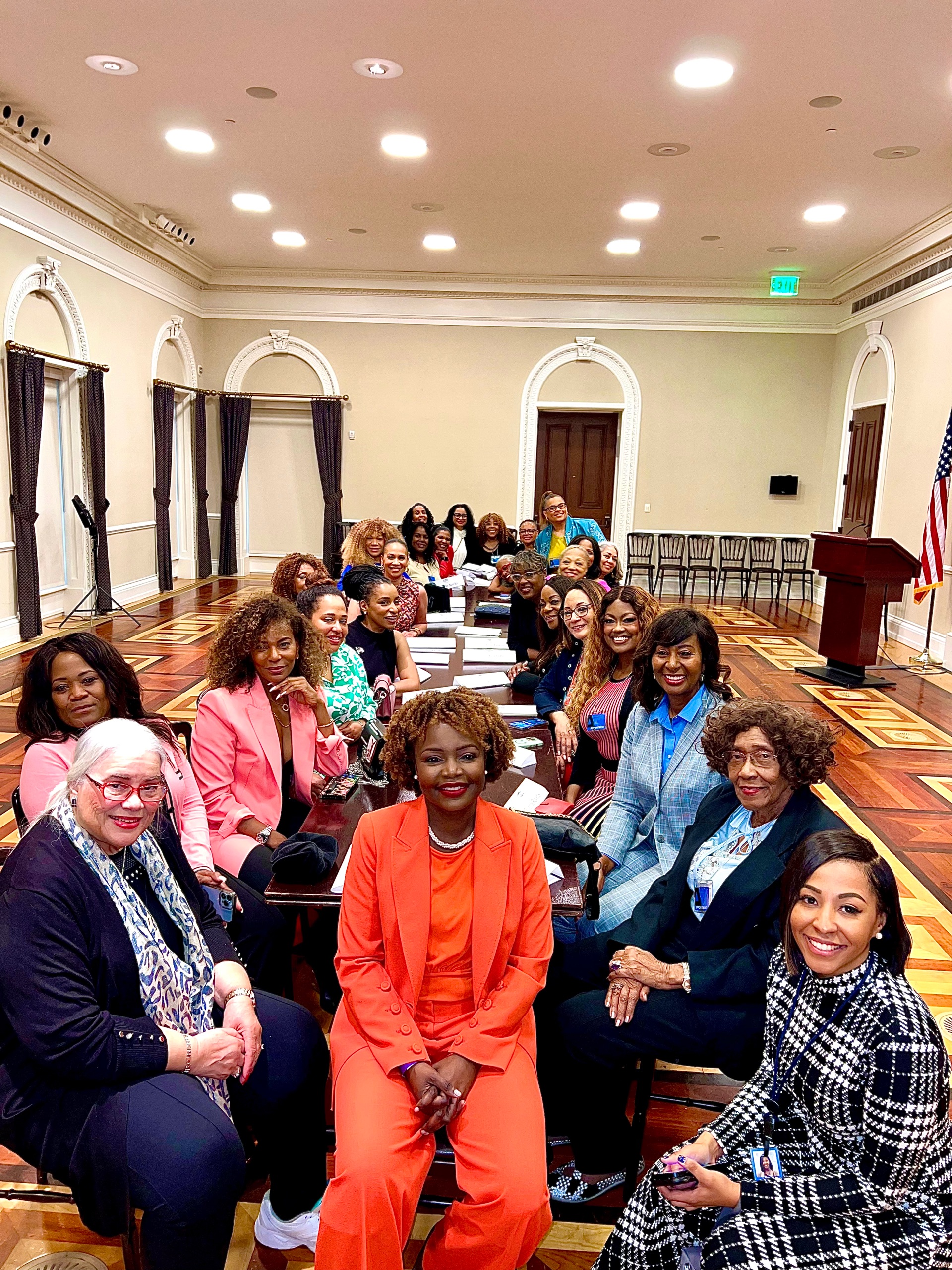WASHINGTON, April 28, 2023 — The Distinguished Inaugural 30 meet with President Biden’s Press Secretary Karine Jean Pierre, and Steve Benjamin, Director of Public Engagement and Senior Advisor to the President at the White House.