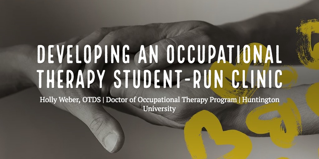 - Developed research questions to investigate the sustainability of a student-run clinic, including Huntington University’s occupational therapy department entailing student demographics, OTD/OTA student involvement, inter/intraprofessional communication and skills development, level 1 fieldwork participation, and knowledge and interest level of a future pro bono clinic.