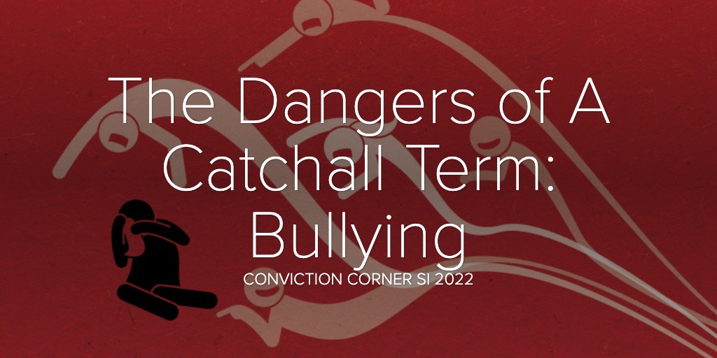 One of the most catchall terms a parent will use to describe any unpleasant act that occurs between their child and other(s) regardless of context (in the classroom, on the playground, in line to go to lunch, online) is bullying.